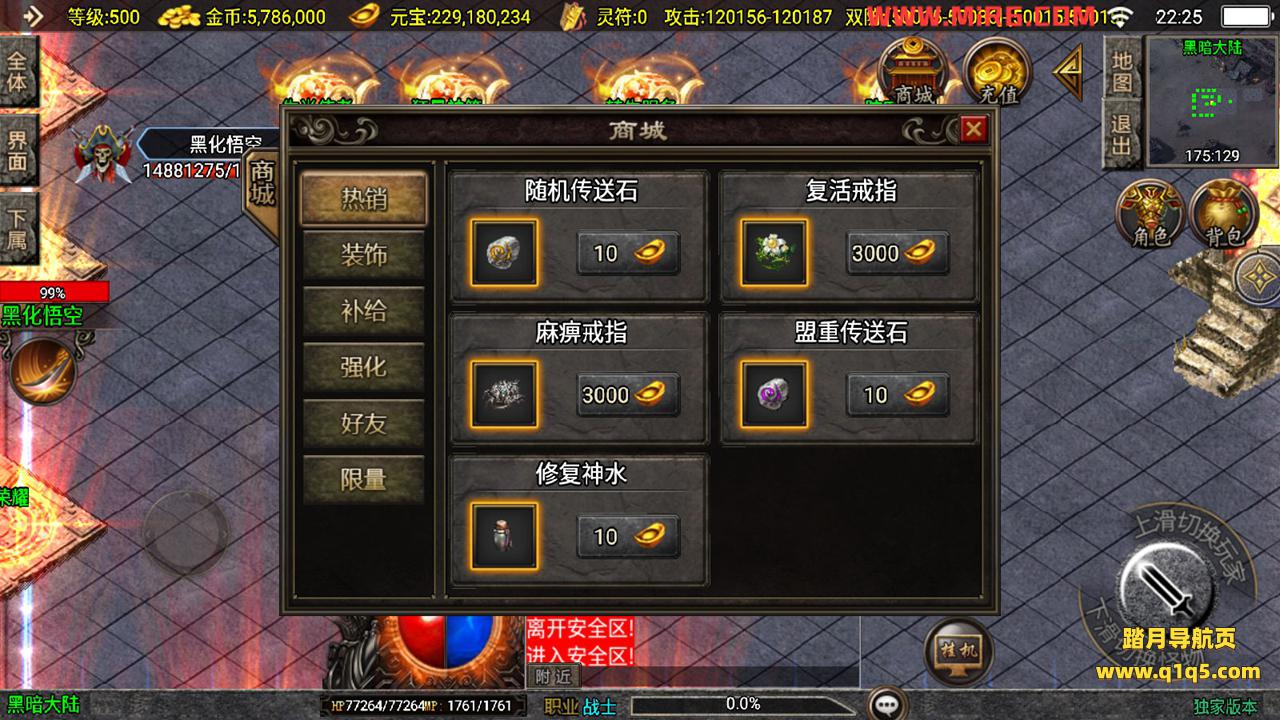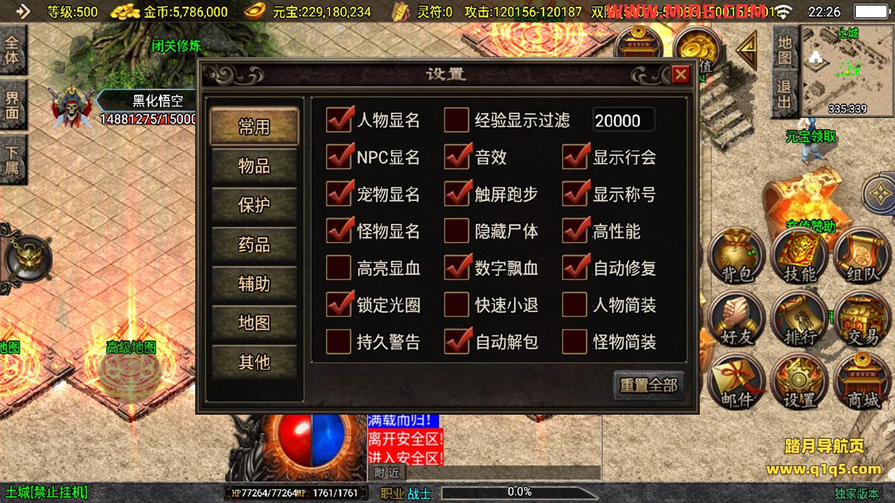 下面我们测试下游戏里的功能。好了,其他功能 就自行测试吧。更多的游戏资源可以访问www.q1q5.com下载,我们每款游戏资源均单独制作了独立的视频架设教程,让小白也可以快速上手游戏架设,快来体验做GM的乐趣吧!