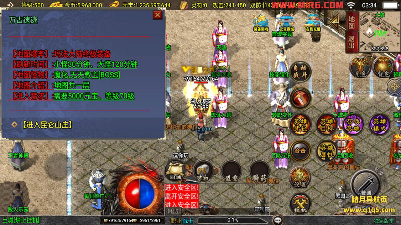 下面我们测试下游戏里的功能。好了,其他功能自行测试吧。更多的游戏资源请访问www.q1q5.com下载,我们每款游戏资源均单独制作的有独立的视频架设教程,让小白也可以快速上手游戏架设,体验做GM的乐趣!