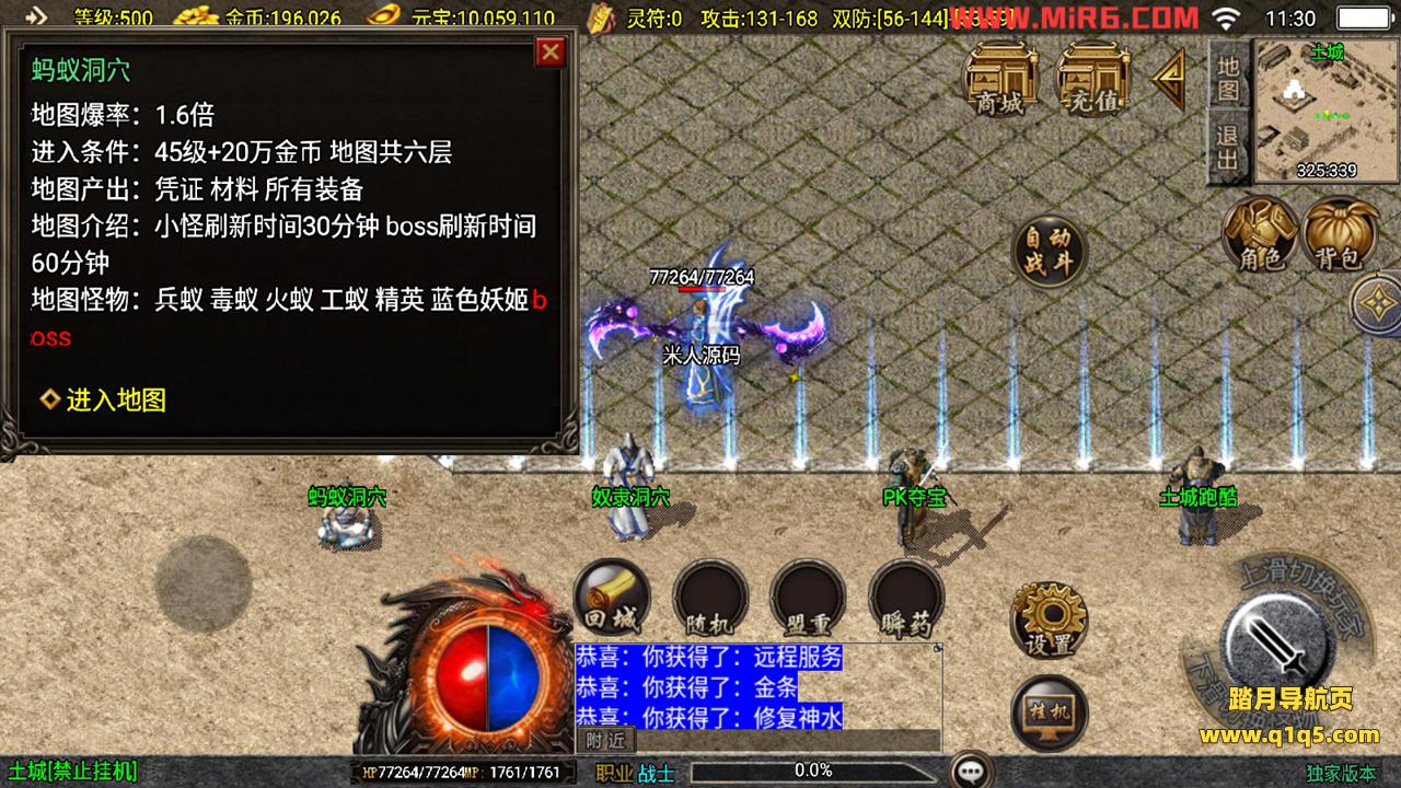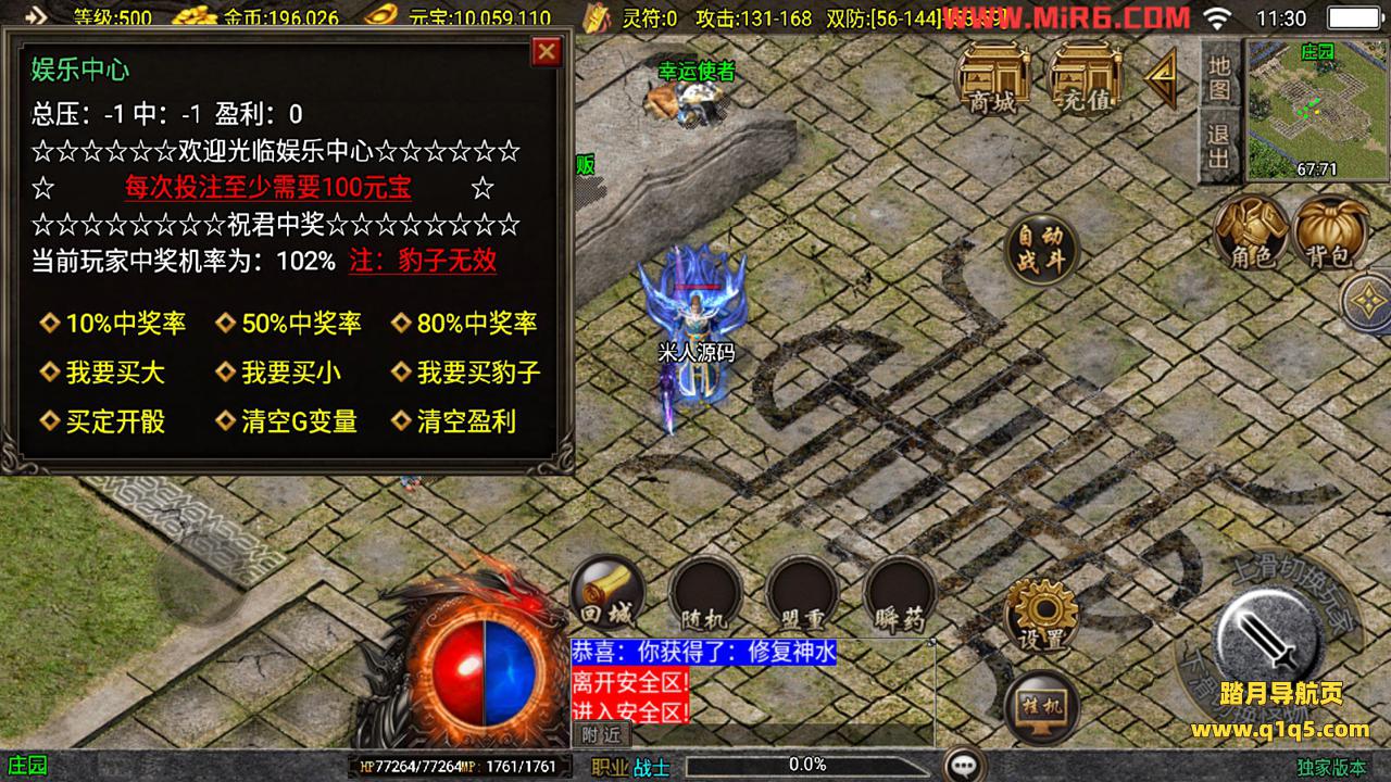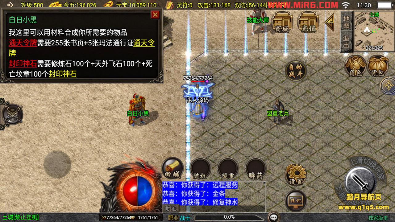 下面我们来测试下游戏里的功能。好了。其他功能自行测试吧。更多的游戏资源请访问www.q1q5.com下载,我们每款游戏资源均单独制作了独立的视频架设教程,让小白也可以快速上手游戏架设,体验做GM的乐趣!