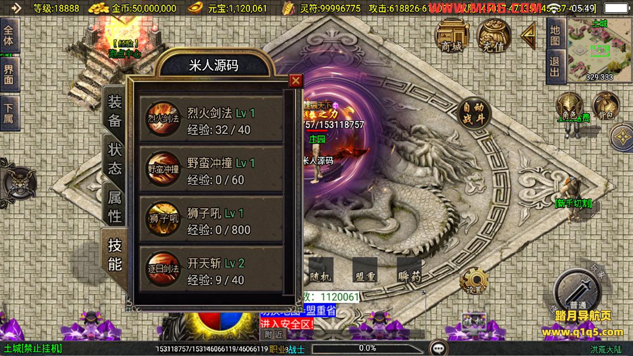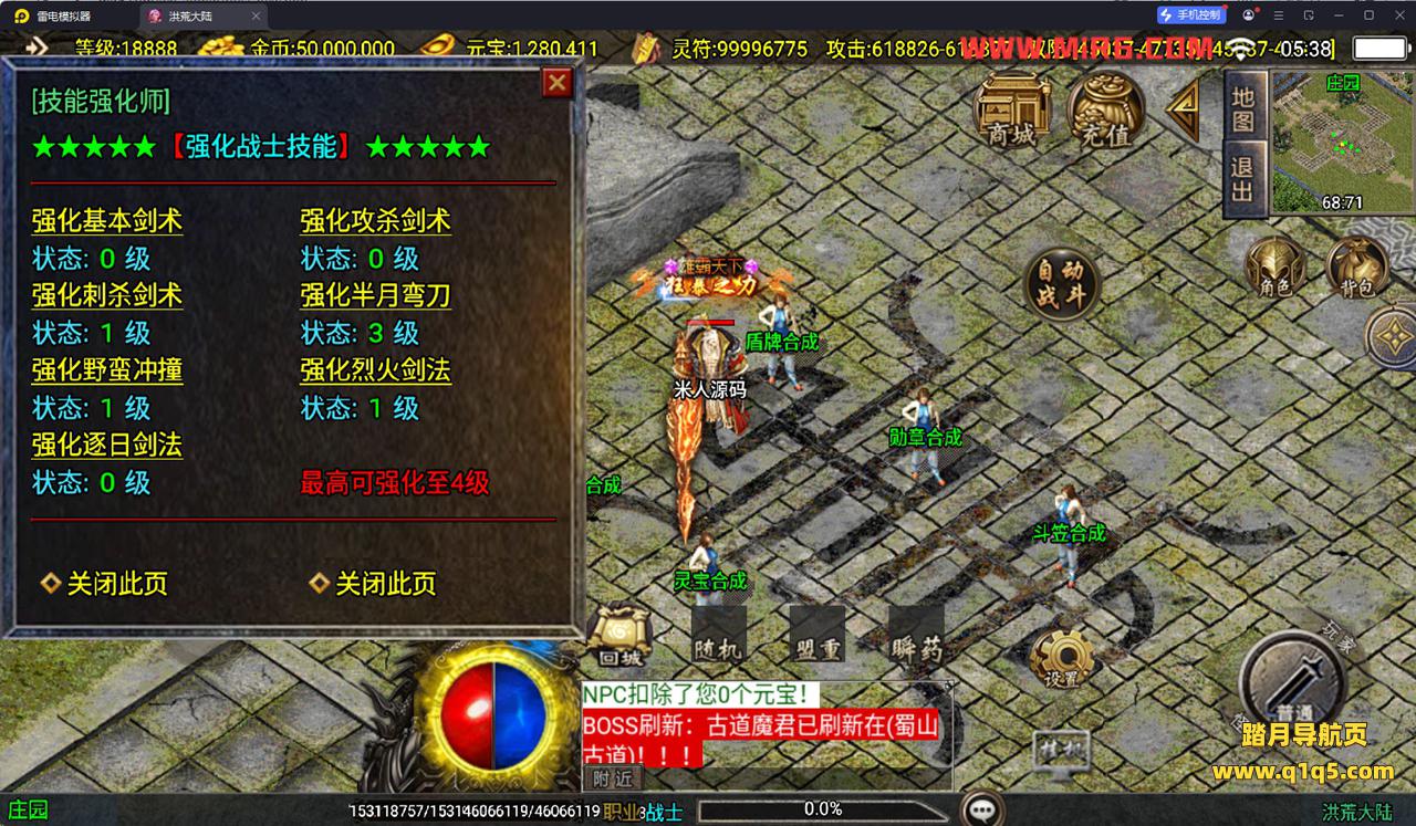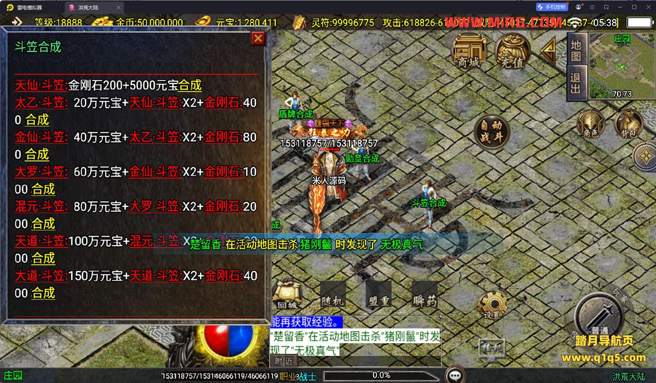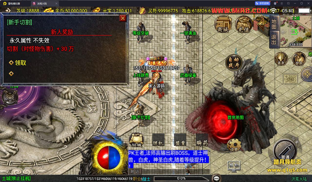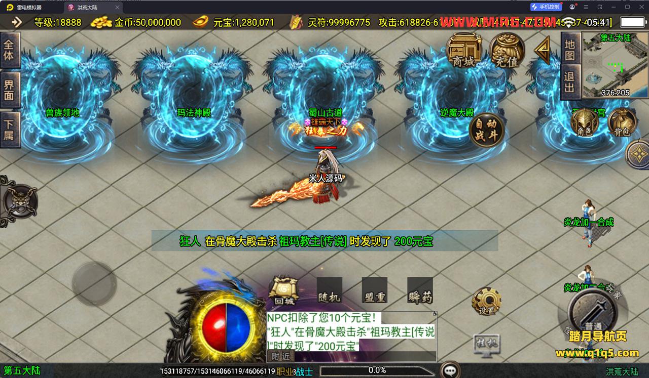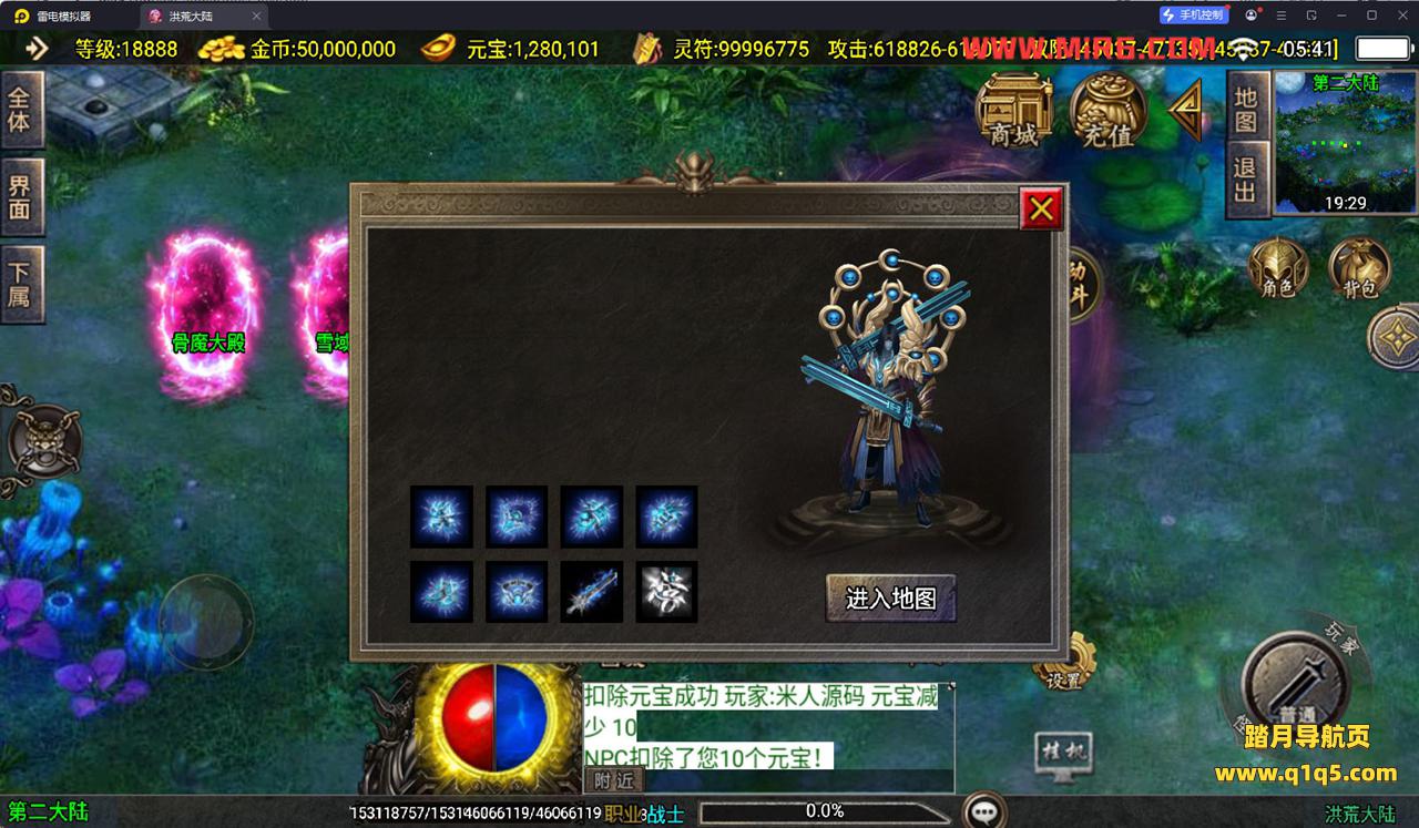 下面我们测试下游戏里的功能看看。好了,其他功能就自行测试吧。更多的游戏资源可以访问www.q1q5.com下载,我们每款游戏资源均单独制作了独立的视频架设教程。让小白也可以快速上手游戏架设,快来体验自己做GM的乐趣吧!