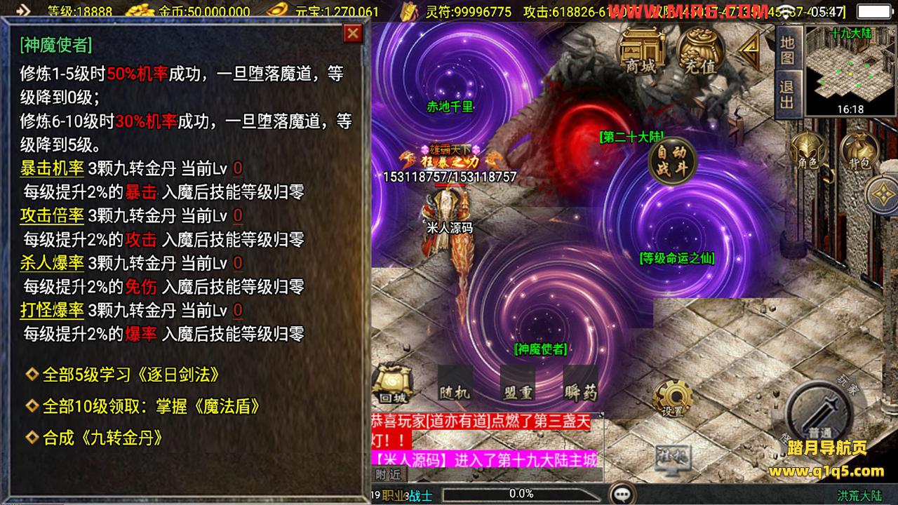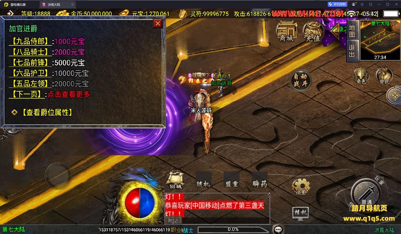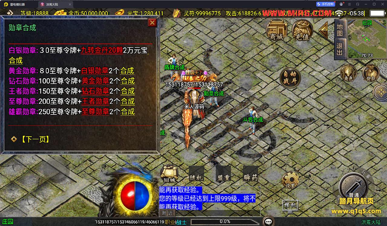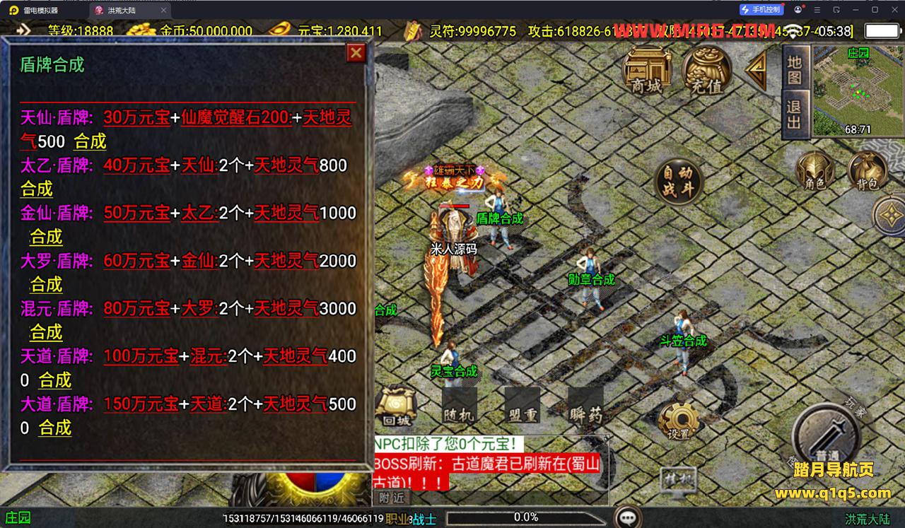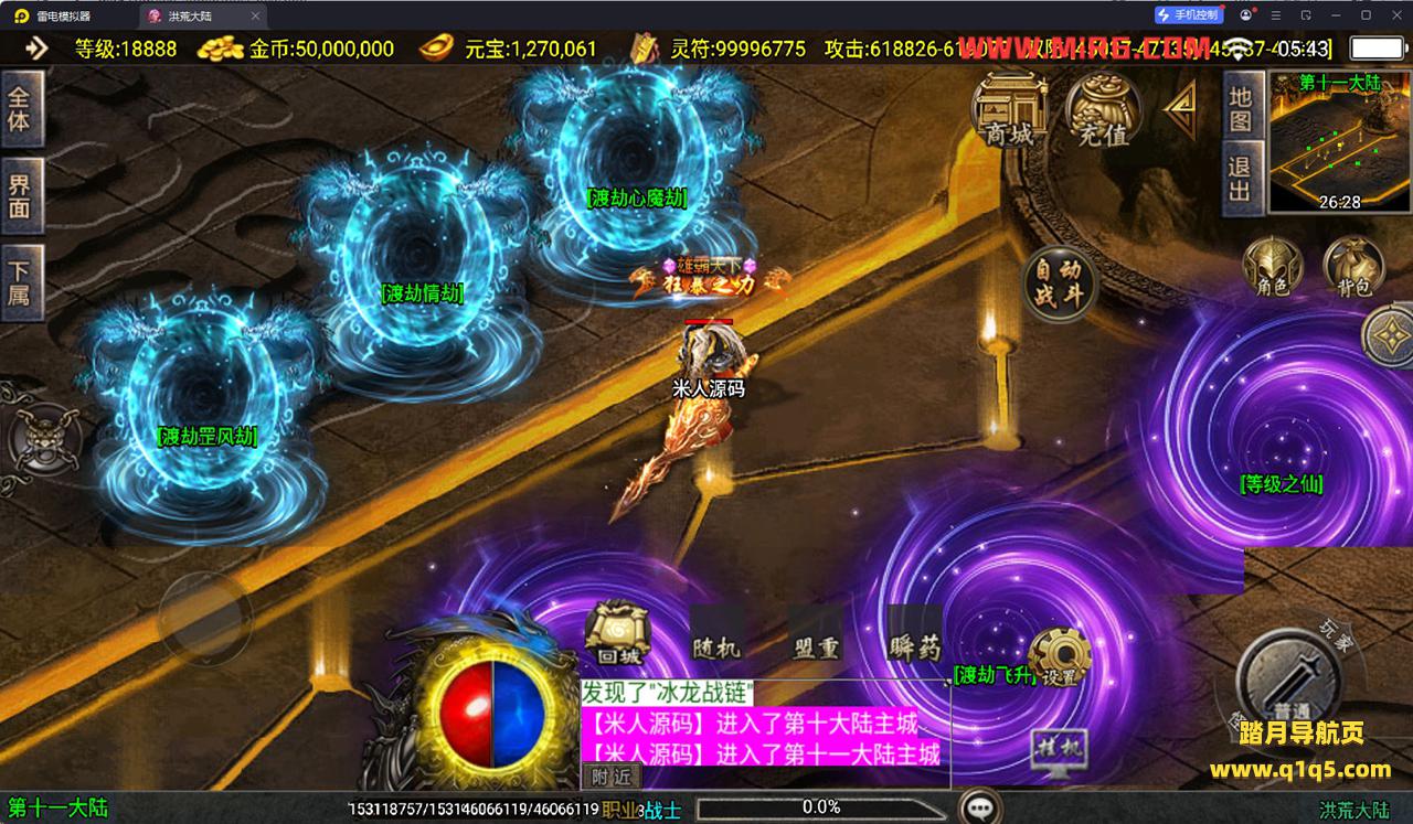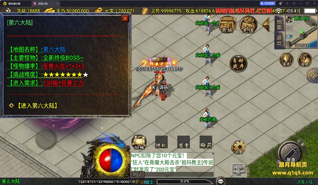 下面我们测试下游戏里的功能看看。好了,其他功能就自行测试吧。更多的游戏资源可以访问www.q1q5.com下载,我们每款游戏资源均单独制作了独立的视频架设教程。让小白也可以快速上手游戏架设,快来体验自己做GM的乐趣吧!