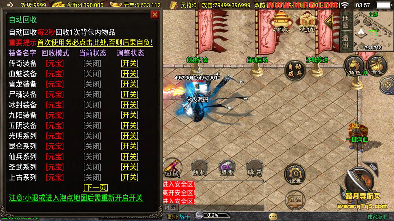 好了,下面我们试试游戏里的功能看看。好了,其他功能就自行测试吧。更多的游戏资源可以访问www.q1q5.com下载,我们每款游戏资源都有单独制作独立的视频架设教程,让小白也可以快速上手游戏架设,快来体验自己做GM的乐趣吧!