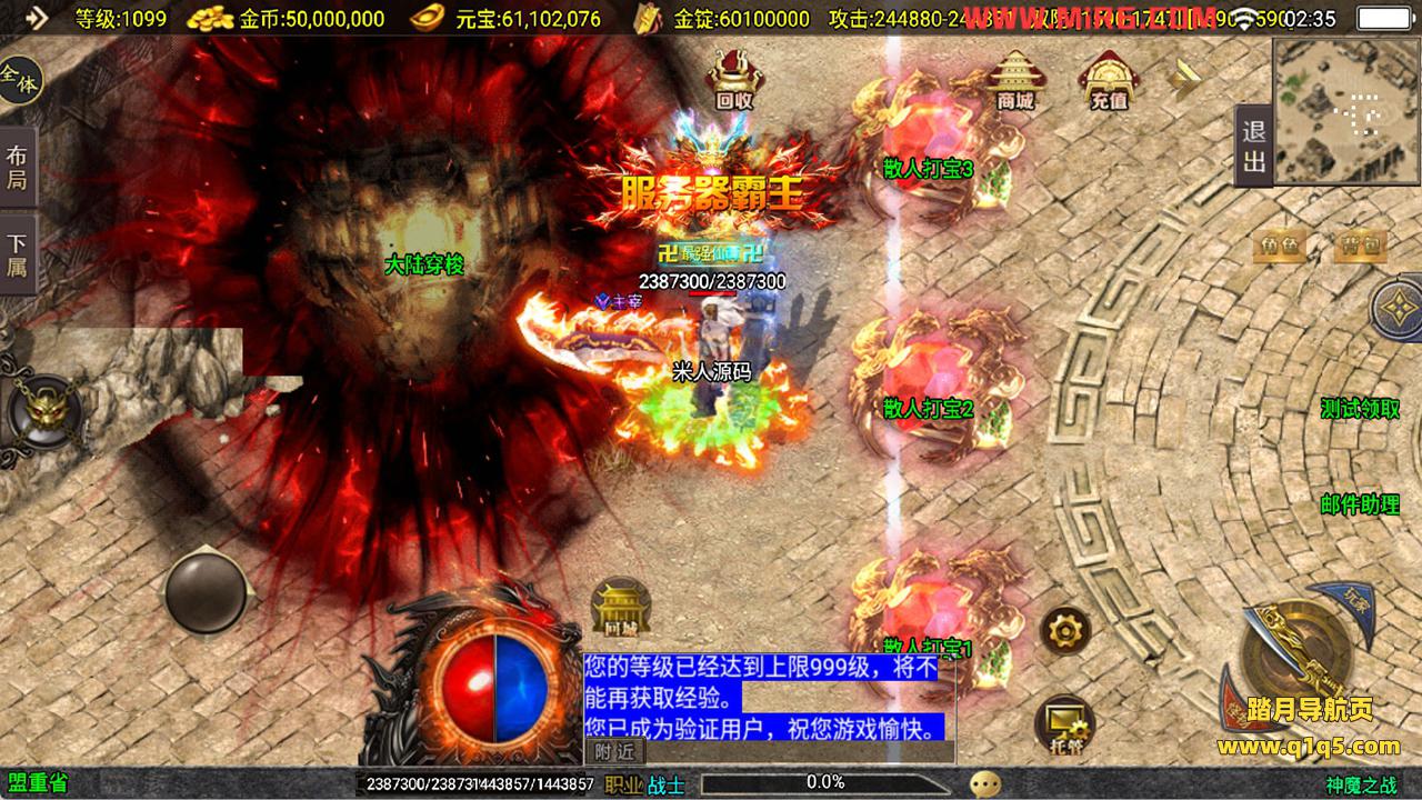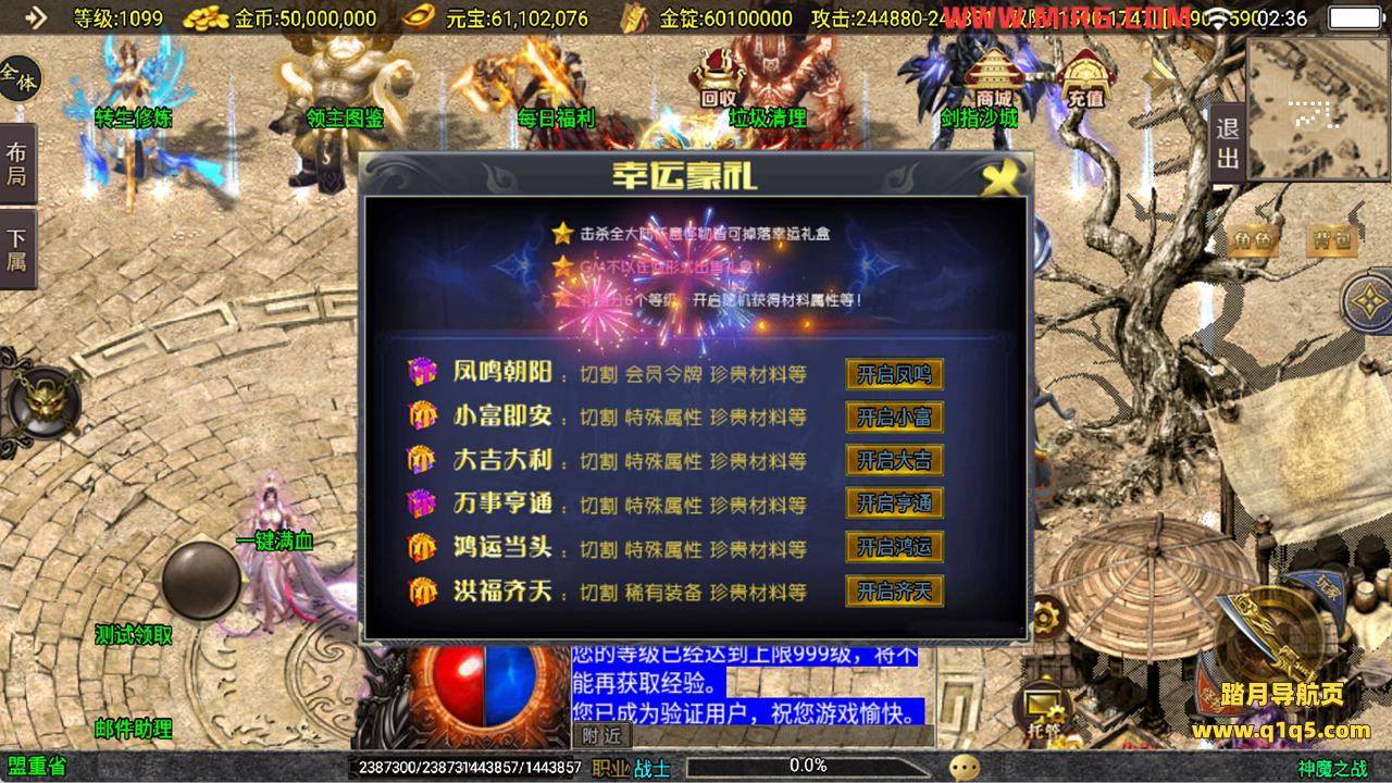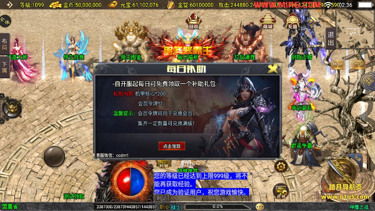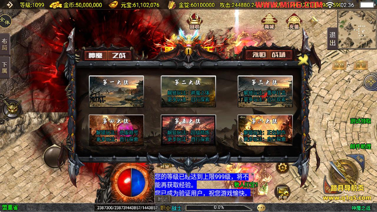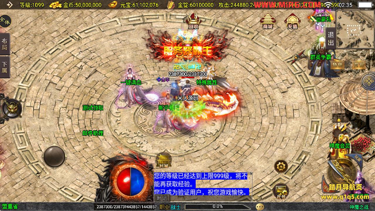 下面我们来测试下游戏里的功能看看吧。好了,其他功能就自行测试吧。更多的游戏资源可以访问www.q1q5.com下载,我们每款游戏资源均单独制作了独立的视频架设教程,让小白也可以快速上手游戏架设,快来体验自己做GM的乐趣吧!