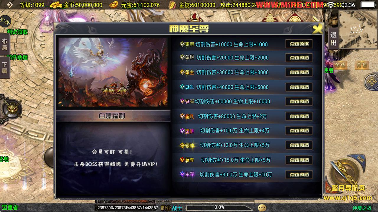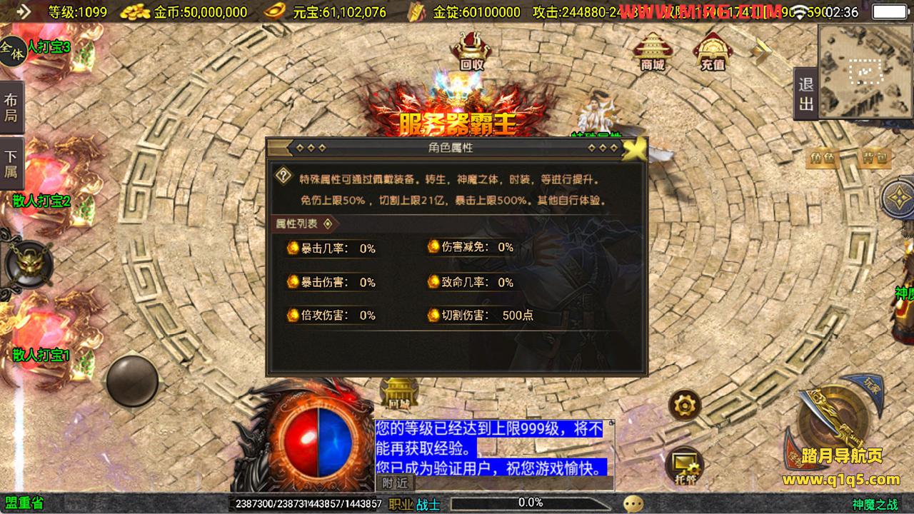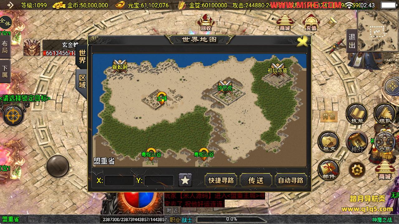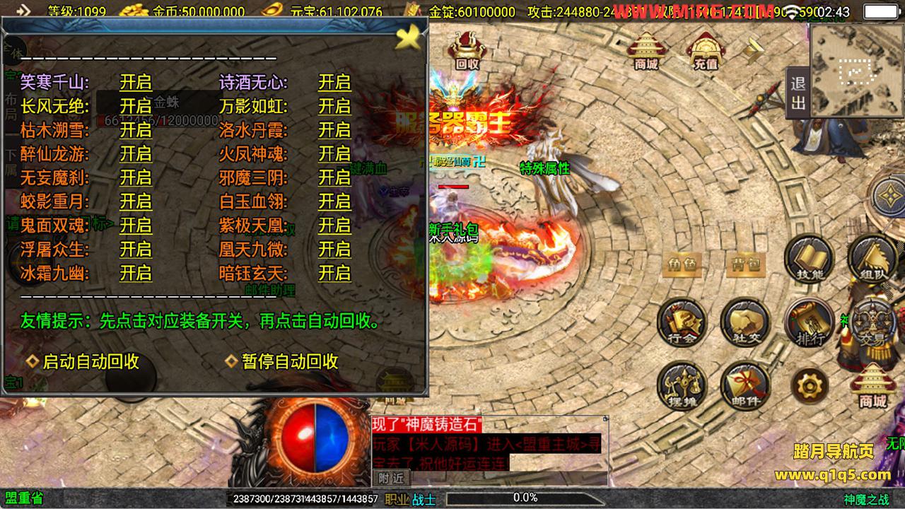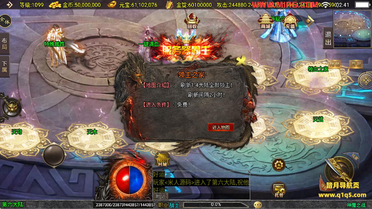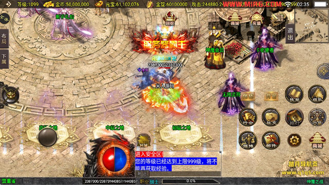 下面我们来测试下游戏里的功能看看吧。好了,其他功能就自行测试吧。更多的游戏资源可以访问www.q1q5.com下载,我们每款游戏资源均单独制作了独立的视频架设教程,让小白也可以快速上手游戏架设,快来体验自己做GM的乐趣吧!