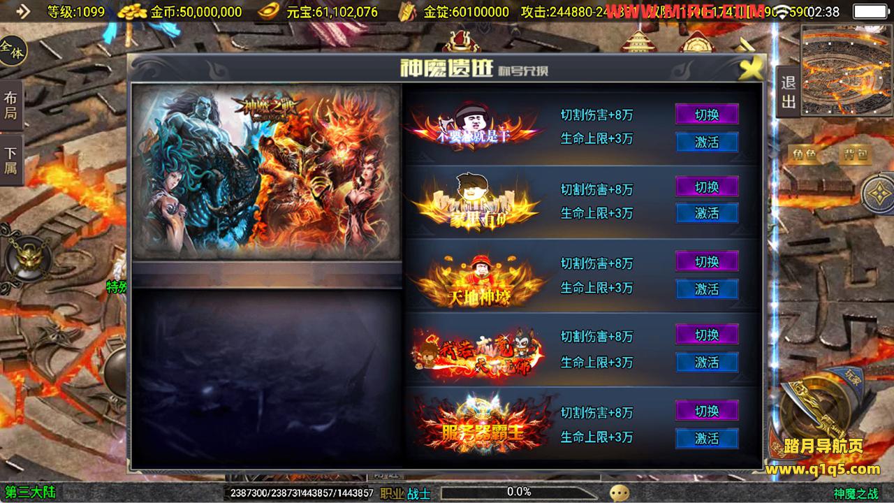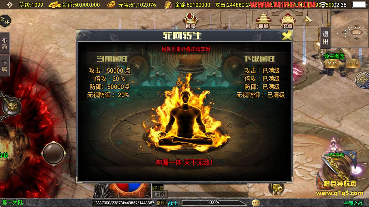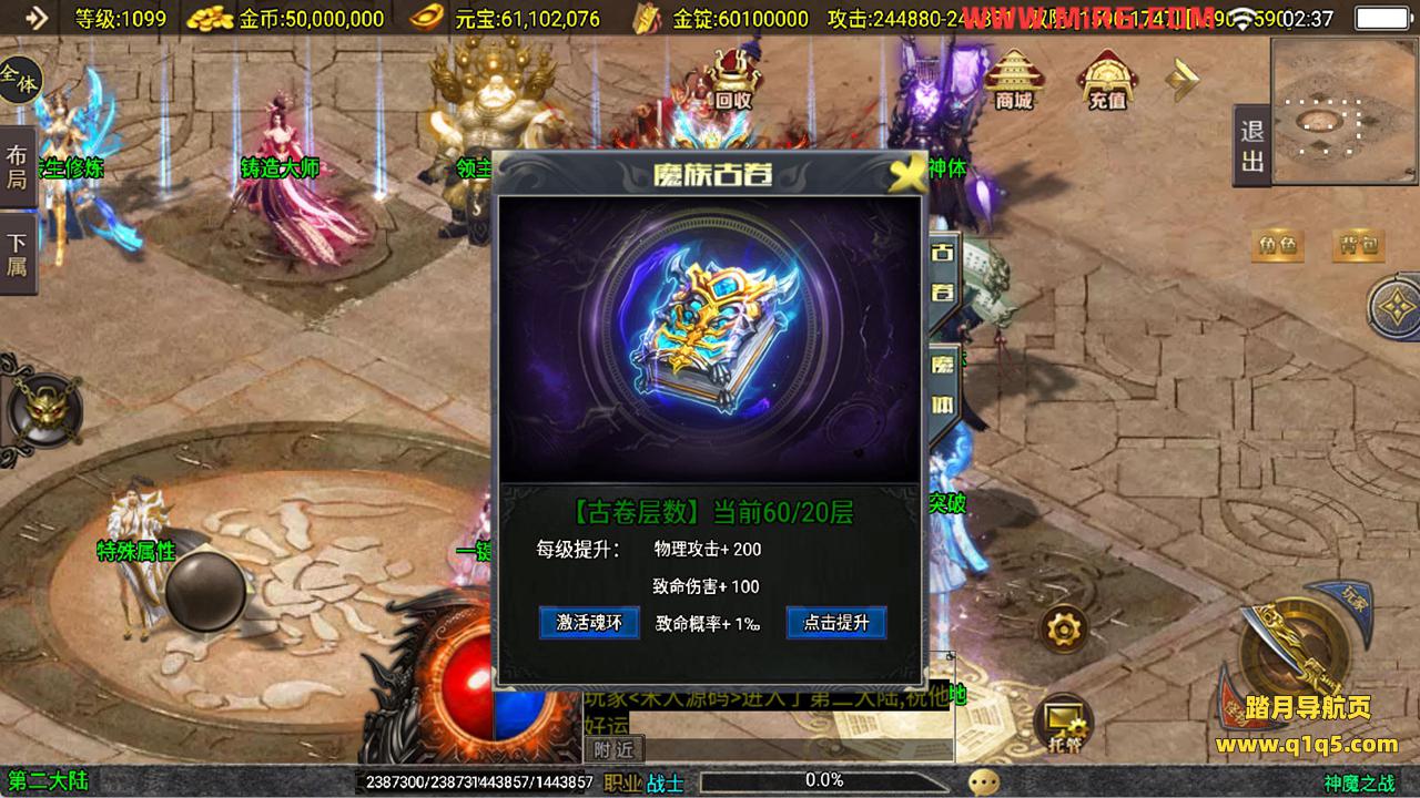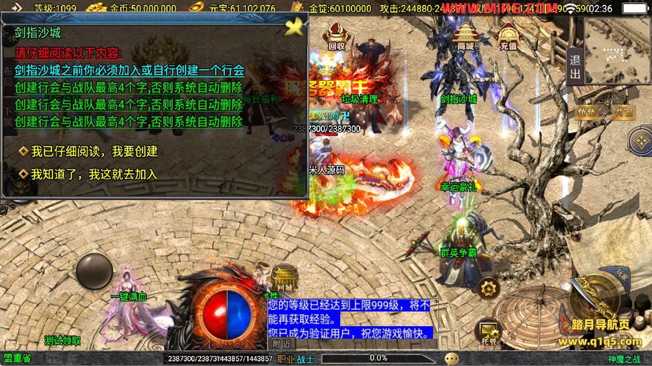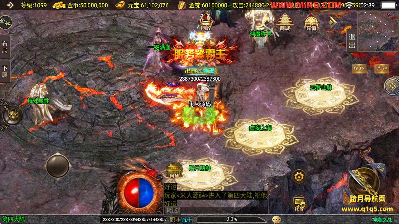 下面我们来测试下游戏里的功能看看吧。好了,其他功能就自行测试吧。更多的游戏资源可以访问www.q1q5.com下载,我们每款游戏资源均单独制作了独立的视频架设教程,让小白也可以快速上手游戏架设,快来体验自己做GM的乐趣吧!