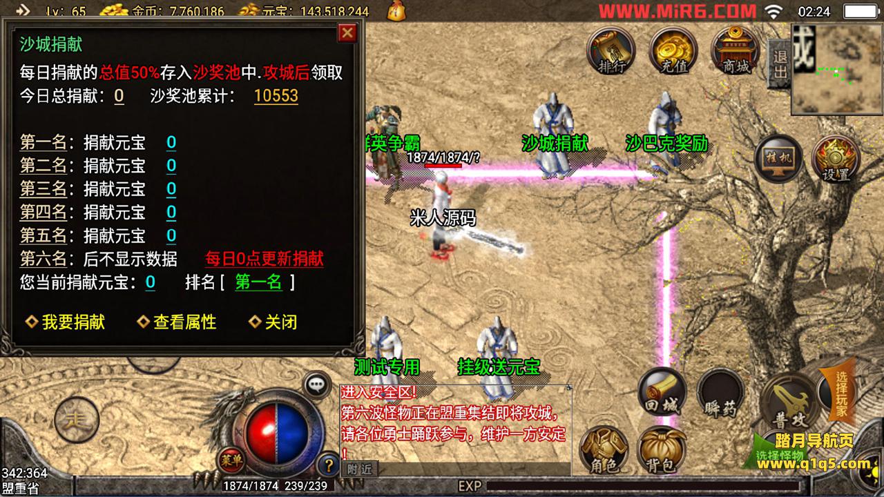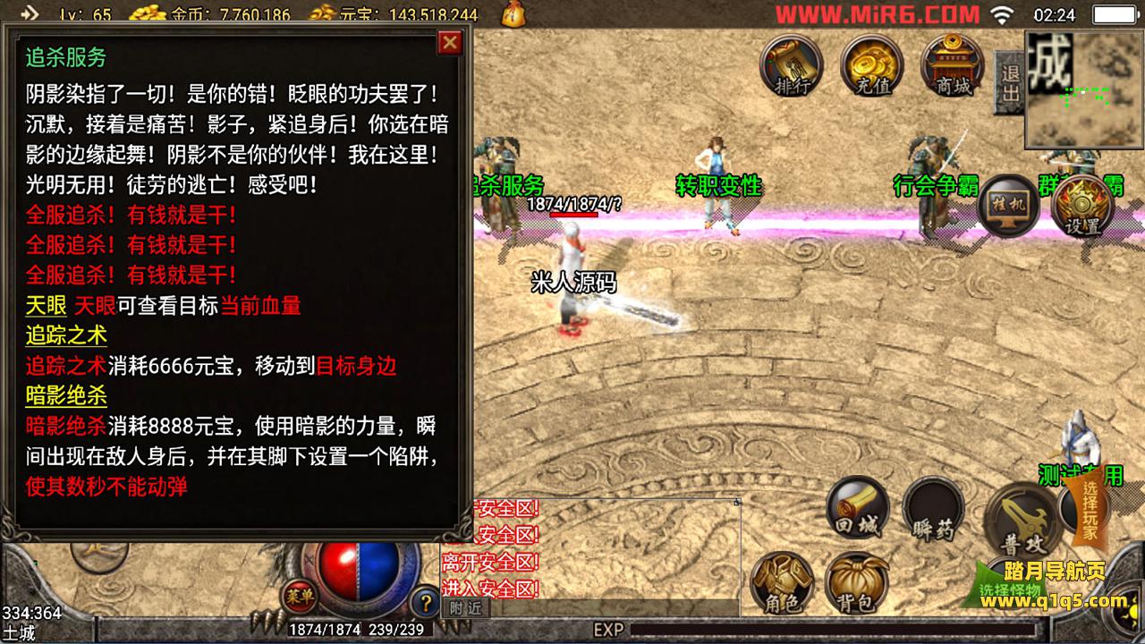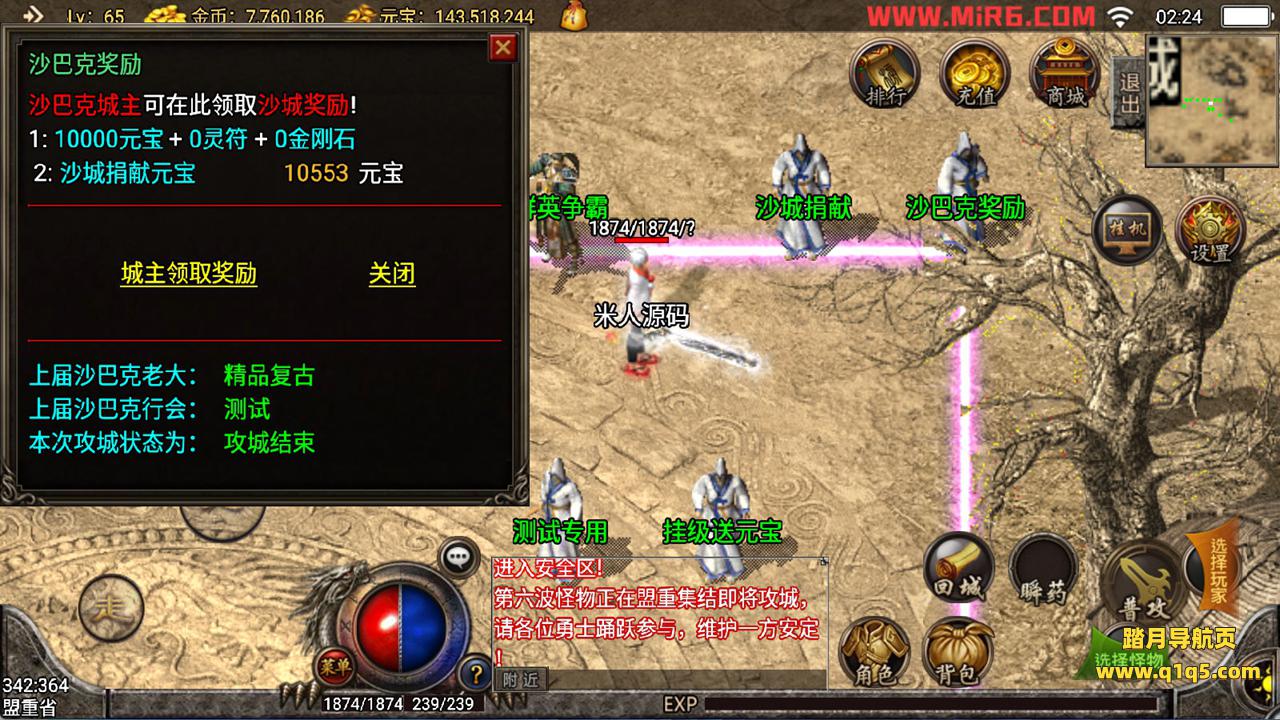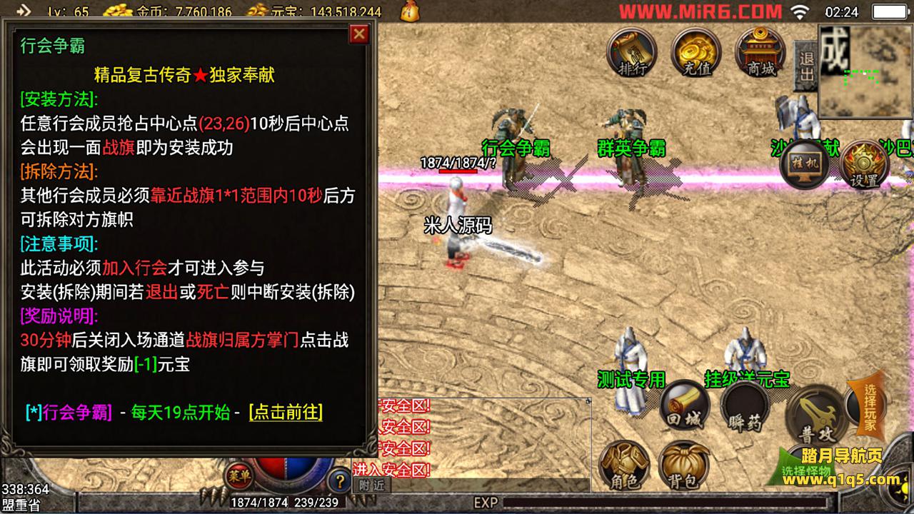下面我们测试下游戏里的功能看看。好了,其他功能就自行测试吧。更多的游戏资源可以访问www.q1q5.com下载,我们每款游戏资源均单独制作了独立的视频架设教程,让小白也可以快速上手游戏架设,快来体验自己做GM的乐趣吧!