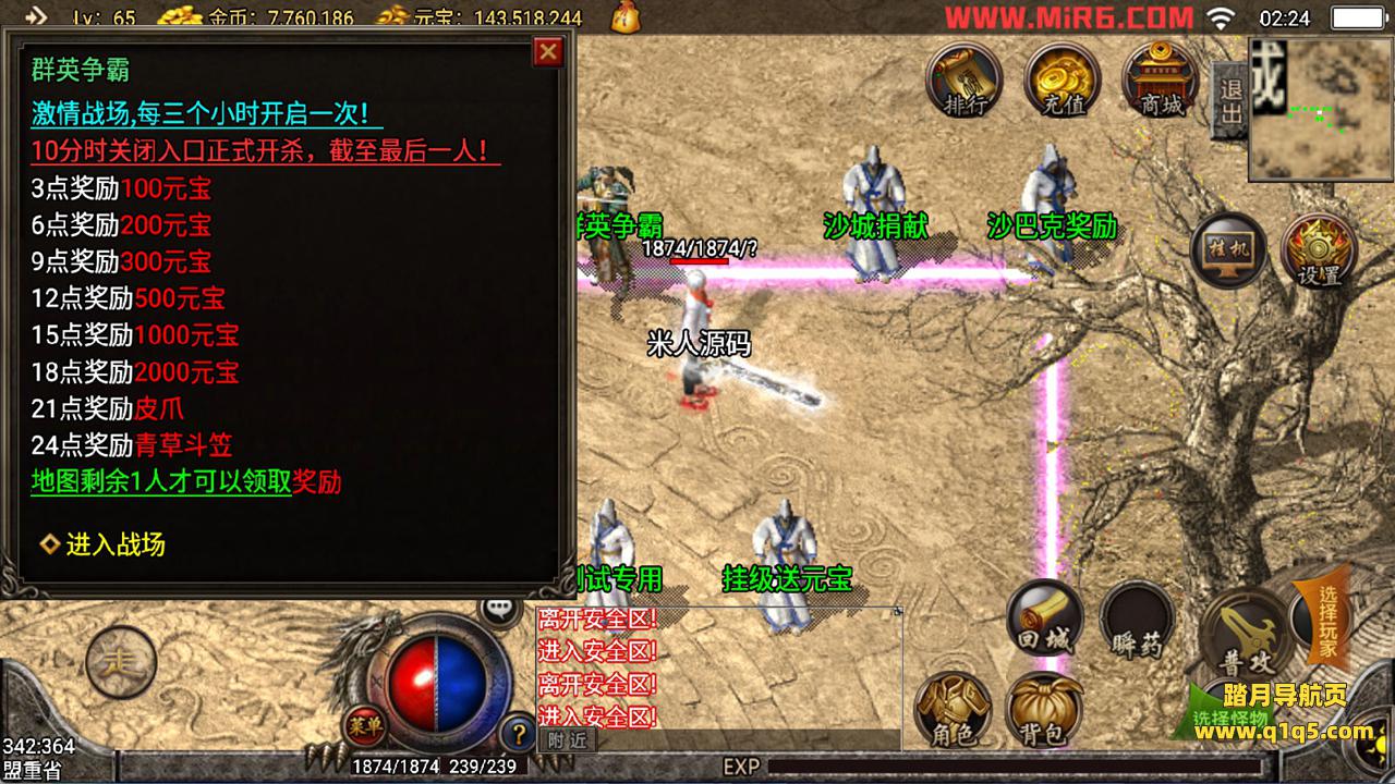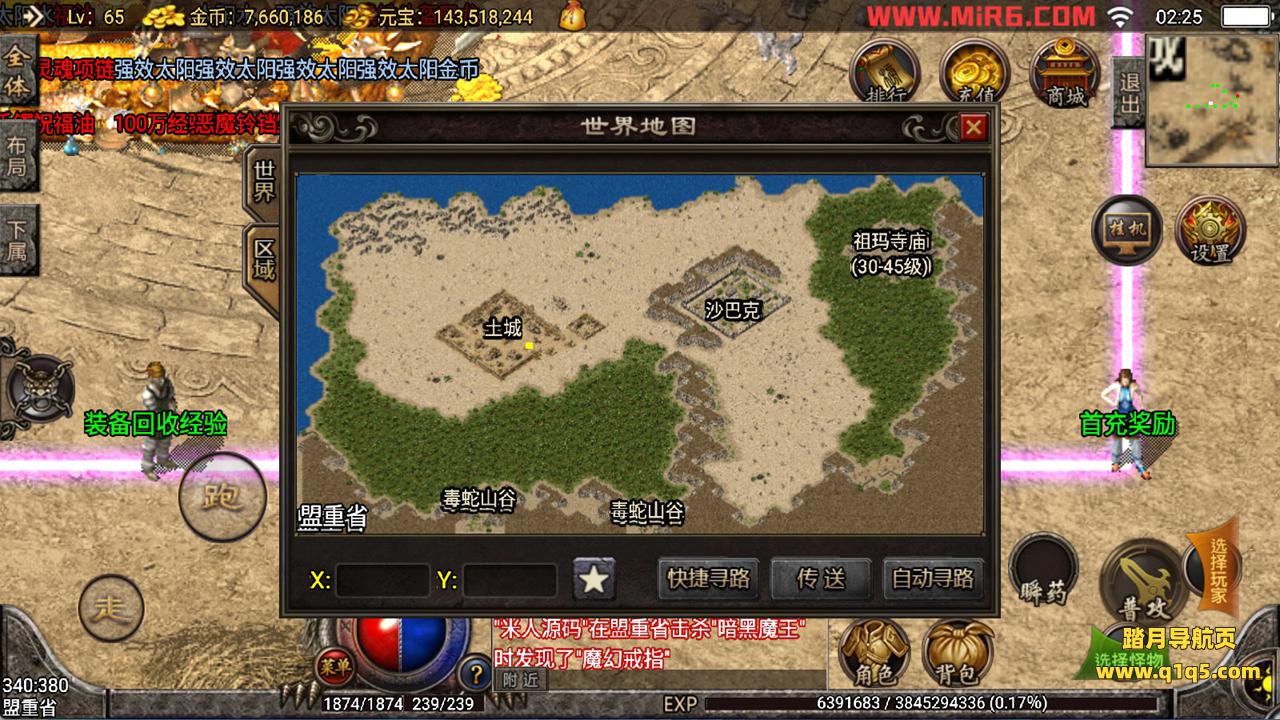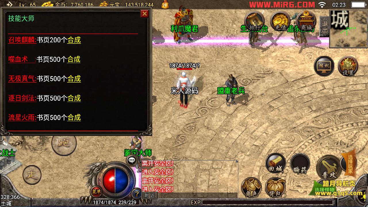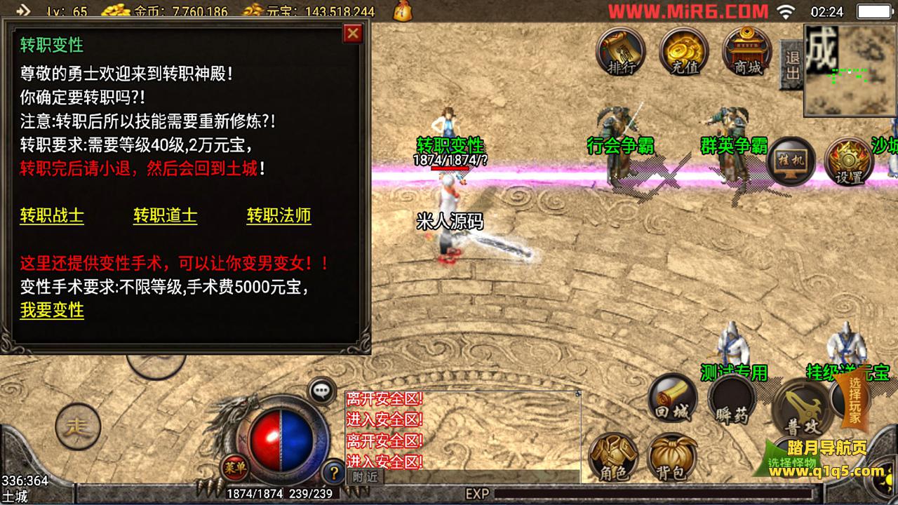 下面我们测试下游戏里的功能看看。好了,其他功能就自行测试吧。更多的游戏资源可以访问www.q1q5.com下载,我们每款游戏资源均单独制作了独立的视频架设教程,让小白也可以快速上手游戏架设,快来体验自己做GM的乐趣吧!