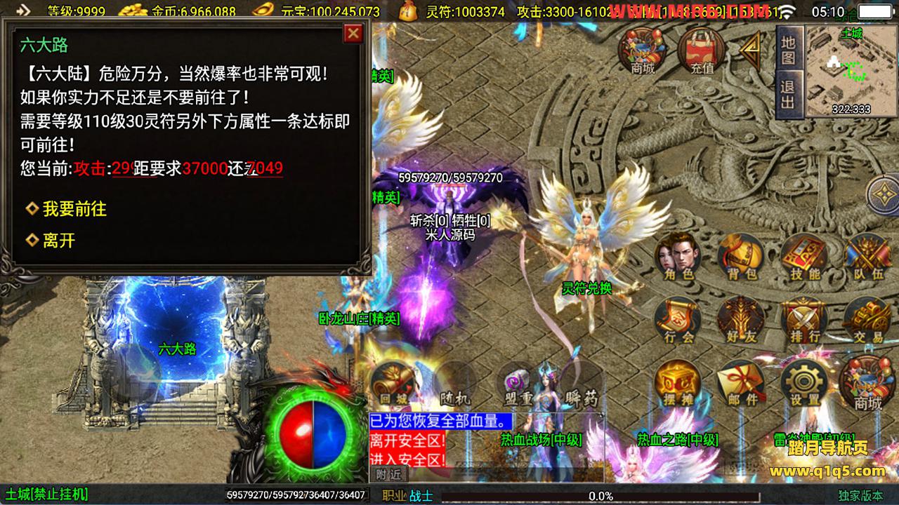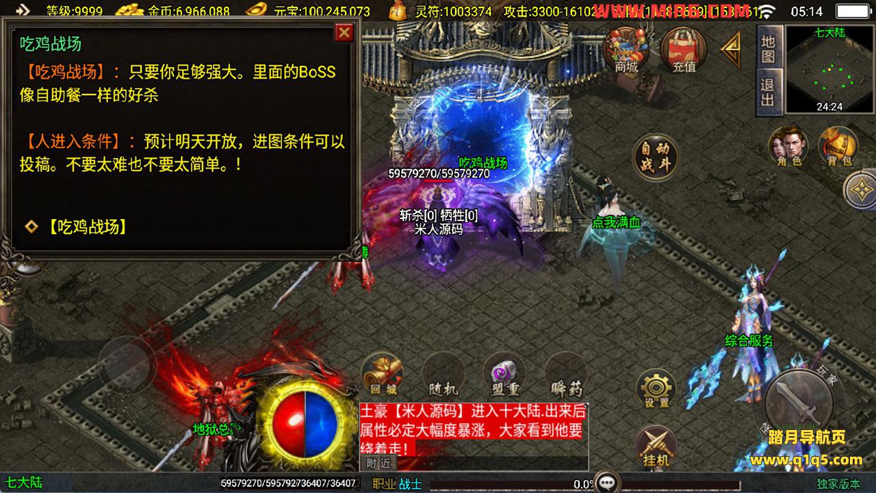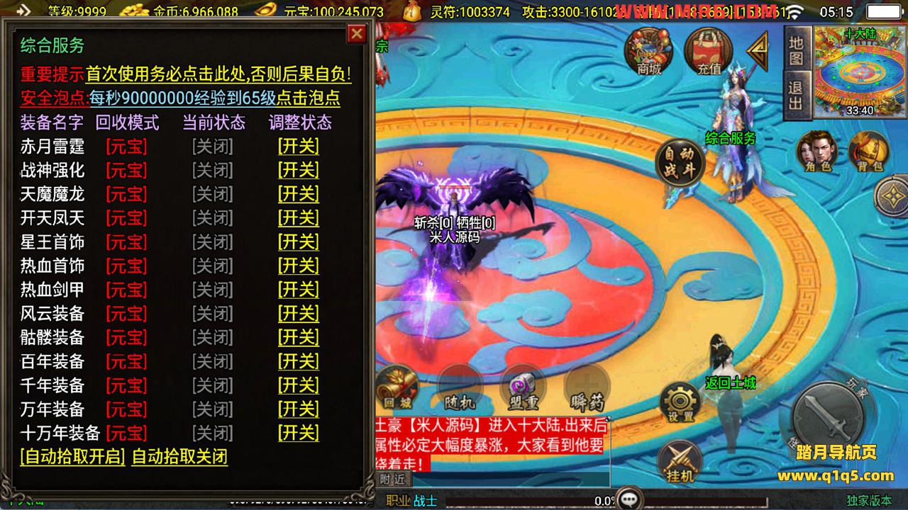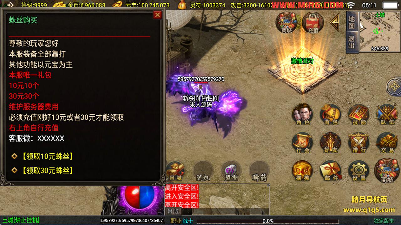 下面我们测试下游戏里的功能看看。好了。其他功能就自行测试吧。更多的游戏资源可以访问www.q1q5.com下载,我们每款游戏资源均单独制作的有独立的视频架设教程,让小白也可以快速上手游戏架设,快来体验自己做GM的乐趣吧!