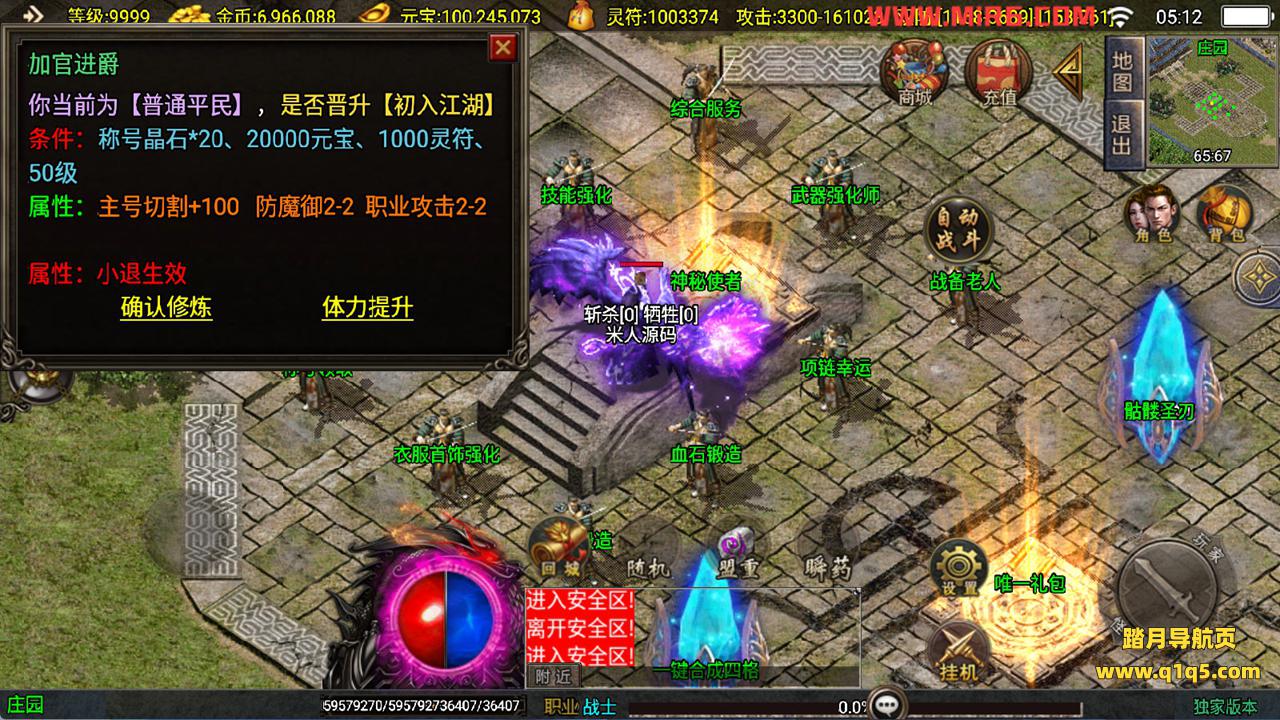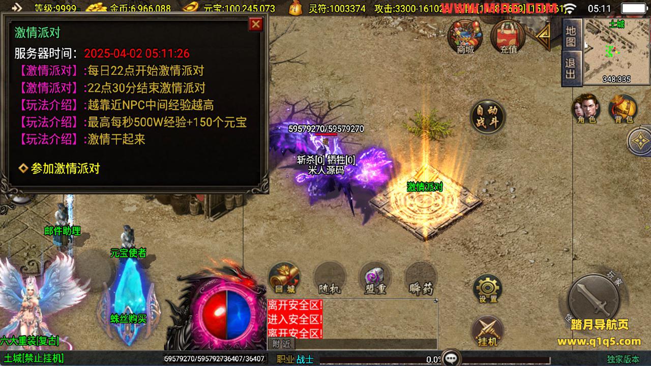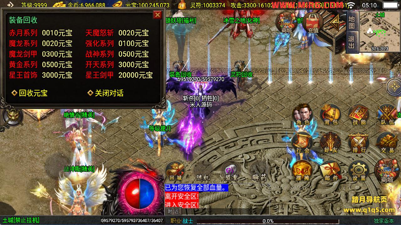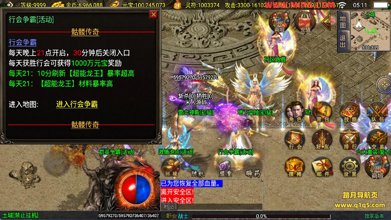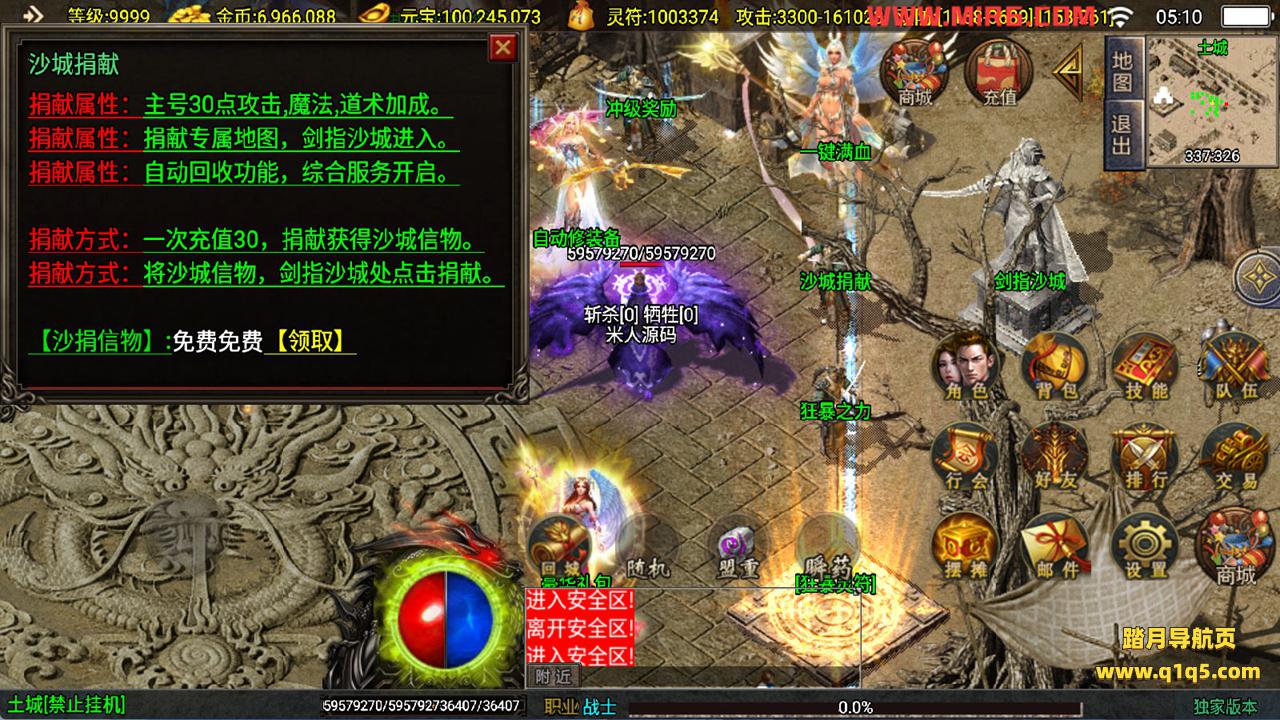 下面我们测试下游戏里的功能看看。好了。其他功能就自行测试吧。更多的游戏资源可以访问www.q1q5.com下载,我们每款游戏资源均单独制作的有独立的视频架设教程,让小白也可以快速上手游戏架设,快来体验自己做GM的乐趣吧!