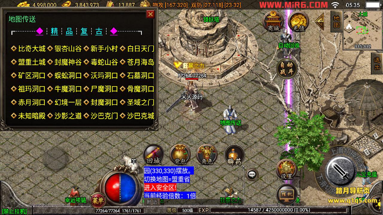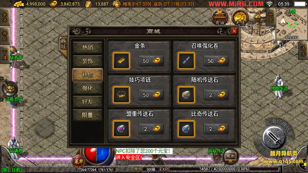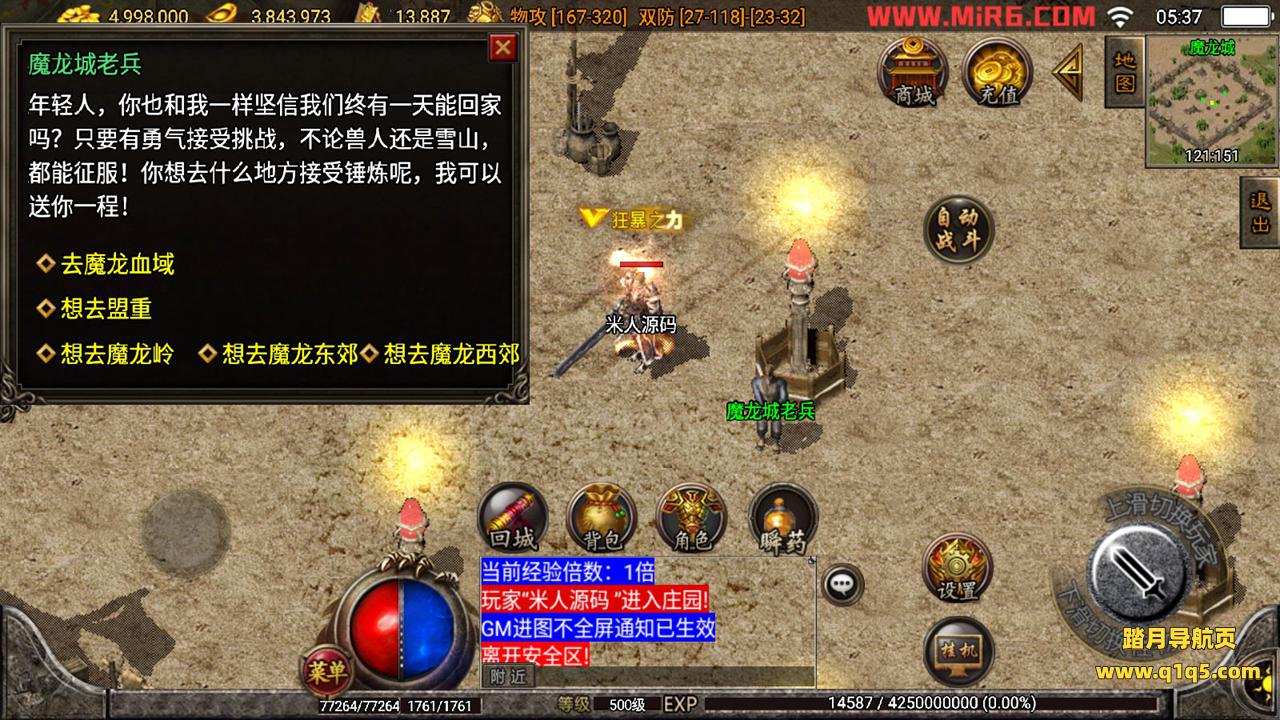 下面我们来测试下游戏里的功能吧。好了,其他功能就自行测试吧。更多的游戏资源可以访问www.q1q5.com下载,我们每款游戏资源均单独制作了独立的视频架设教程,让小白也可以快速上手游戏架设,快来体验自己做GM的乐趣吧!