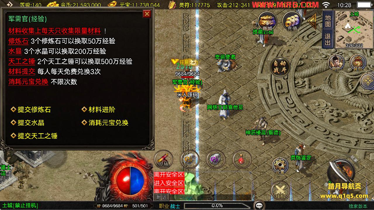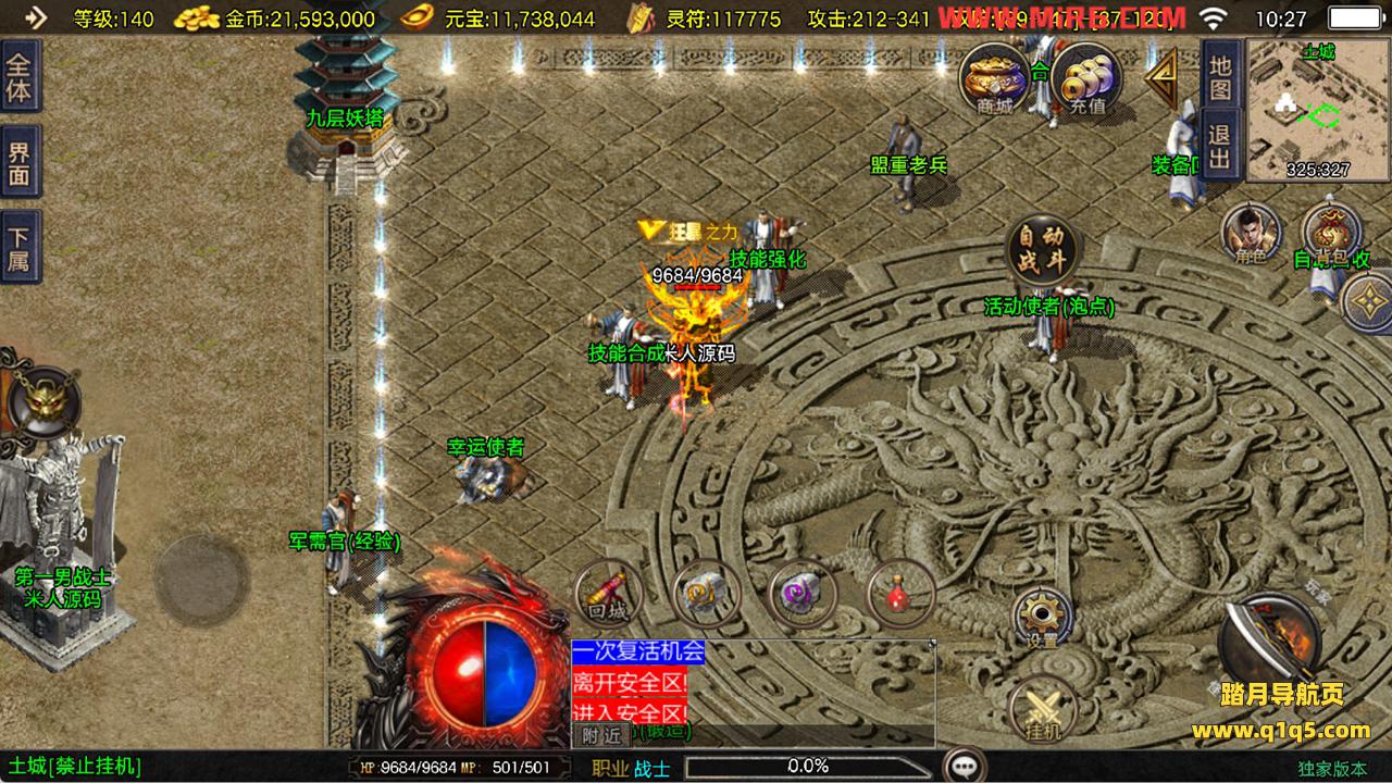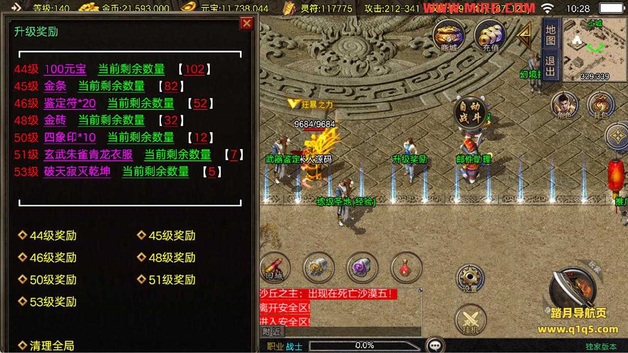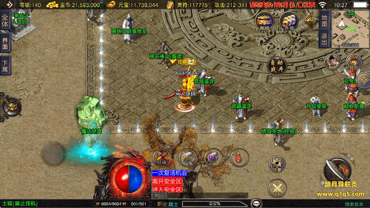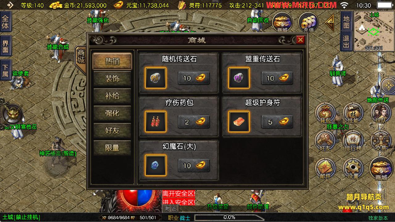 下面我们来测试下游戏里的功能看看。好了,其他功能就自行测试吧。更多的游戏资源可以访问www.q1q5.com下载,我们每款游戏资源均单独制作了独立的视频架设教程,让小白也可以快速上手游戏架设,快来体验自己做GM的乐趣吧!