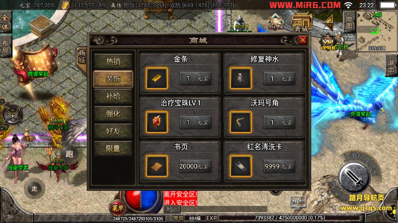 下面我们在测试看看游戏里的功能内容。好了,其他功能自行测试吧。更多的游戏资源请访问www.q1q5.com下载,我们每款游戏资源均单独制作了独立的视频架设教程,让小白也可以快速上手游戏架设,体验做GM的乐趣!