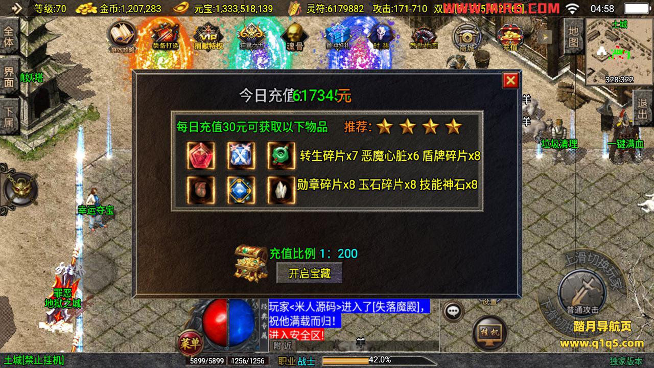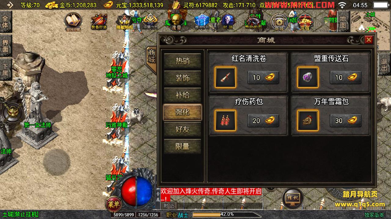 下面我们看一下游戏里的功能。好了,其他功能自行测试吧。更多的游戏资源请访问www.q1q5.com下载,我们每款游戏资源都制作了独立的视频架设教程,让小白也可以快速轻松上手游戏架设,体验做GM的乐趣!