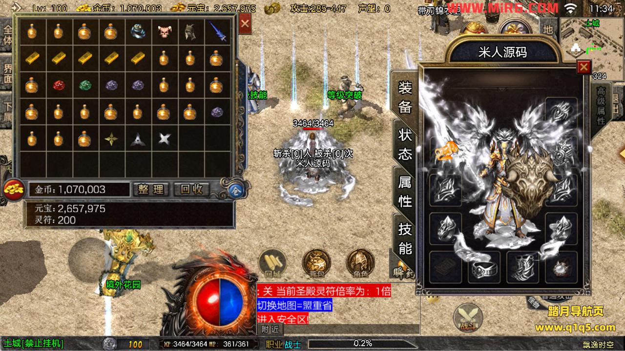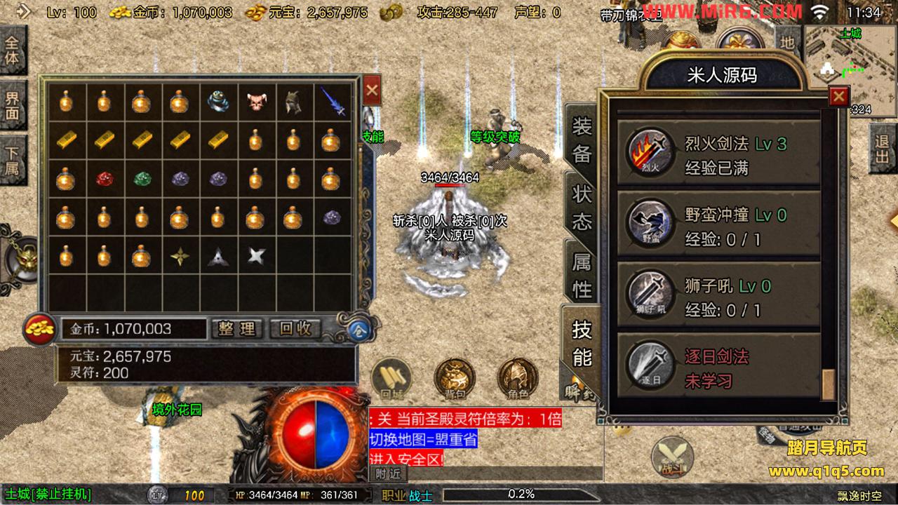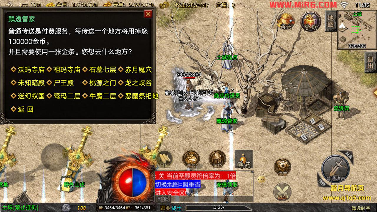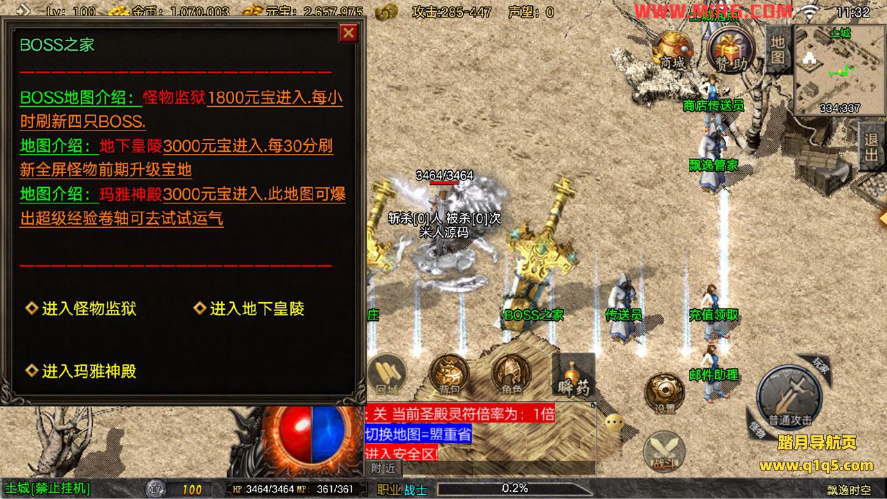 下面我们测试下游戏里的功能看看。好了,其他功能就自行测试吧。更多的游戏资源可以访问www.q1q5.com下载,我们每款游戏资源均单独制作了独立的视频架设教程,让小白也可以快速上手游戏架设,快来体验自己做GM的乐趣吧!