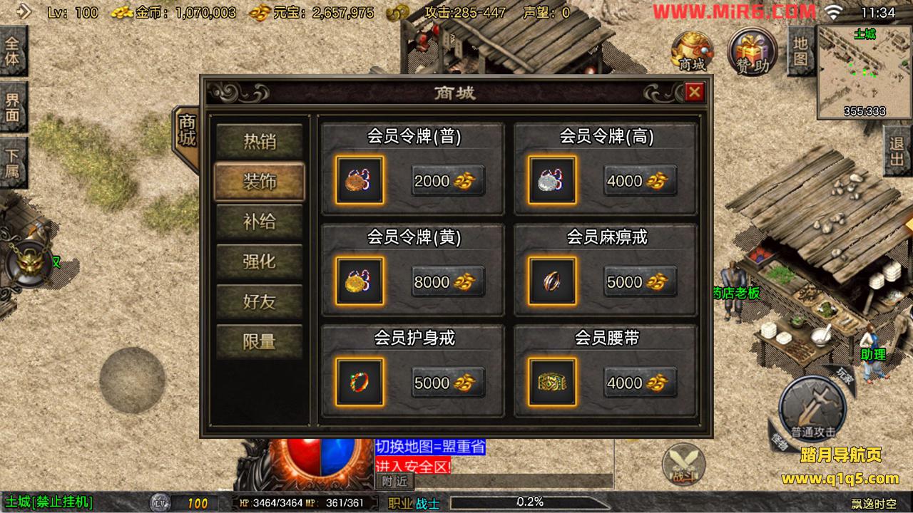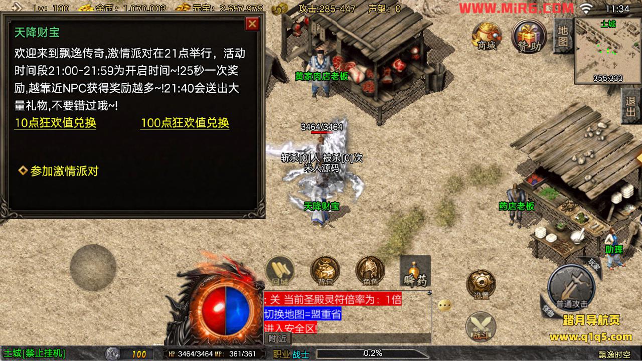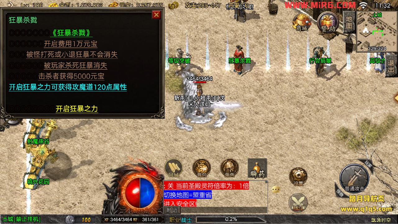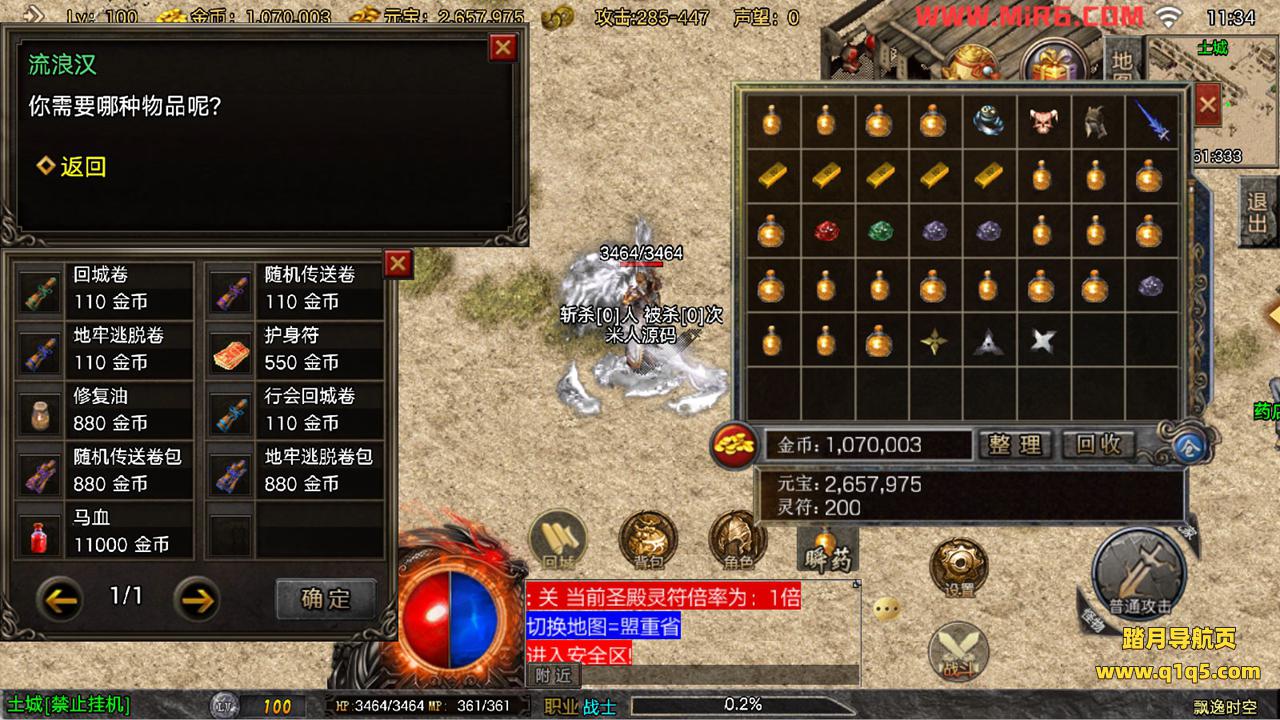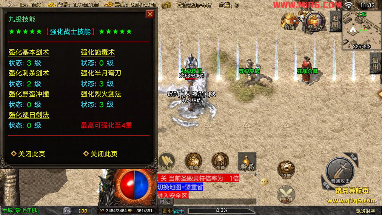 下面我们测试下游戏里的功能看看。好了,其他功能就自行测试吧。更多的游戏资源可以访问www.q1q5.com下载,我们每款游戏资源均单独制作了独立的视频架设教程,让小白也可以快速上手游戏架设,快来体验自己做GM的乐趣吧!