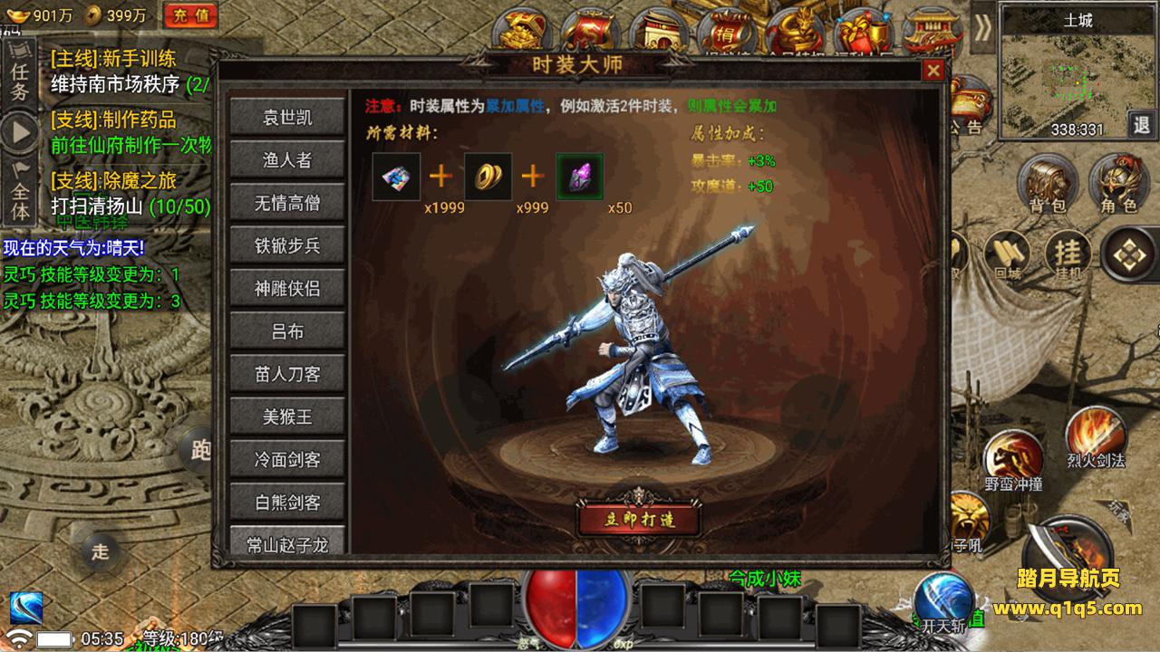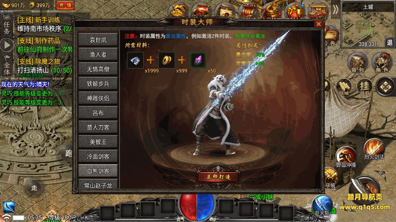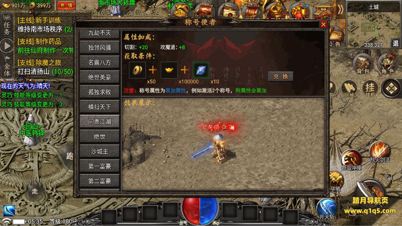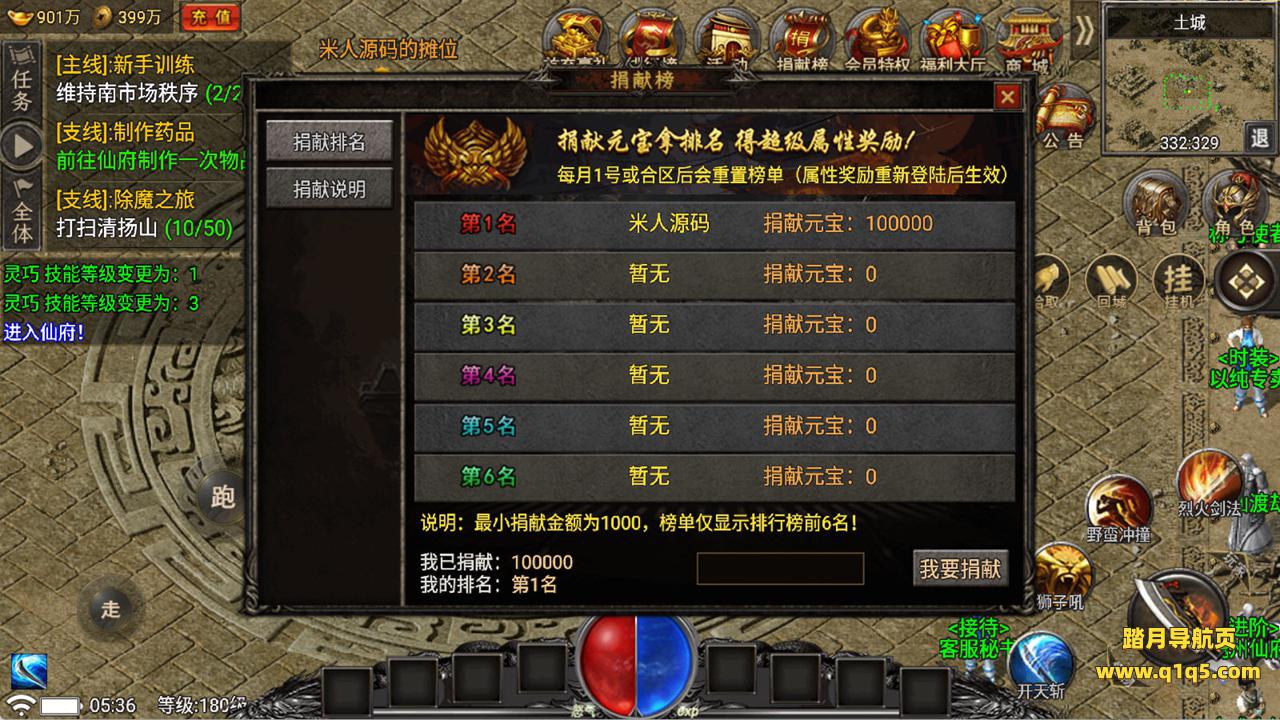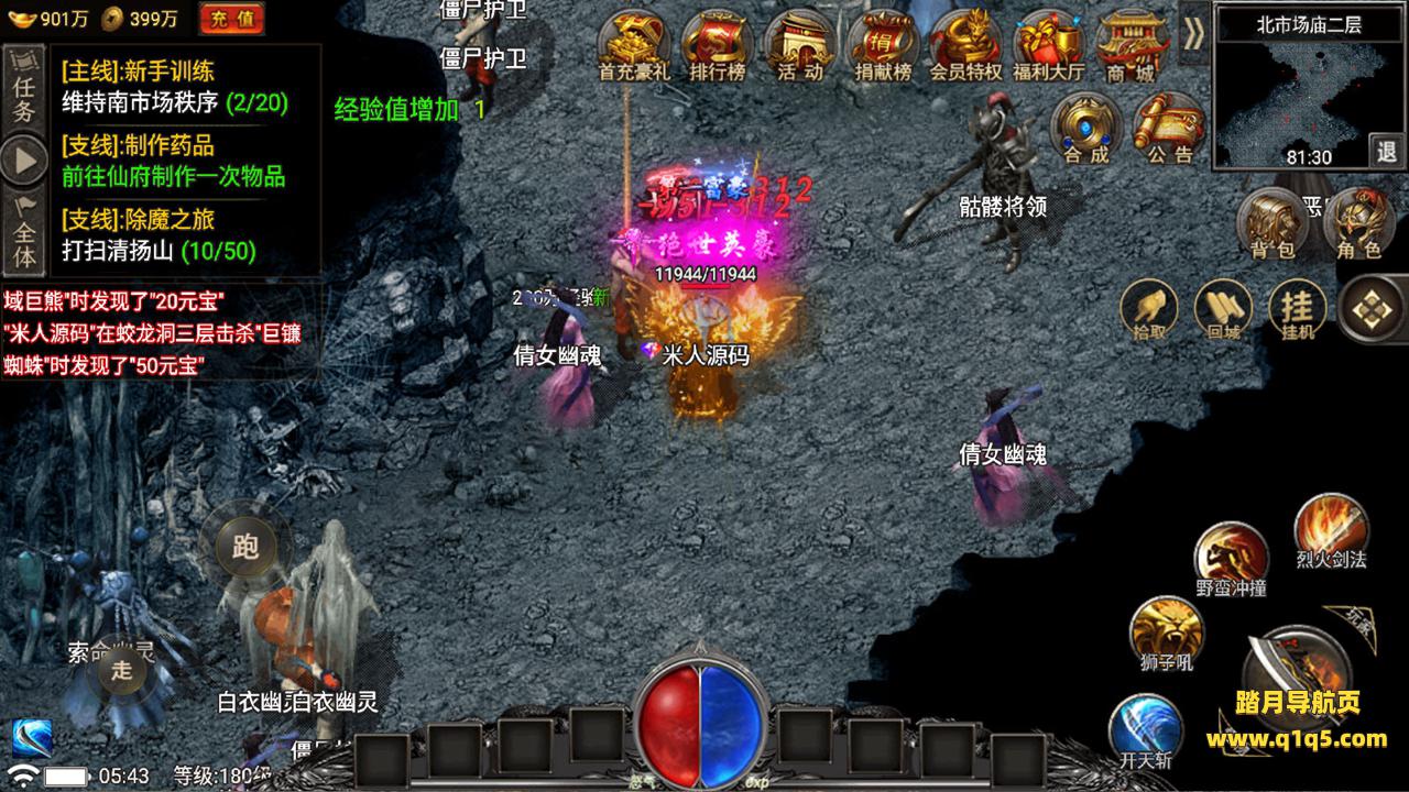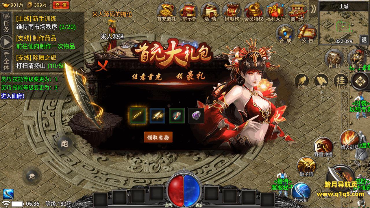 下面我们来测试下游戏里的功能看看。好了,其他功能就自行测试吧。更多的游戏资源可以访问www.q1q5.com下载,我们每款游戏资源均单独制作了独立的视频架设教程,让小白也可以快速上手游戏架设,快来体验自己做GM的乐趣吧!