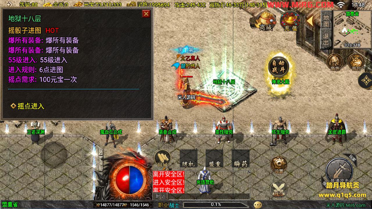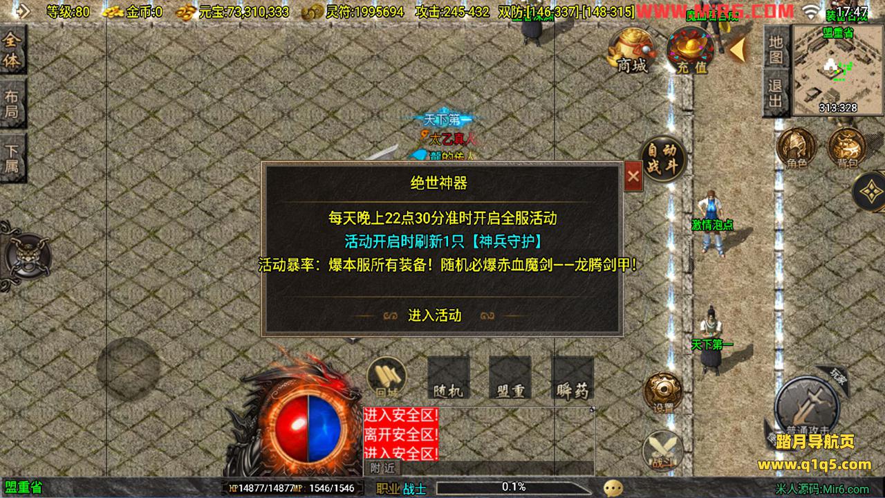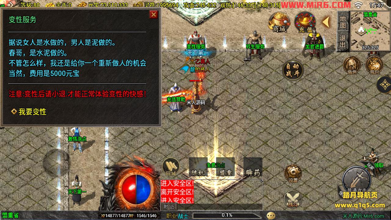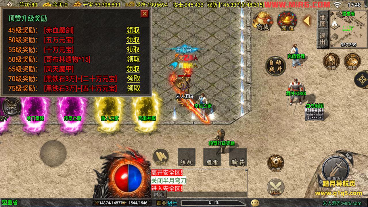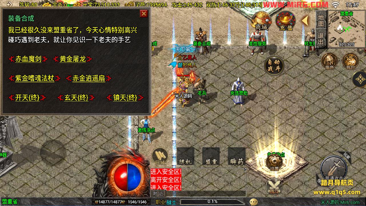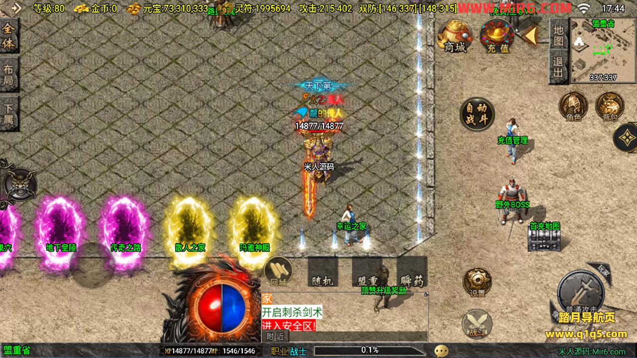 好了,下面我们去游戏里测试下游戏里的功能看看。好了,其他功能就自行测试吧。更多的游戏资源可以访问www.q1q5.com下载,我们每款游戏资源均单独制作了独立的视频架设教程,让小白也可以快速上手游戏架设,快来体验自己做GM的乐趣吧!