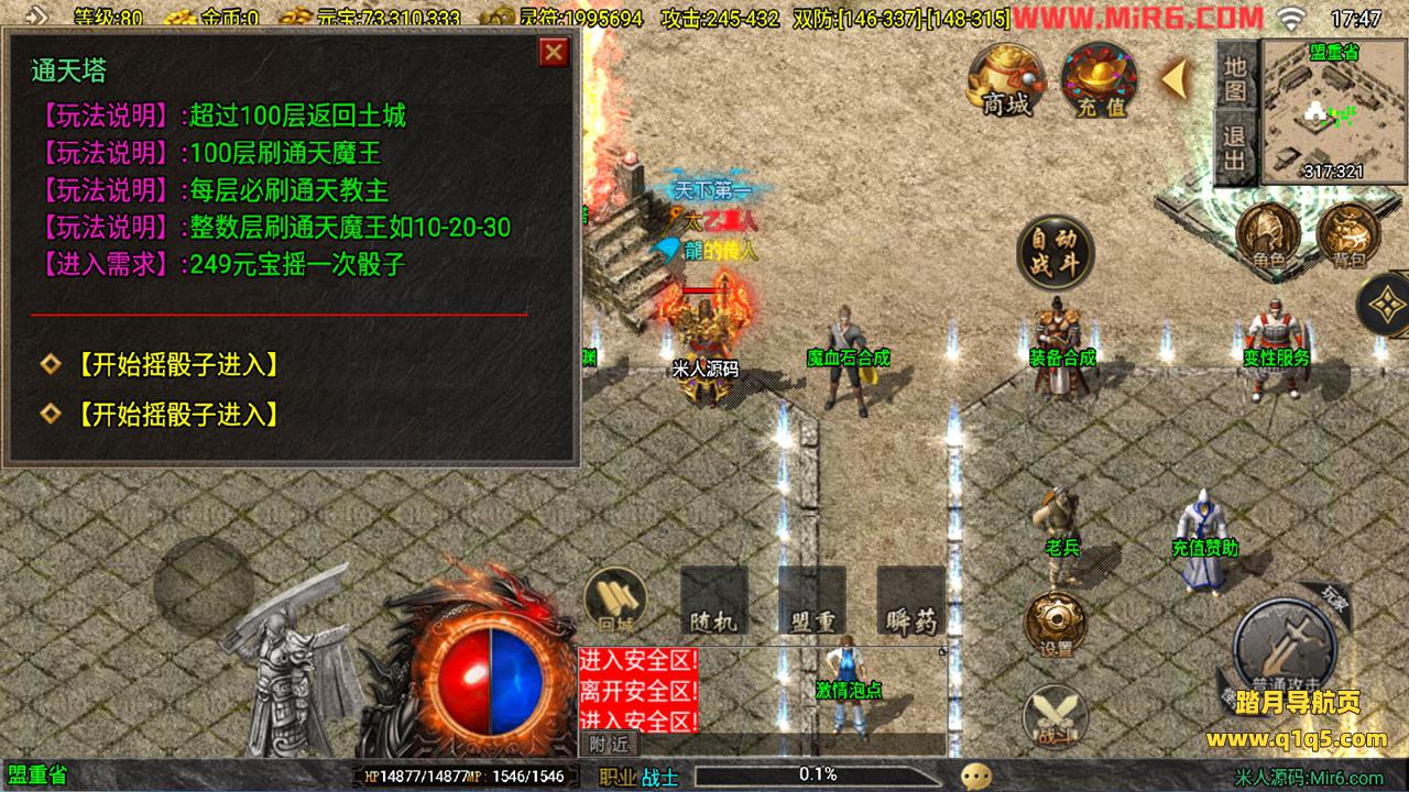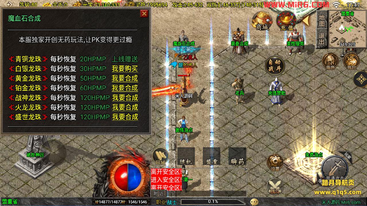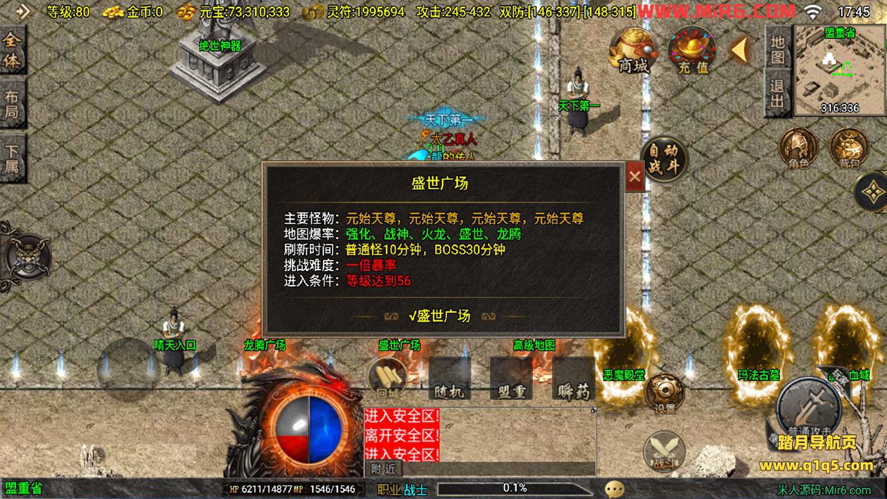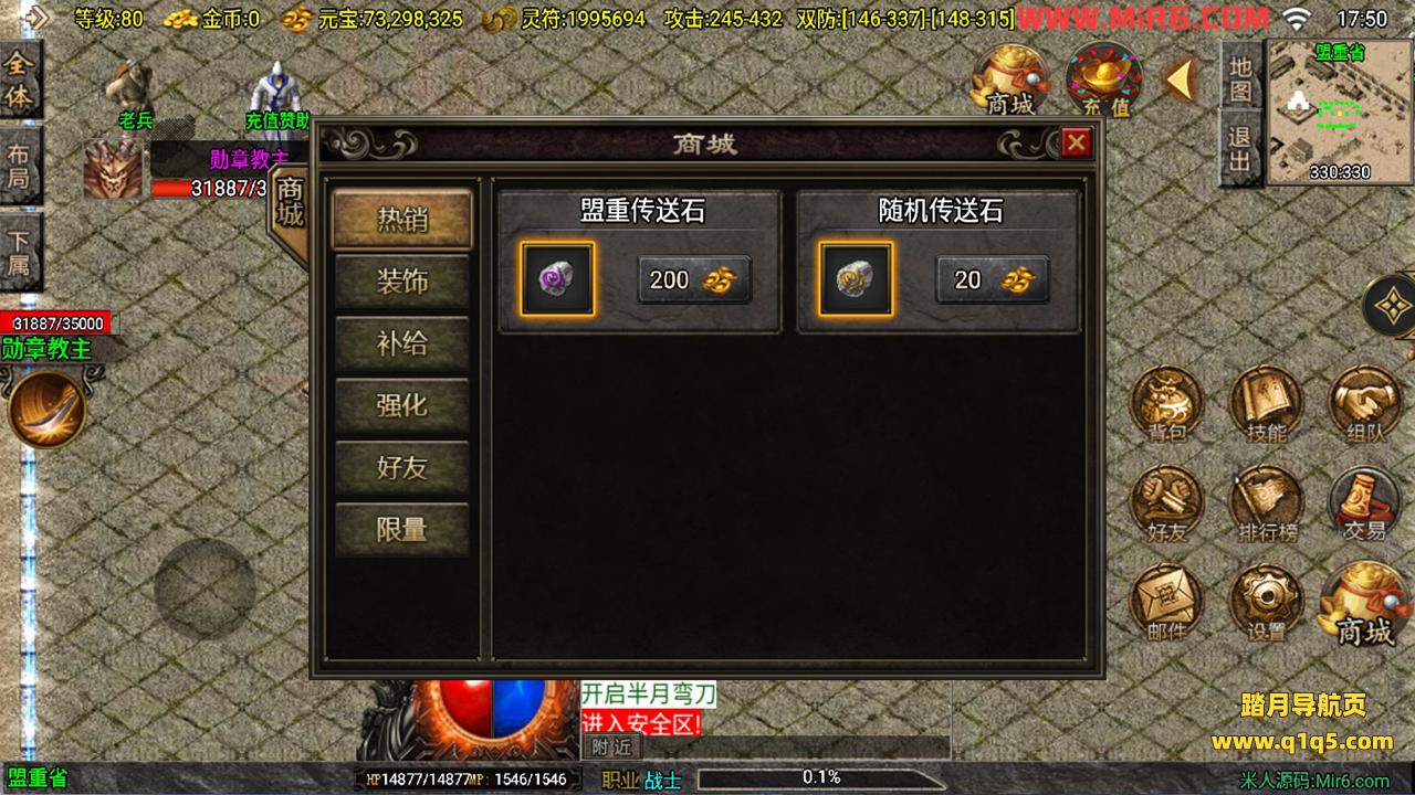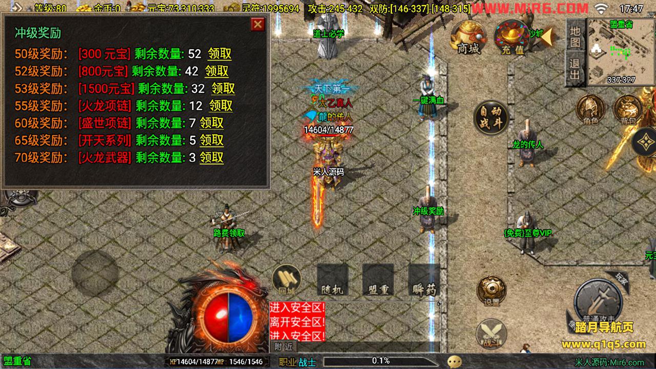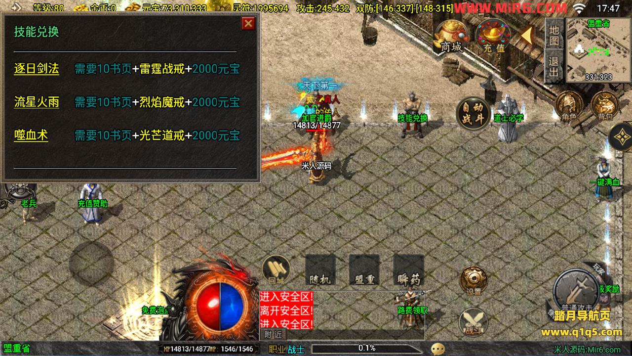 好了,下面我们去游戏里测试下游戏里的功能看看。好了,其他功能就自行测试吧。更多的游戏资源可以访问www.q1q5.com下载,我们每款游戏资源均单独制作了独立的视频架设教程,让小白也可以快速上手游戏架设,快来体验自己做GM的乐趣吧!