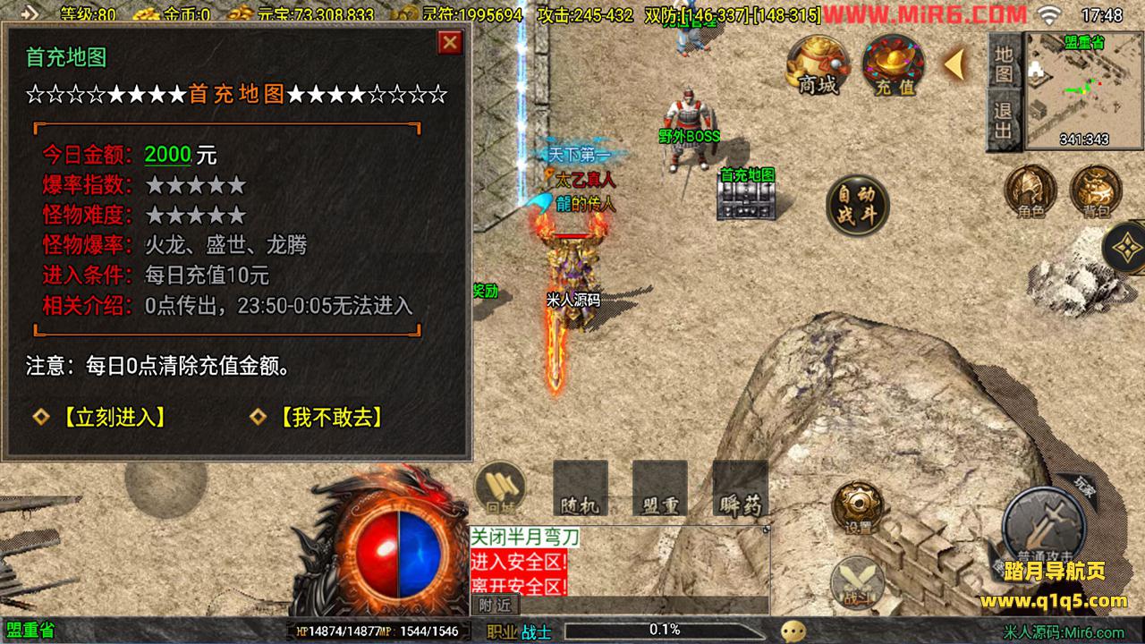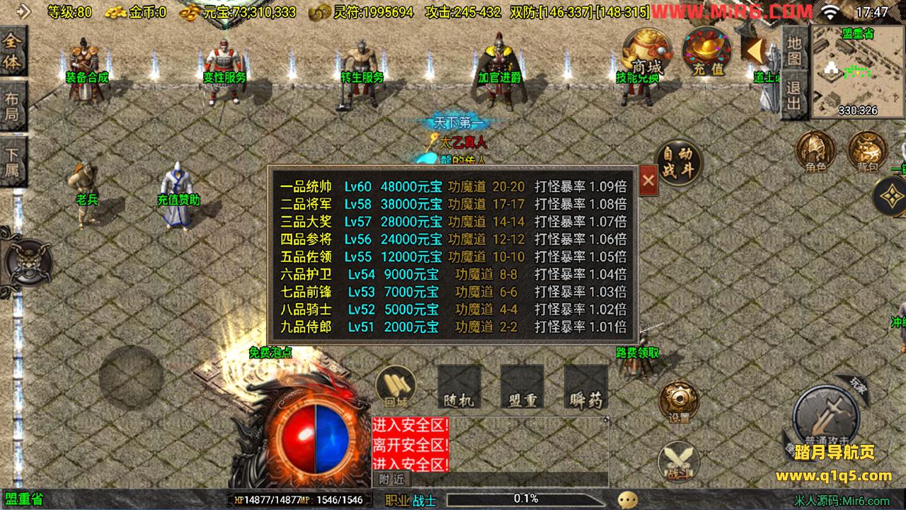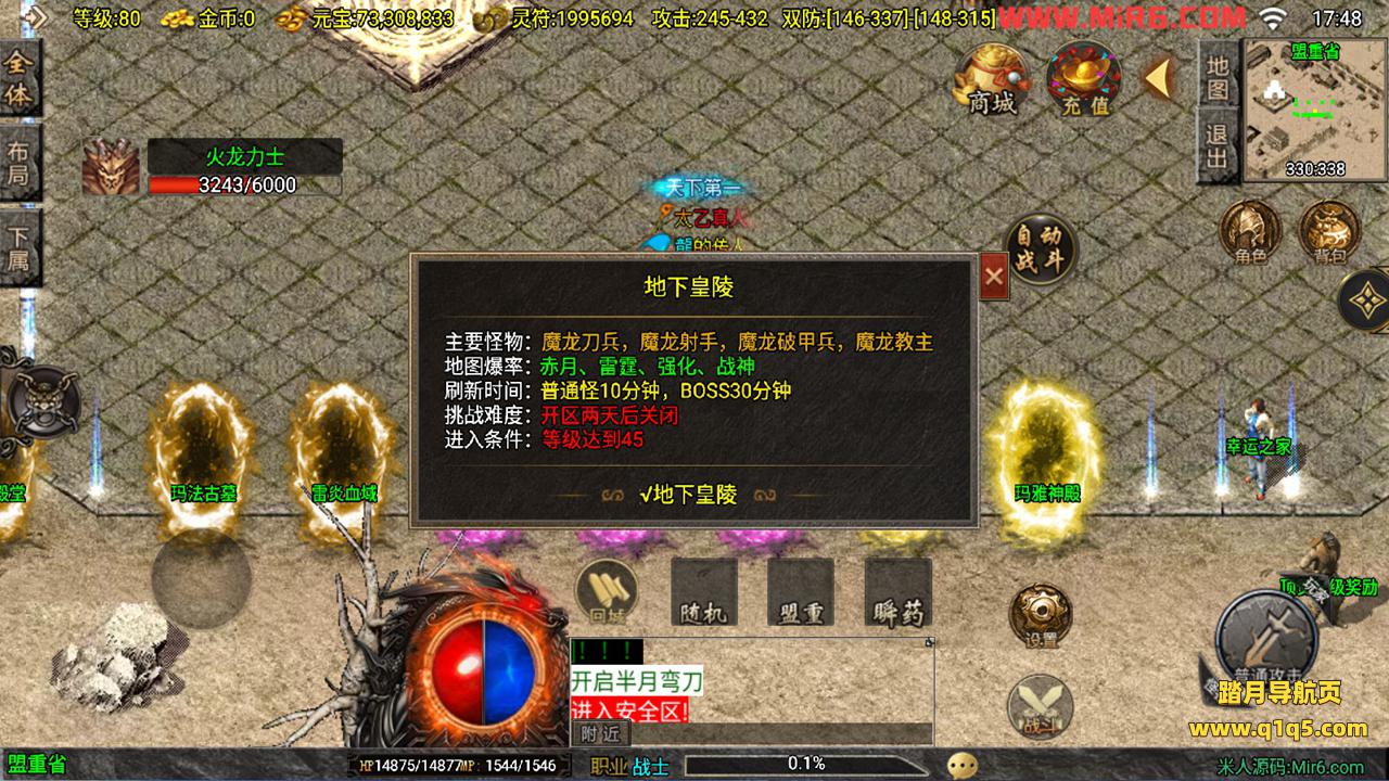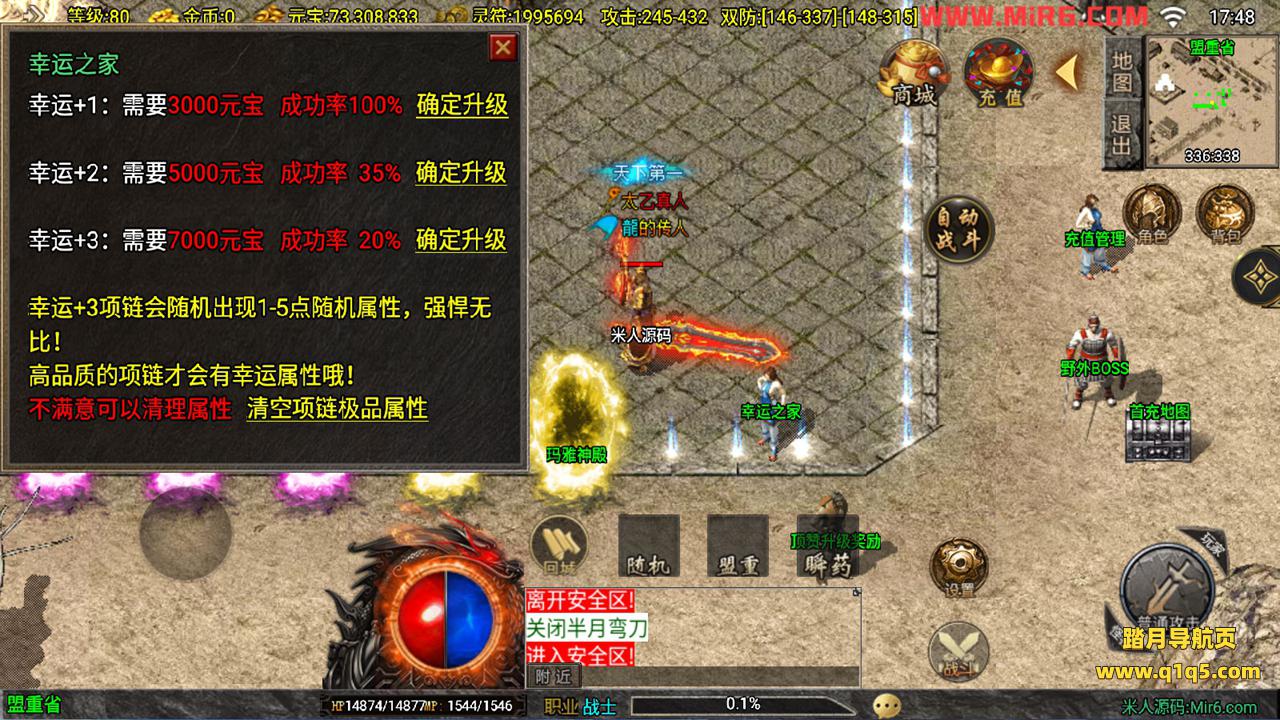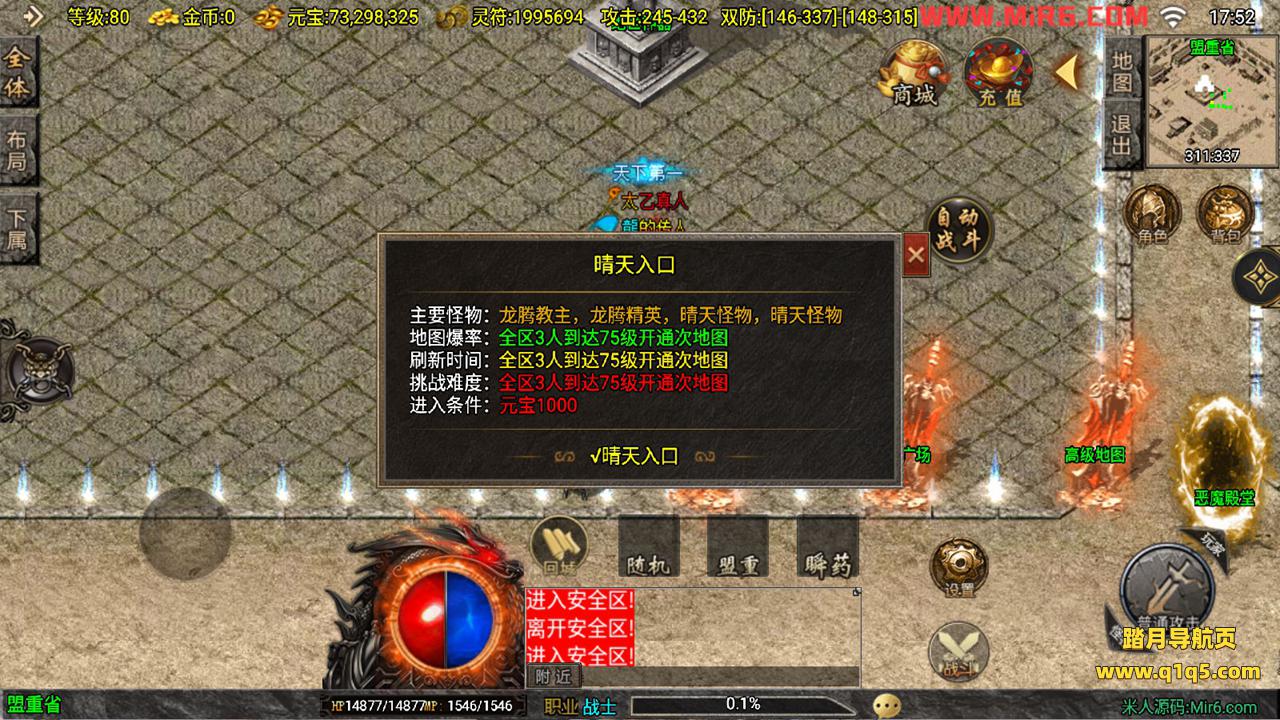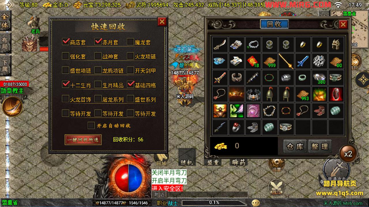 好了,下面我们去游戏里测试下游戏里的功能看看。好了,其他功能就自行测试吧。更多的游戏资源可以访问www.q1q5.com下载,我们每款游戏资源均单独制作了独立的视频架设教程,让小白也可以快速上手游戏架设,快来体验自己做GM的乐趣吧!