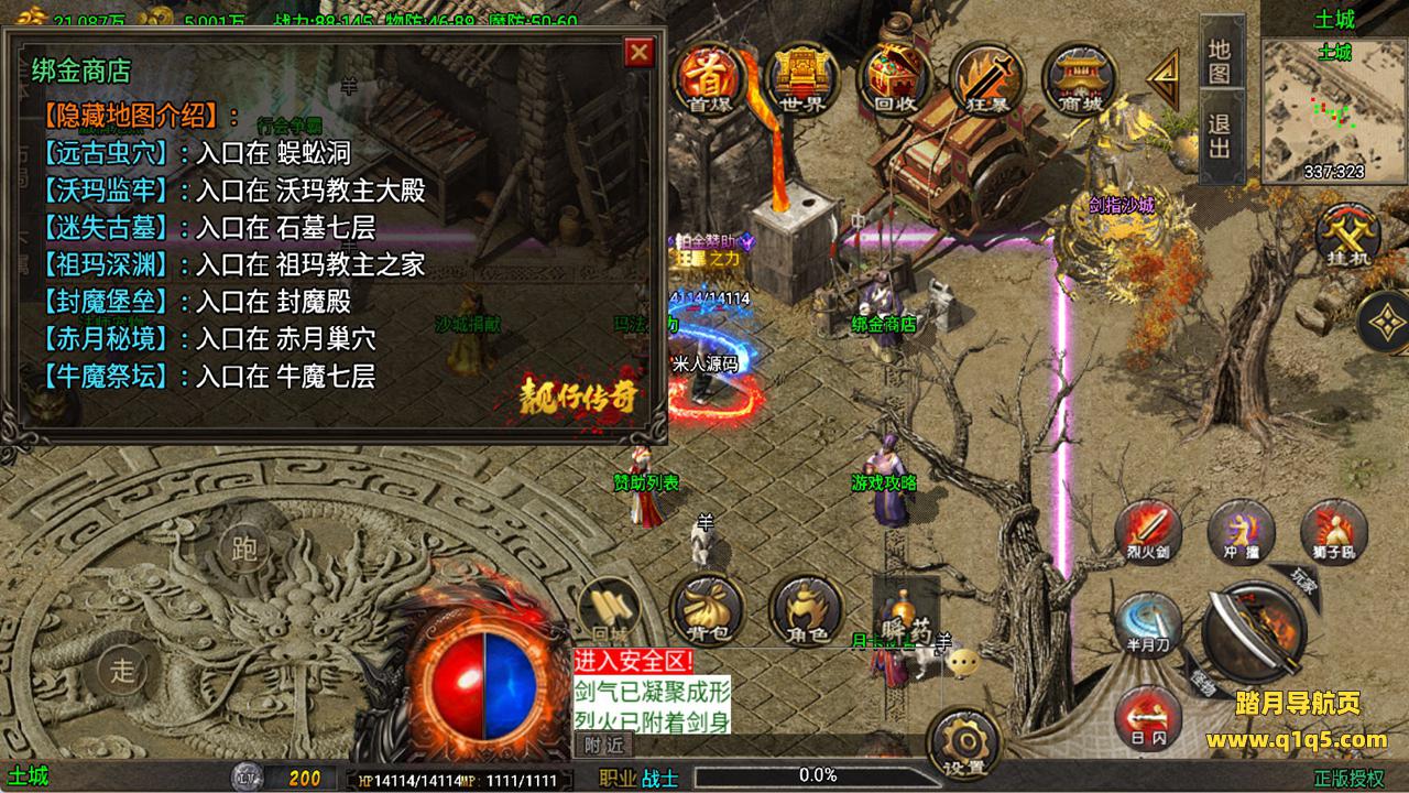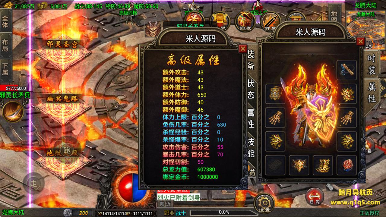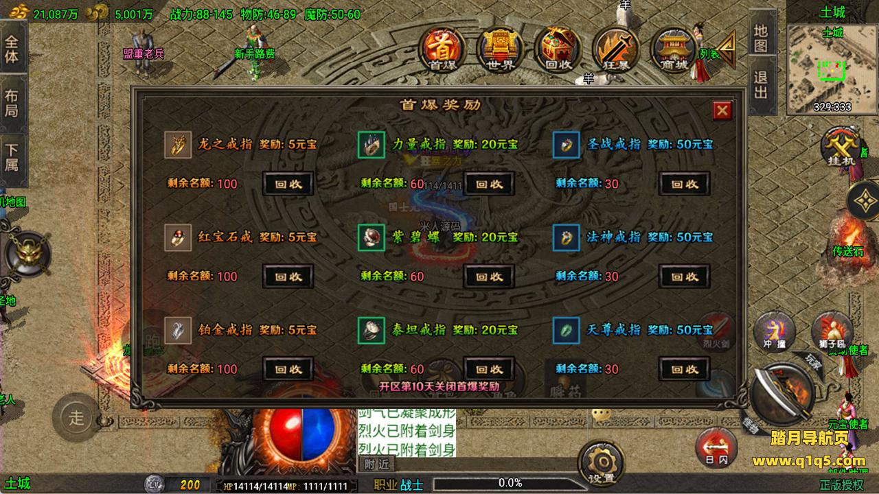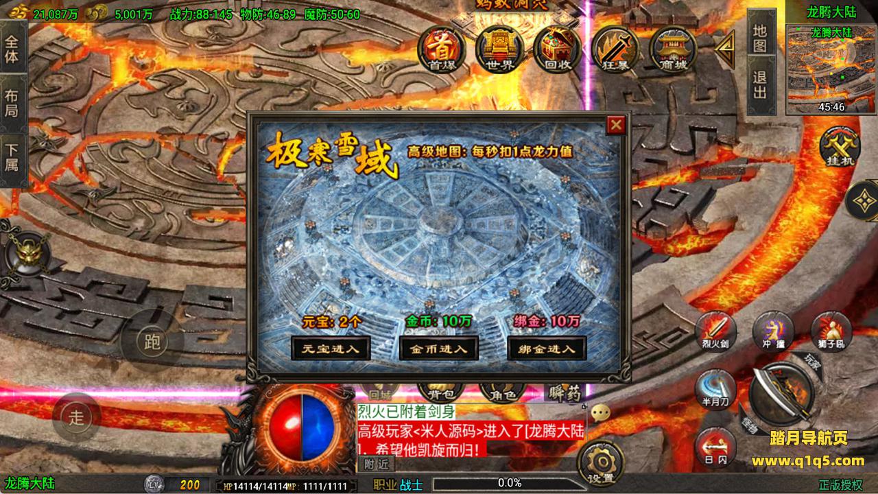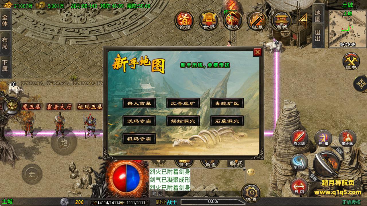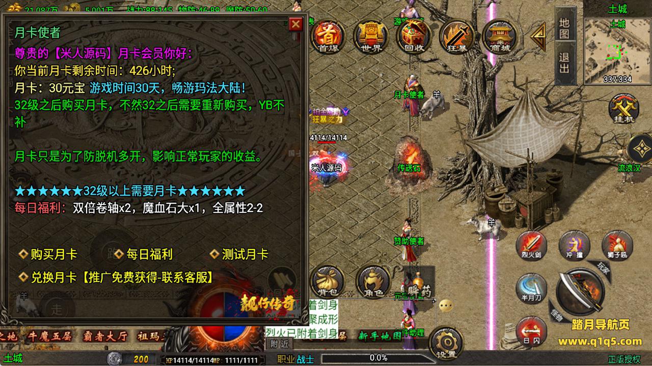 下面我们来测试下游戏里的功能看看。好了,其他功能就自行测试吧。更多的游戏资源可以访问www.q1q5.com下载,我们每款游戏资源均单独制作了独立的视频架设教程,让小白也可以快速上手游戏架设,快来体验自己做GM的乐趣吧!