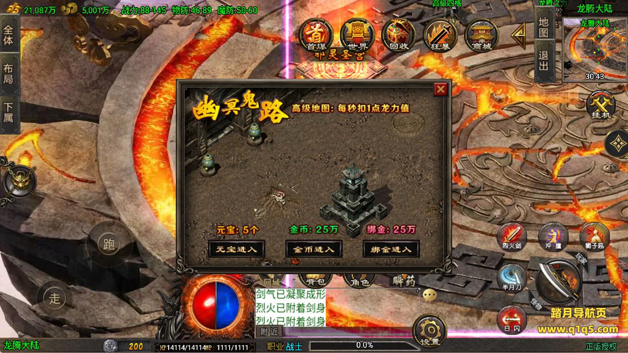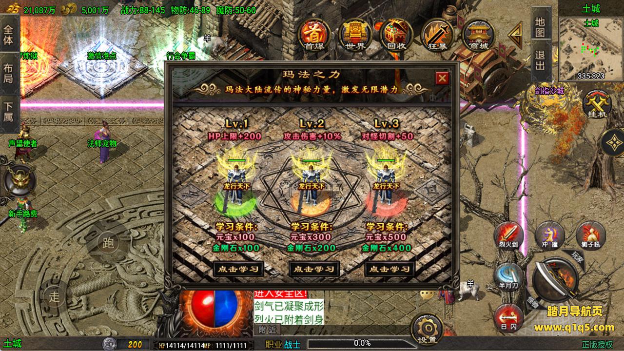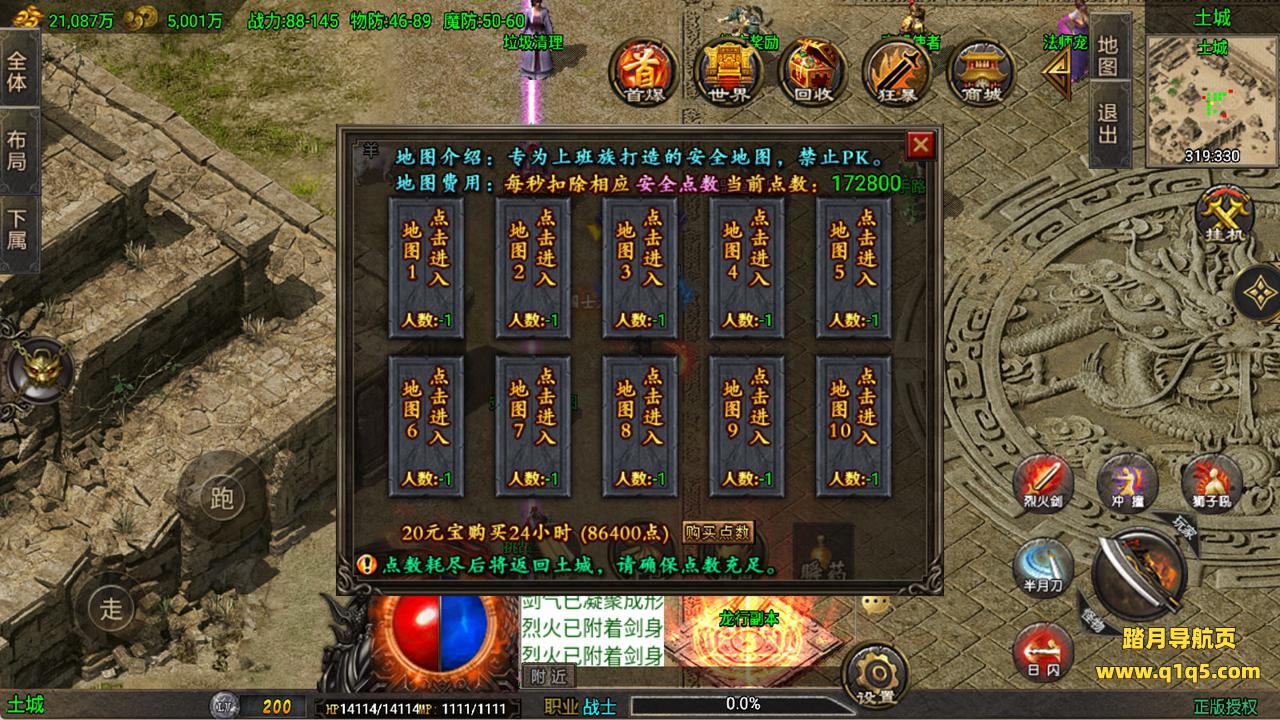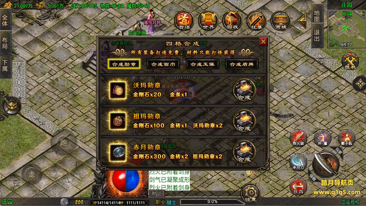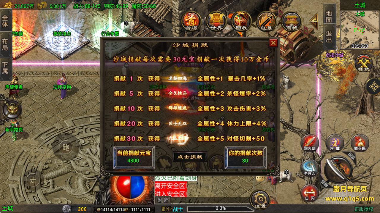 下面我们来测试下游戏里的功能看看。好了,其他功能就自行测试吧。更多的游戏资源可以访问www.q1q5.com下载,我们每款游戏资源均单独制作了独立的视频架设教程,让小白也可以快速上手游戏架设,快来体验自己做GM的乐趣吧!