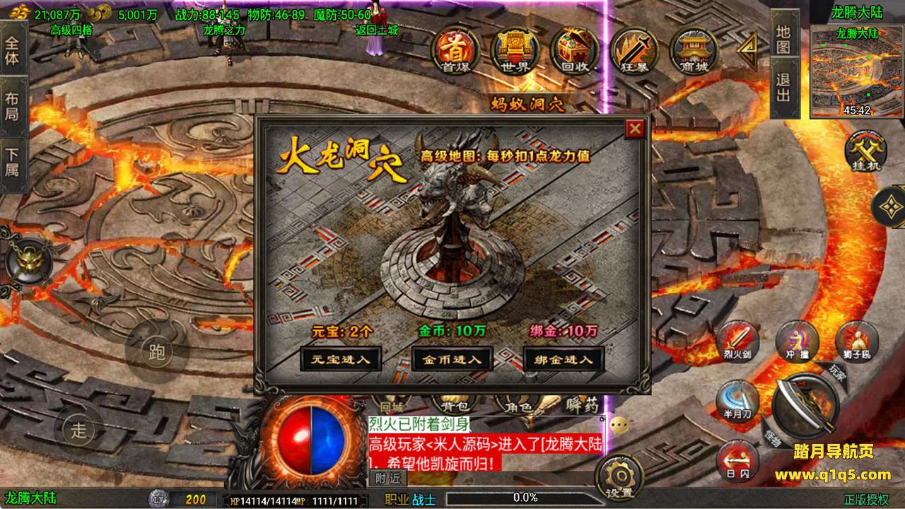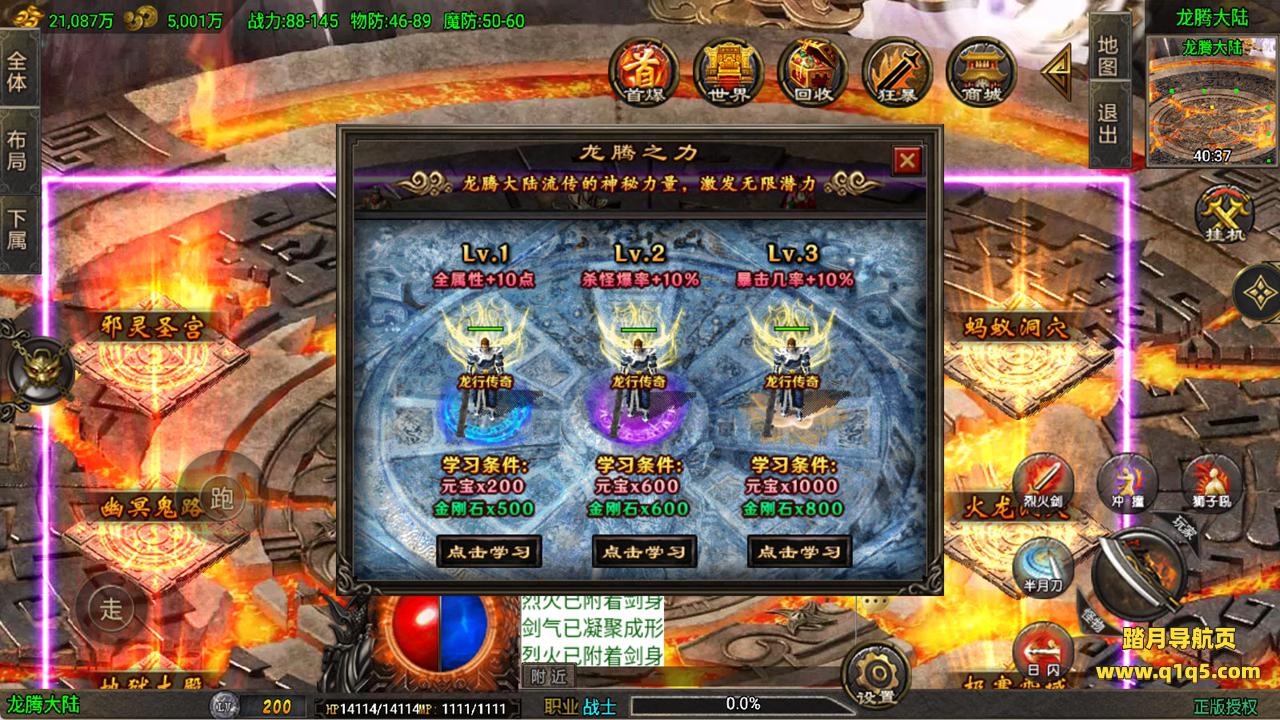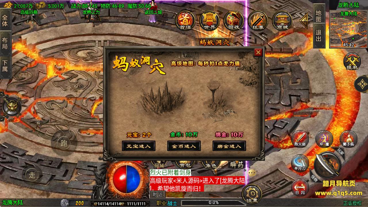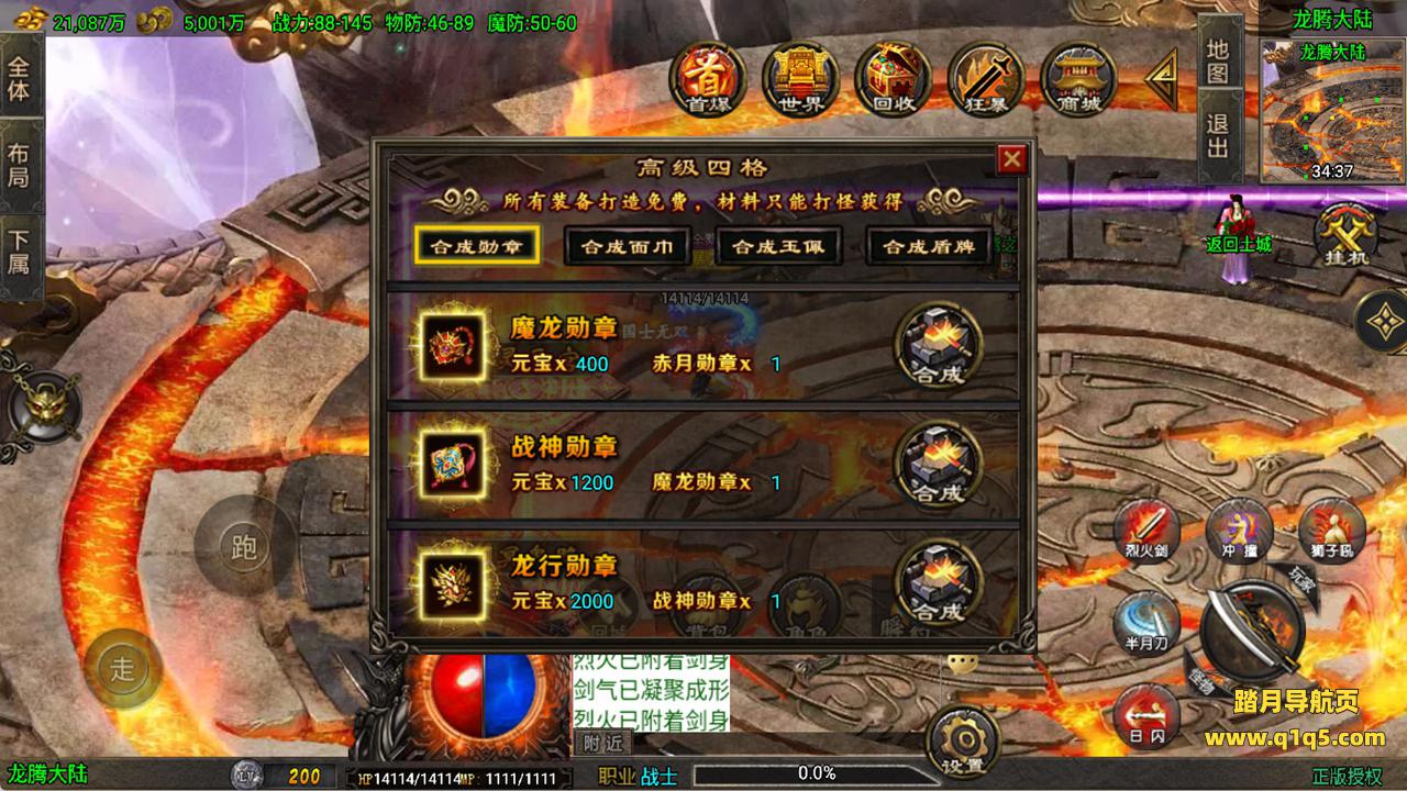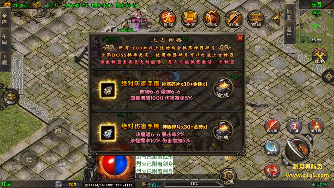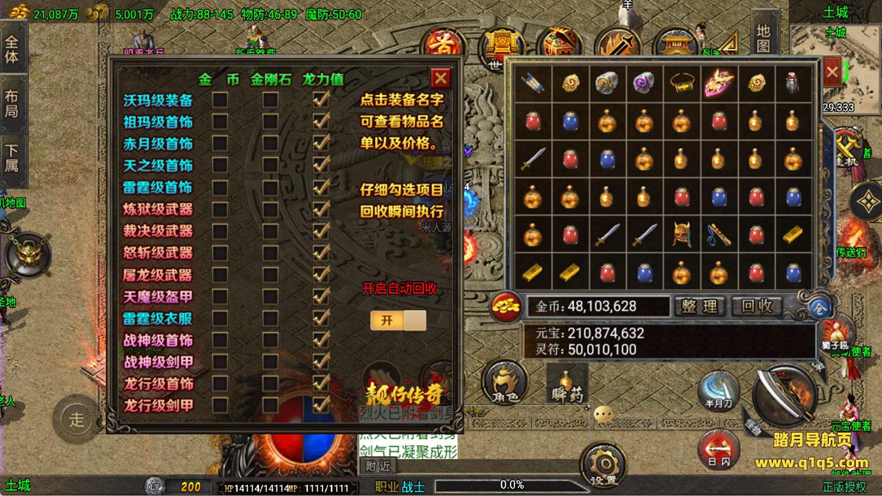 下面我们来测试下游戏里的功能看看。好了,其他功能就自行测试吧。更多的游戏资源可以访问www.q1q5.com下载,我们每款游戏资源均单独制作了独立的视频架设教程,让小白也可以快速上手游戏架设,快来体验自己做GM的乐趣吧!
