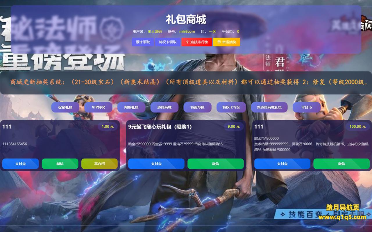 下面我们来测试下游戏里的功能看看。好了,其他功能就自行测试吧。更多的游戏资源可以访问www.q1q5.com下载,我们每款游戏资源均单独制作了独立的视频架设教程,让小白也可以快速上手游戏架设,快来体验自己做GM的乐趣吧!