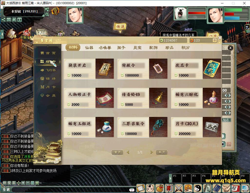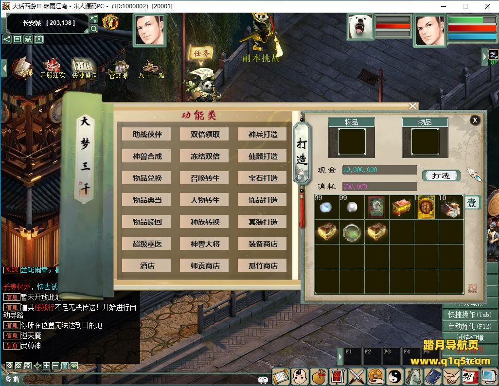 下面我们测试下游戏里的功能看看。我们先测试PC客户端里的功能。下面我们再测试下手机客户端功能。好了,其他功能就自行测试吧。更多的游戏资源可以访问www.q1q5.com下载,我们每款游戏资源均单独制作了独立的视频架设教程,让小白也可以快速上手游戏架设,快来体验自己做GM的乐趣吧!