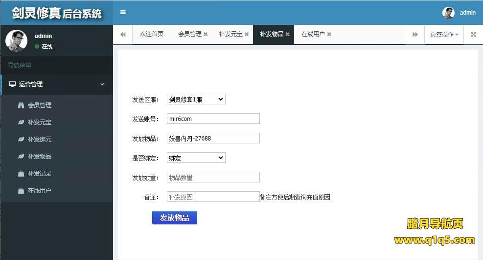 登录自动注册账号,游戏已可以正常进入了,我们先看看游戏演示。好了,我们看看后台。