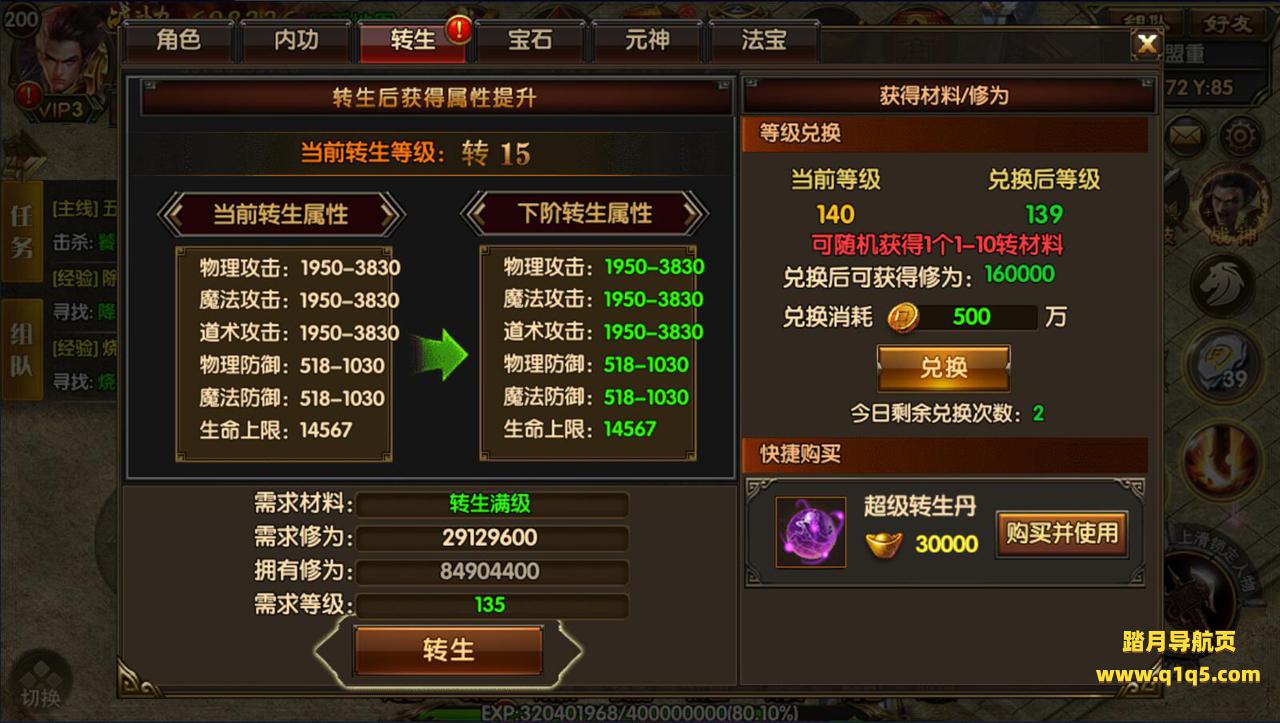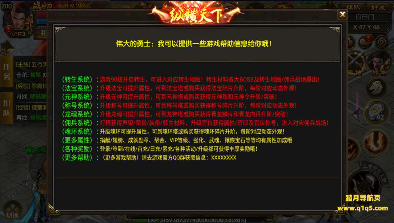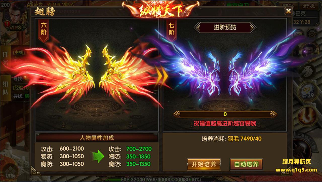 (更多属性):转生、翅膀、成就勋章、帮会、VIP等级、炼魂、武魂、官位、强化装备均有属性加成哦