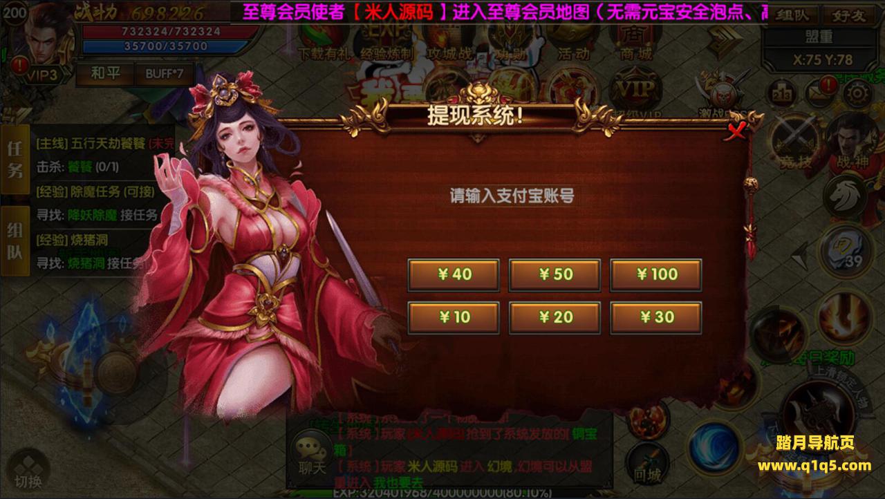 (每日充值):玩家每日充值可在充值返利界面获得丰厚奖励哦!充值1元可获得1张赞助会员卡,可进入赞助地图,爆率超高