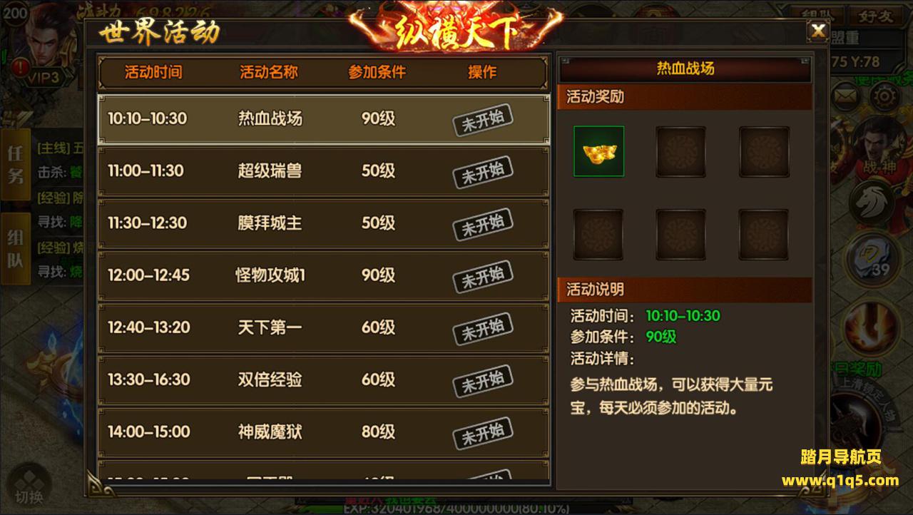 (活动BOSS):(活动期间)每晚18:05土城药店下方108,93会刷新宝石首领,击杀可获得大量宝石和材料哦!