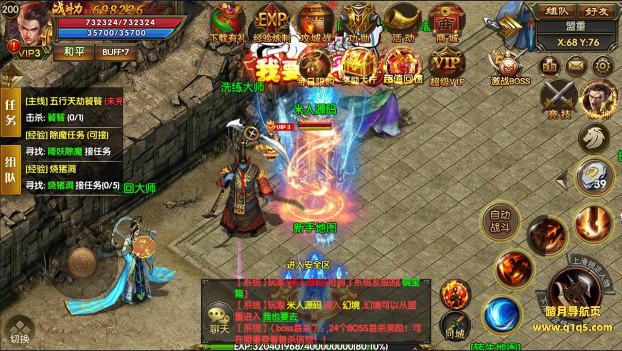 (宝石BOSS):(活动期间)每晚18:05土城药店下方108,93会刷新宝石首领,击杀可获得大量宝石和材料哦!