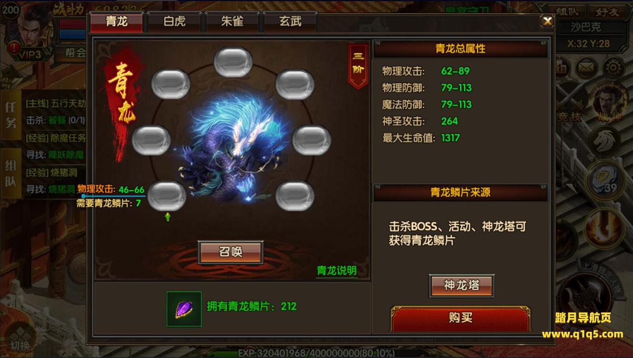 (龙魂系统):升级龙魂可获得属性加成,龙魂材料可充值VIP获取、神龙塔、各大BOSS身上都有爆哦!