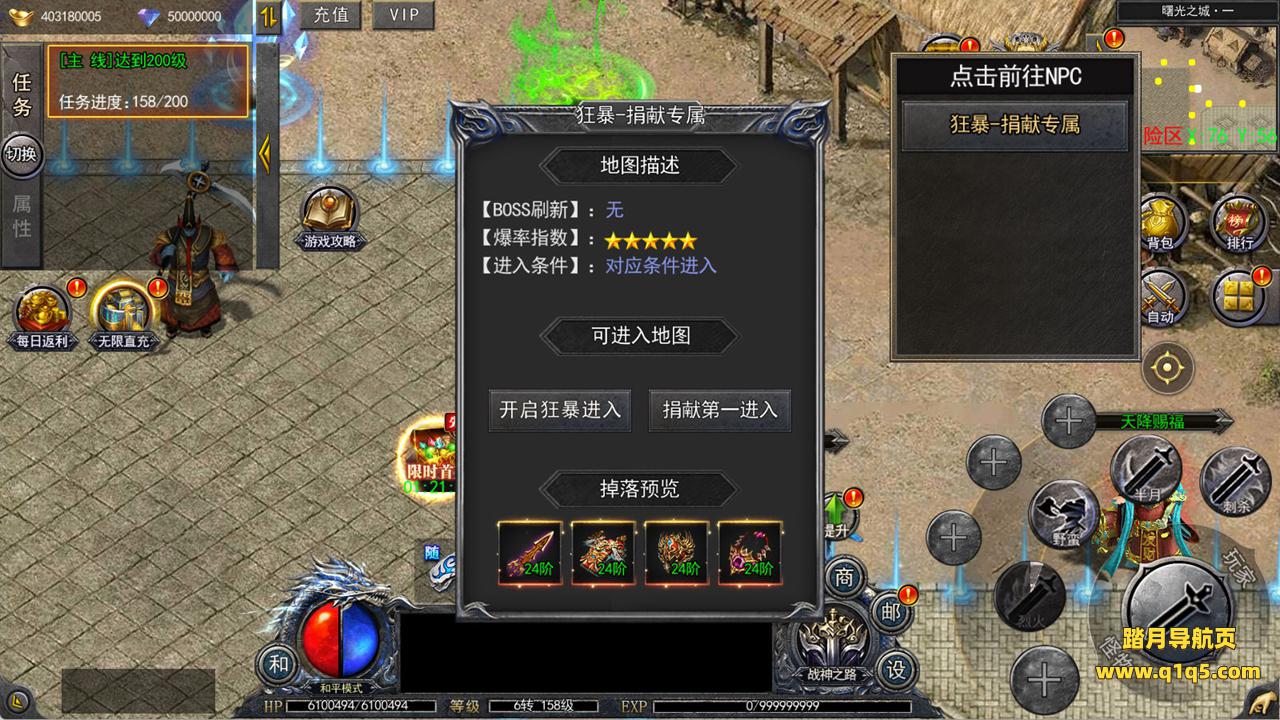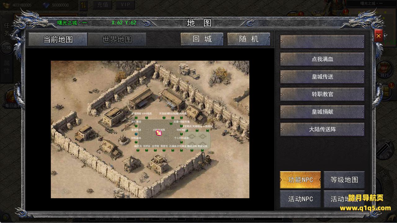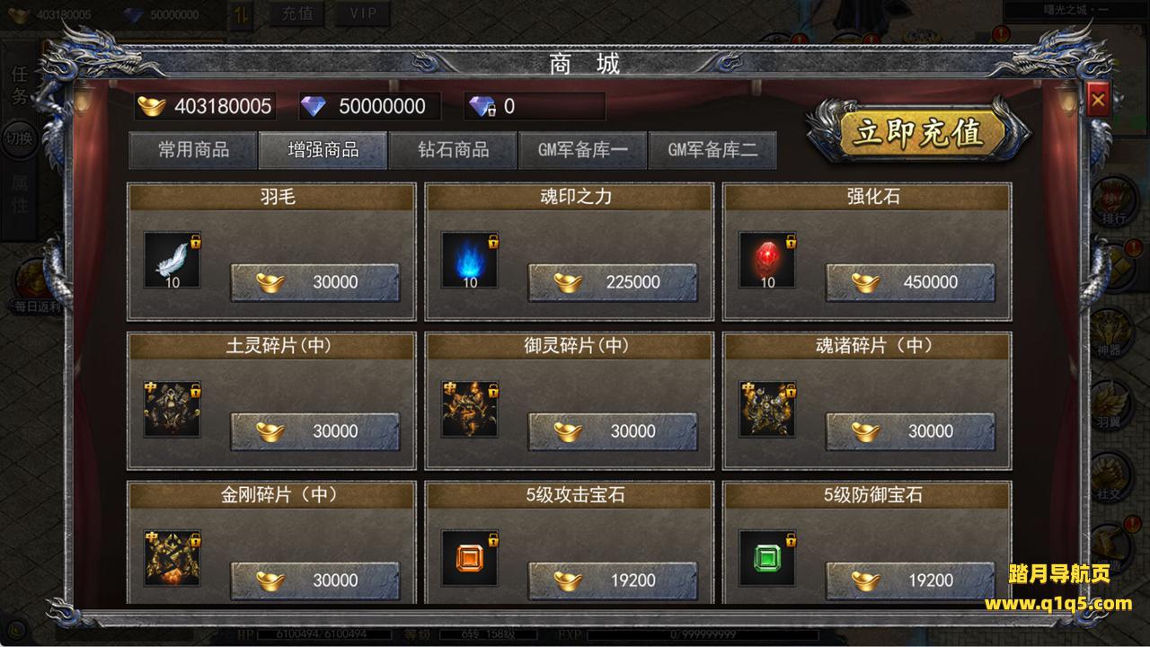 下面我们测试下游戏里的功能看看吧。好了。其他功能就自行测试吧。更多的游戏资源可以访问www.q1q5.com下载,我们每款游戏资源均单独制作了独立的视频架设教程,让小白也可以快速上手游戏架设,快来体验自己做GM的乐趣吧!