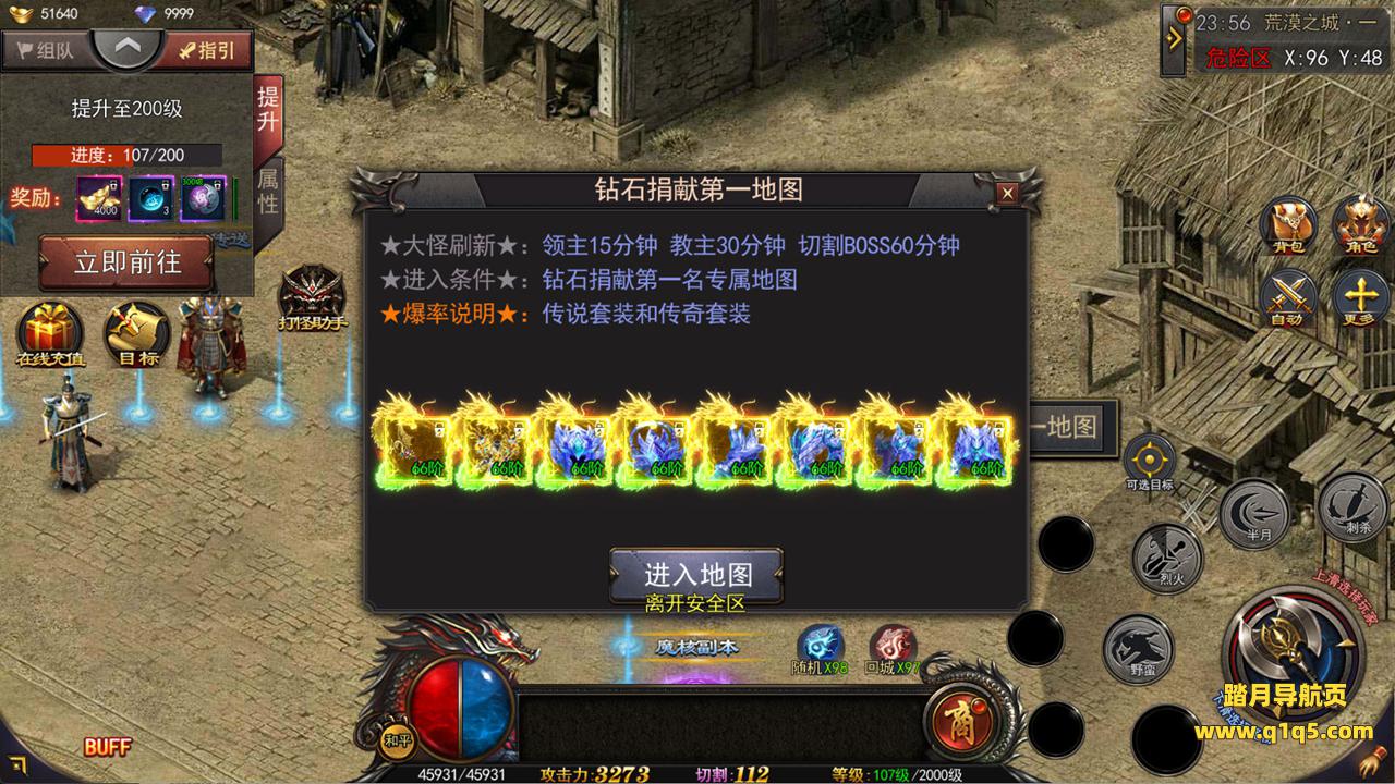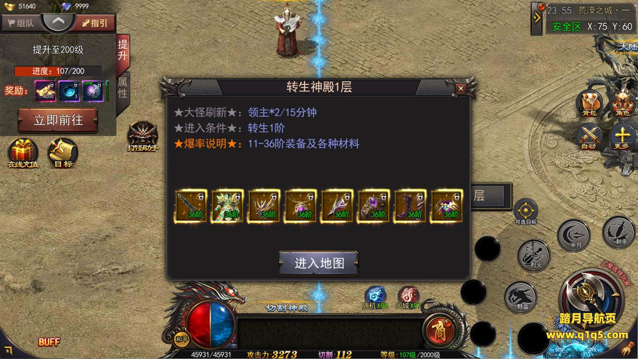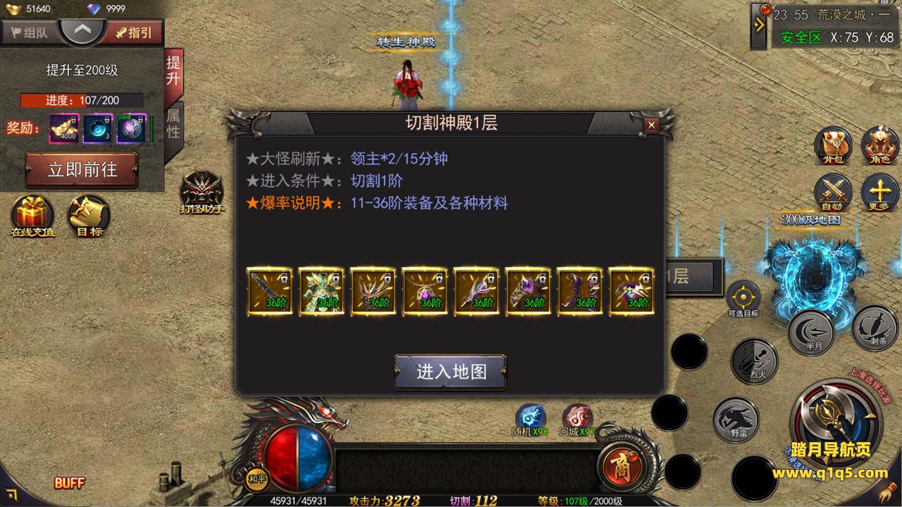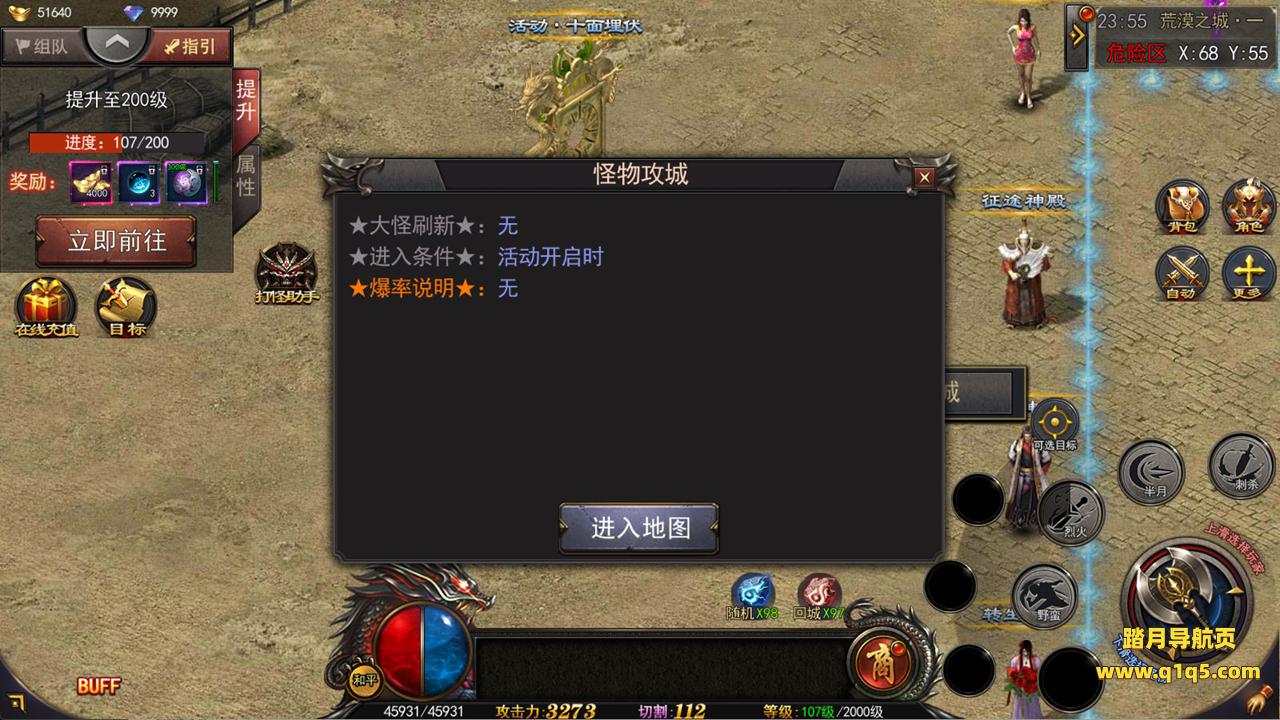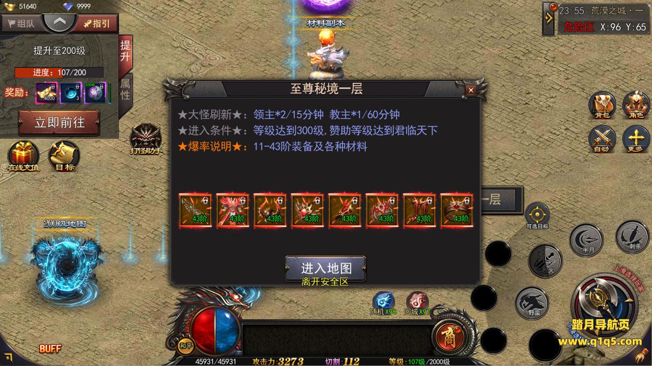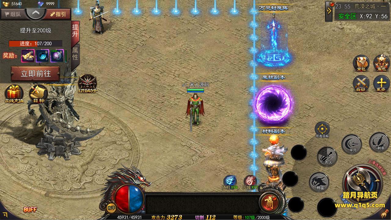 好了,下面我们去测试下游戏里的功能看看。其他功能就自行测试吧。更多的游戏资源可以访问www.q1q5.com下载,我们每款游戏资源均单独制作了独立的视频架设教程,让小白也可以快速上手游戏架设,快来体验自己做GM的乐趣吧!