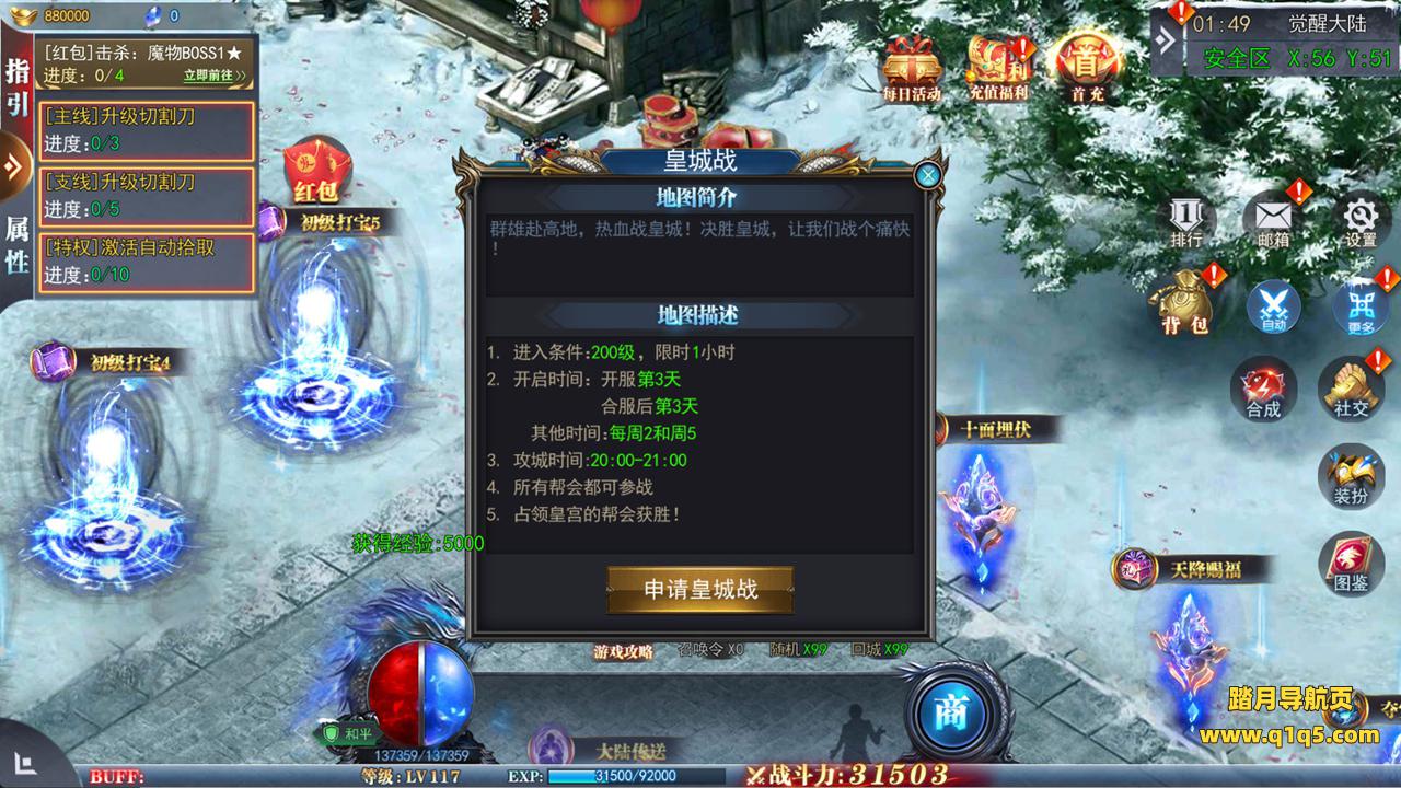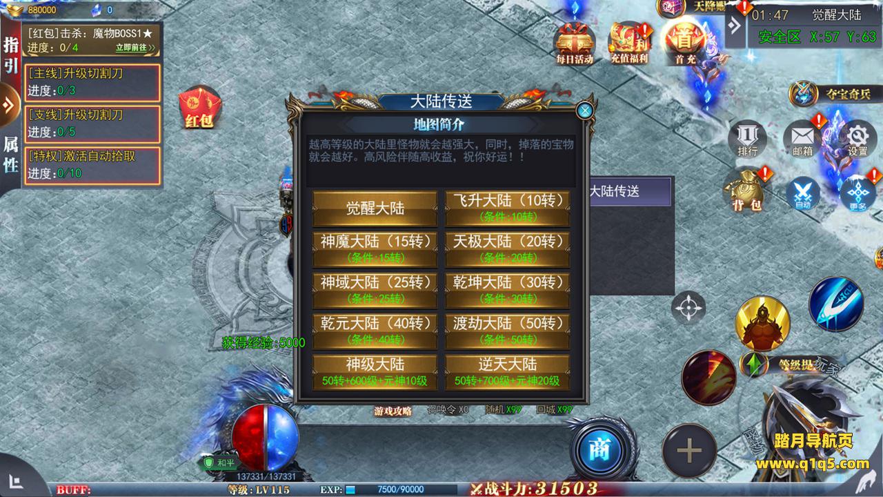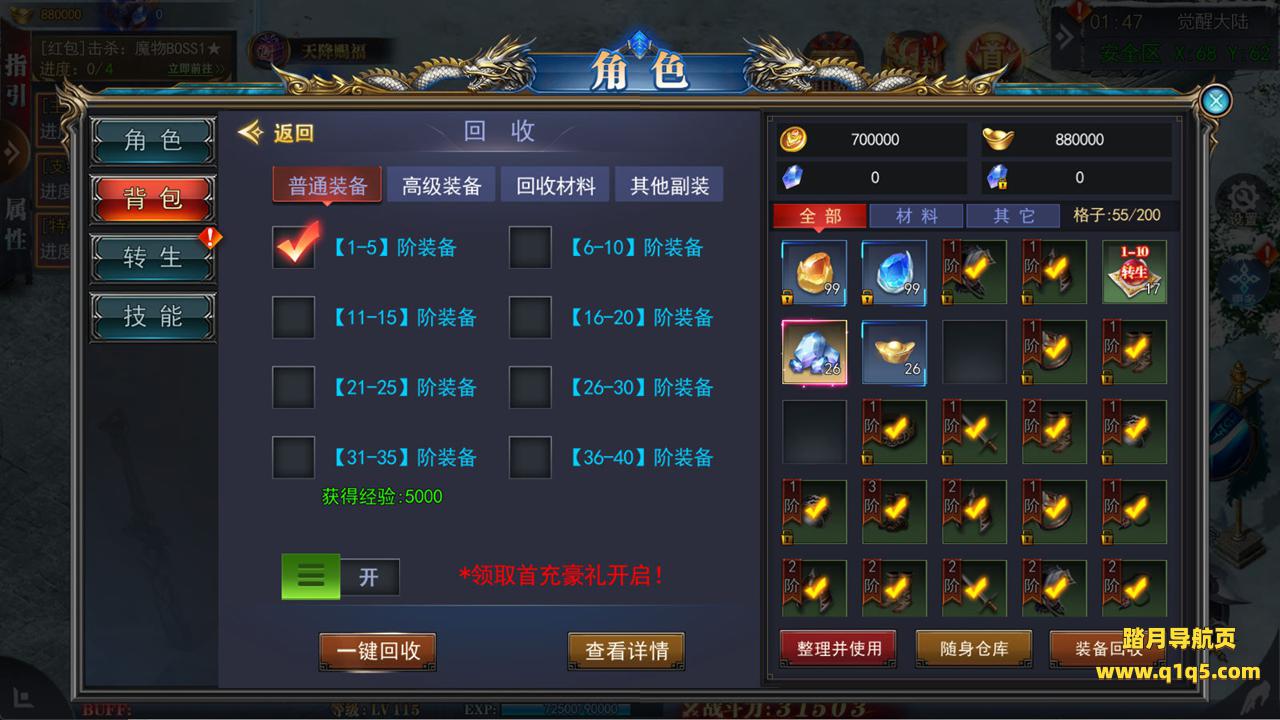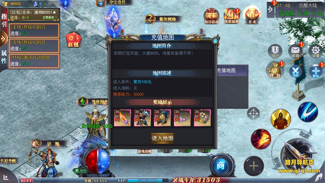 下面我们测试下游戏里的功能看看吧。好了,其他功能就自行测试吧。更多的游戏资源可以访问www.q1q5.com下载,我们每款游戏资源均单独制作了独立的视频架设教程,让小白也可以快速上手游戏架设,快来体验自己做GM的乐趣吧!