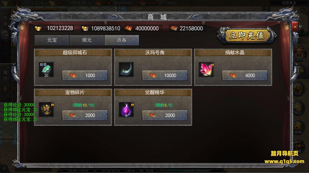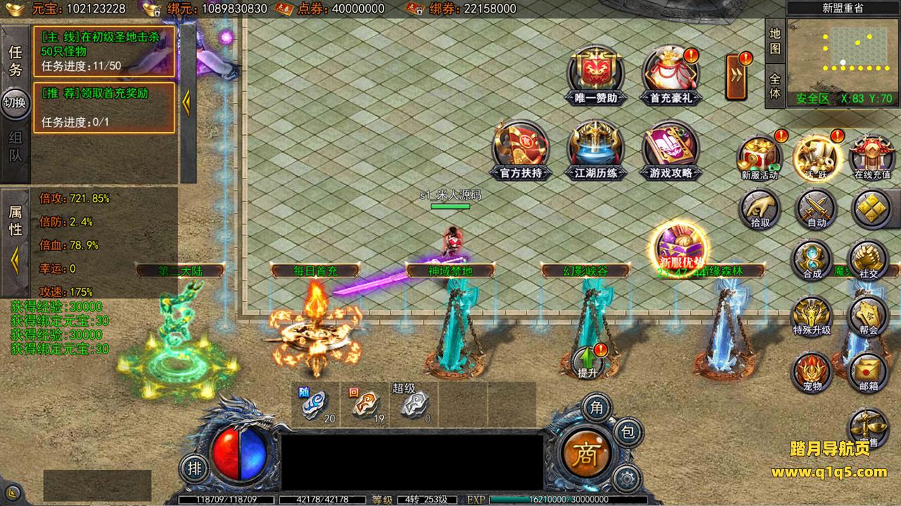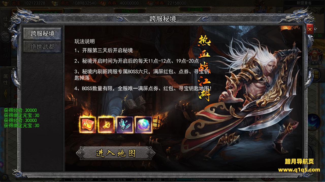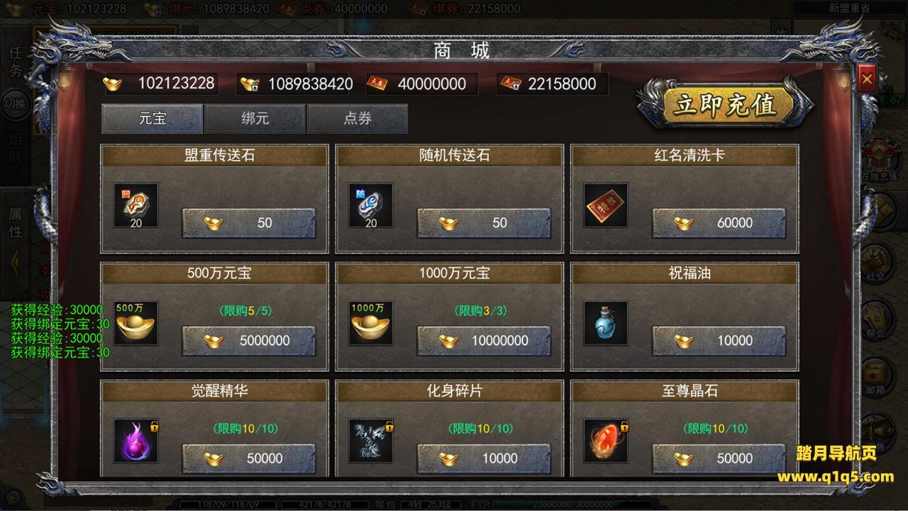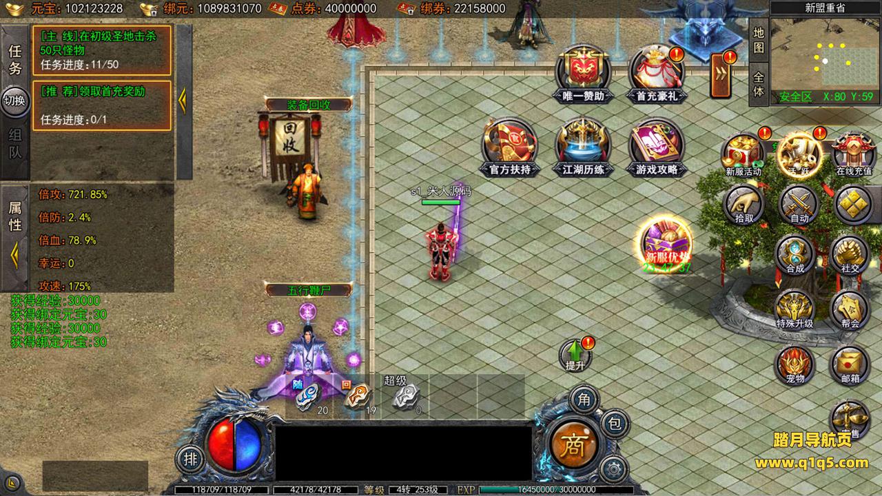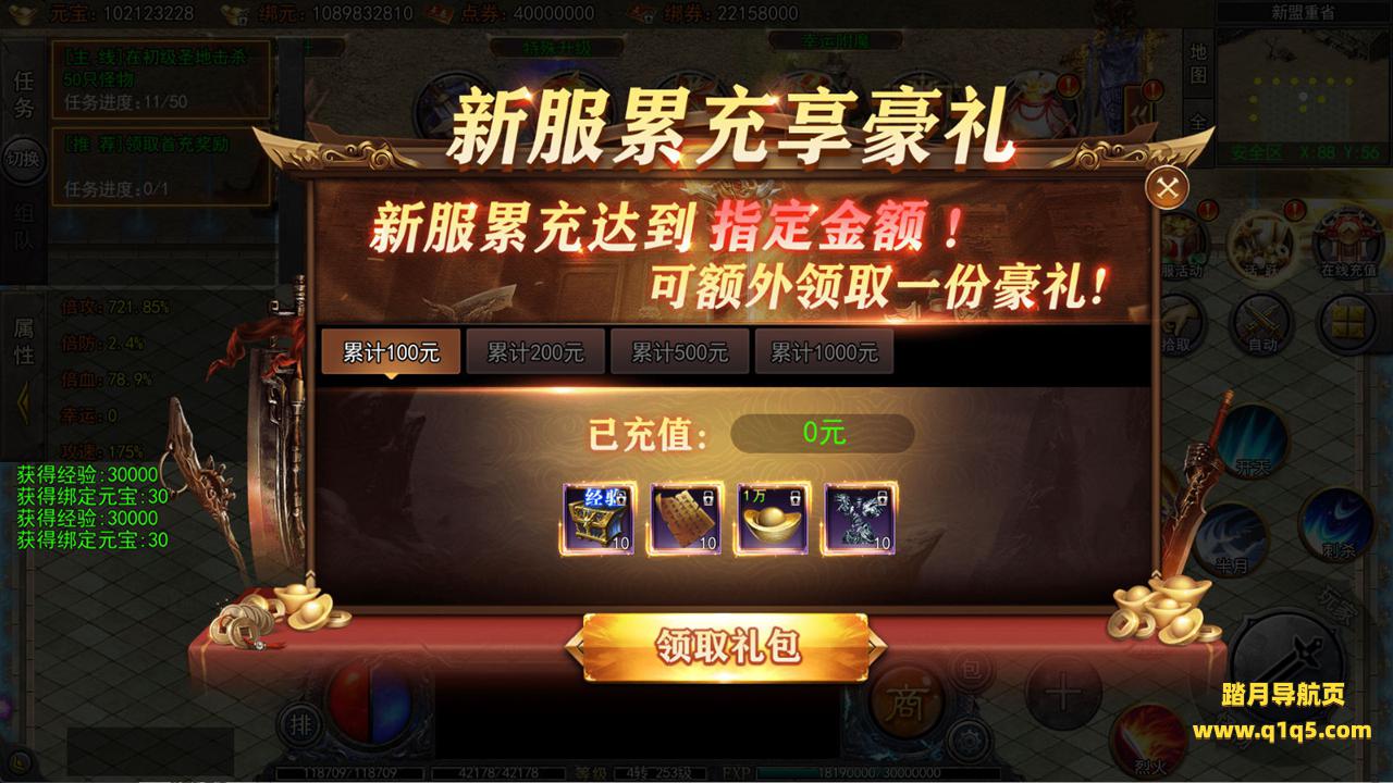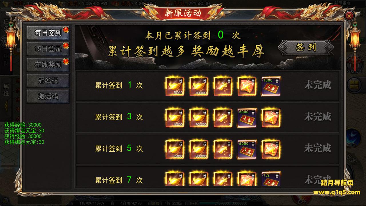 下面我们来测试下游戏里的功能看看。好了,其他功能就自行测试吧。更多的游戏资源可以访问www.q1q5.com下载,我们每款游戏资源均单独制作了独立的视频架设教程。让小白也可以快速上手游戏架设,快来体验自己做GM的乐趣吧!