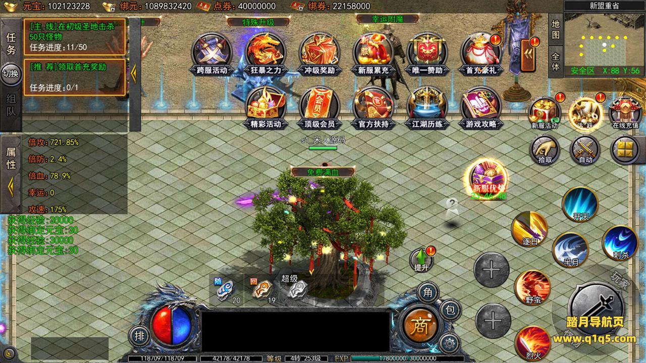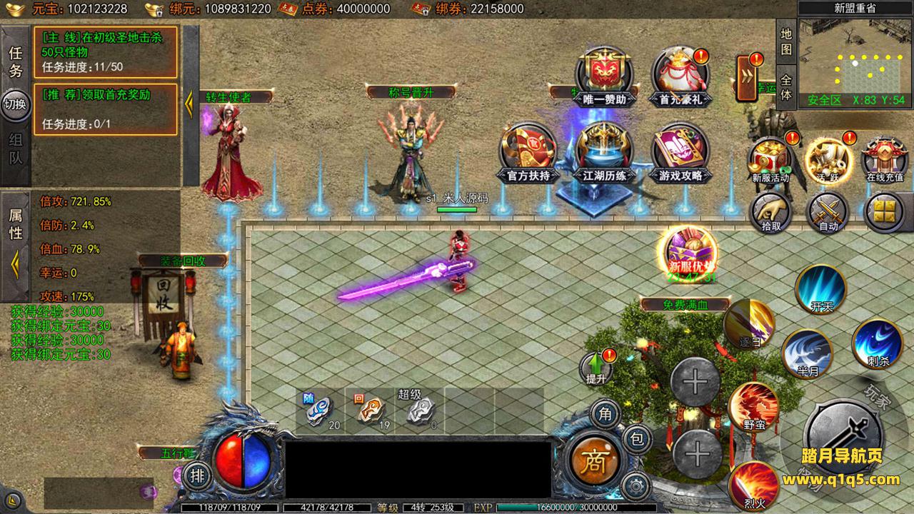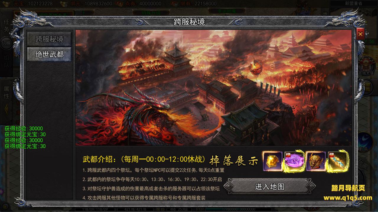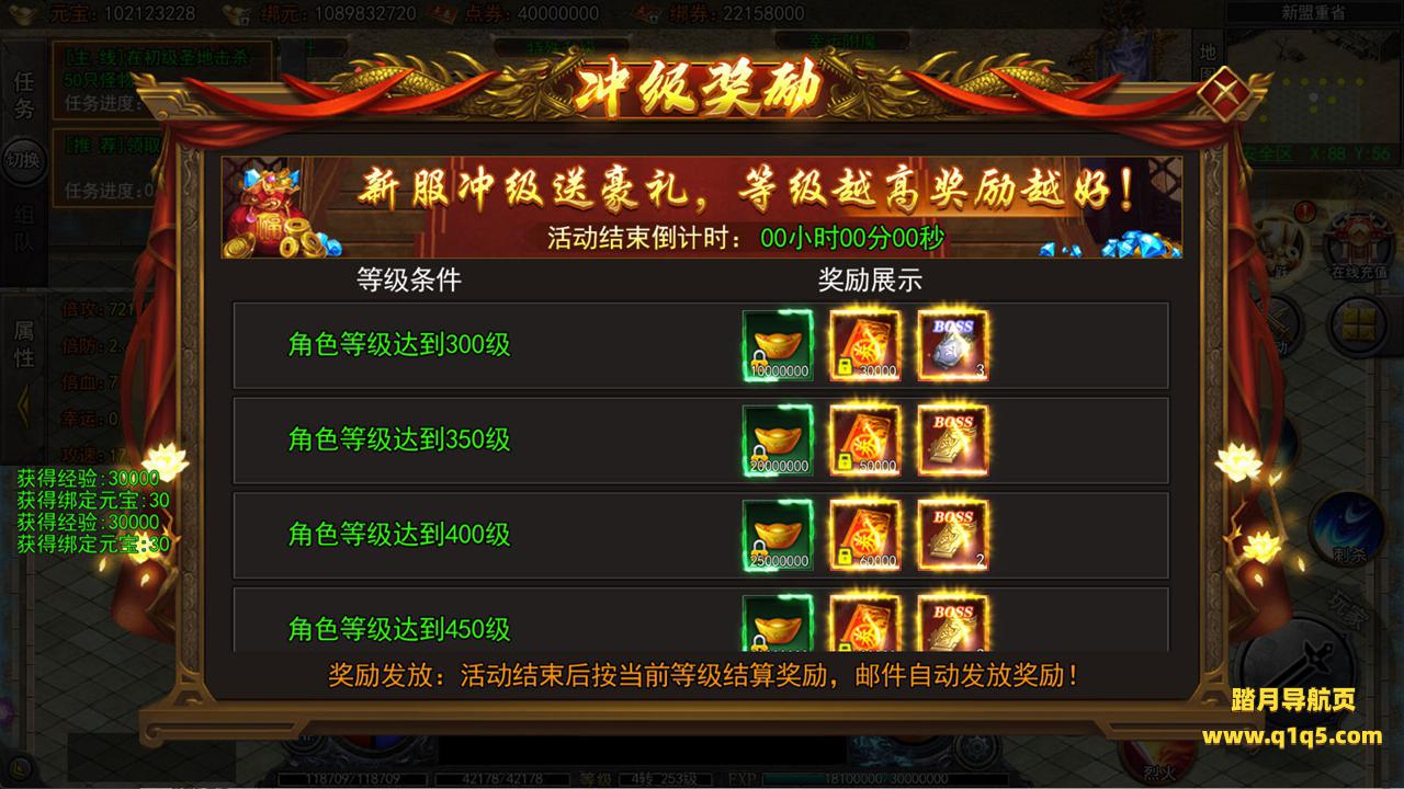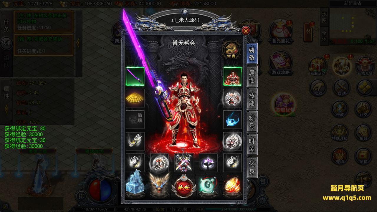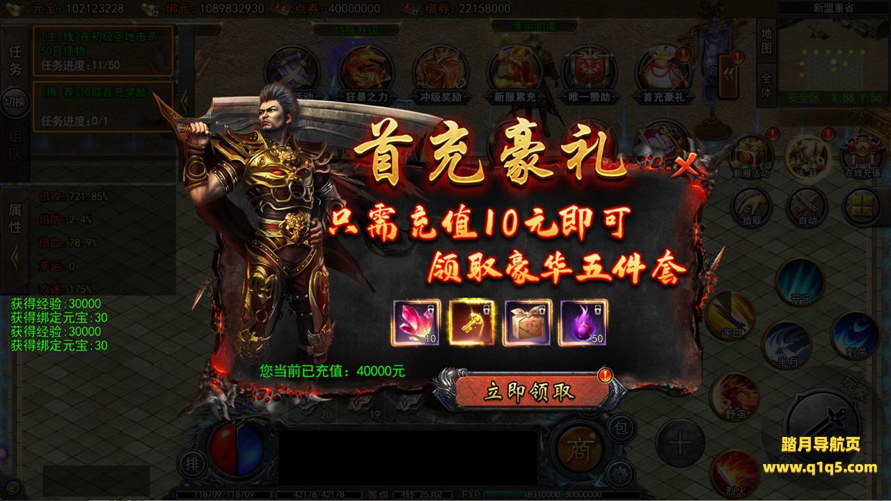 下面我们来测试下游戏里的功能看看。好了,其他功能就自行测试吧。更多的游戏资源可以访问www.q1q5.com下载,我们每款游戏资源均单独制作了独立的视频架设教程。让小白也可以快速上手游戏架设,快来体验自己做GM的乐趣吧!