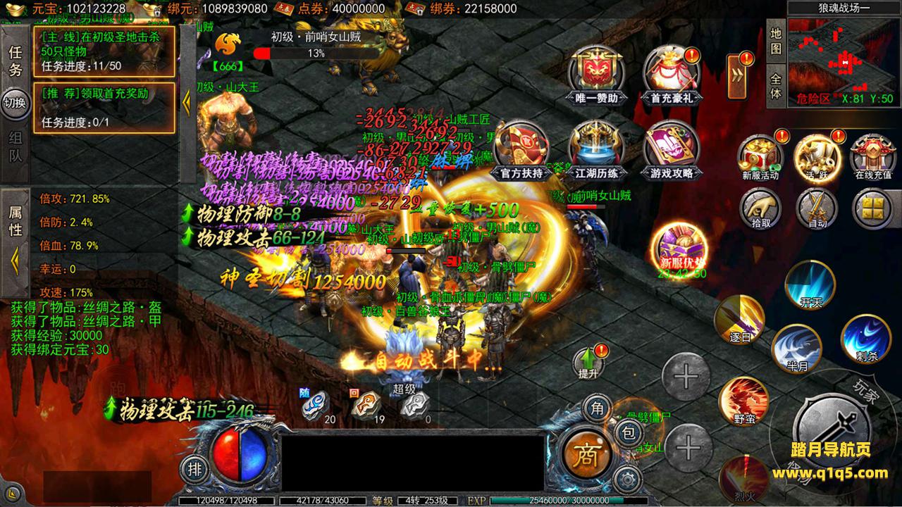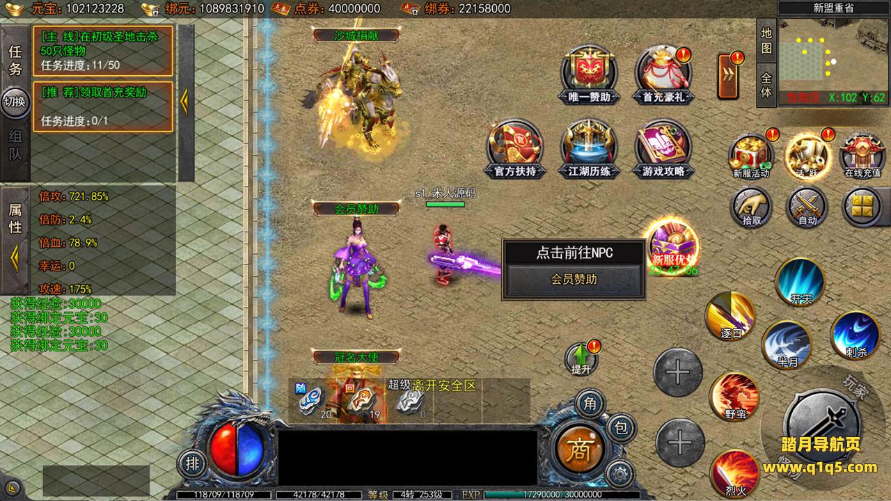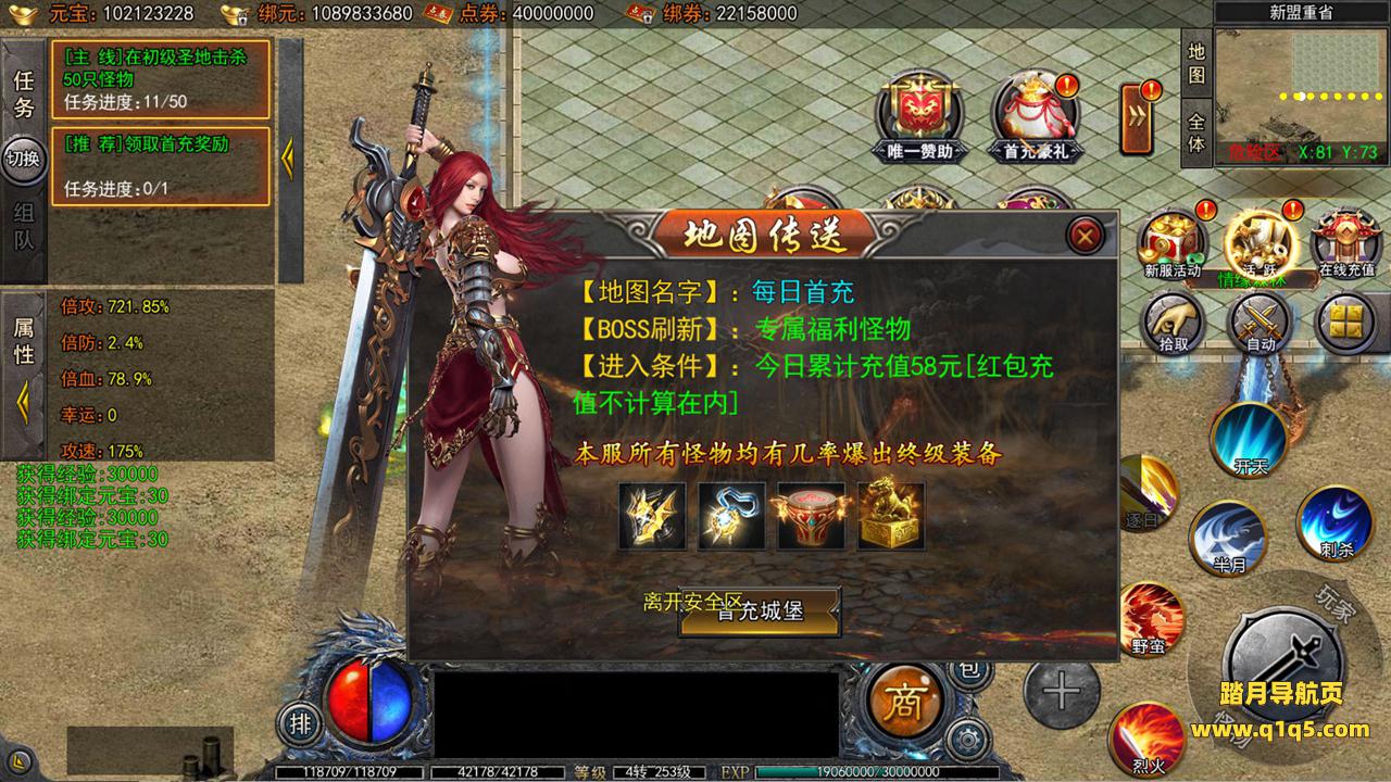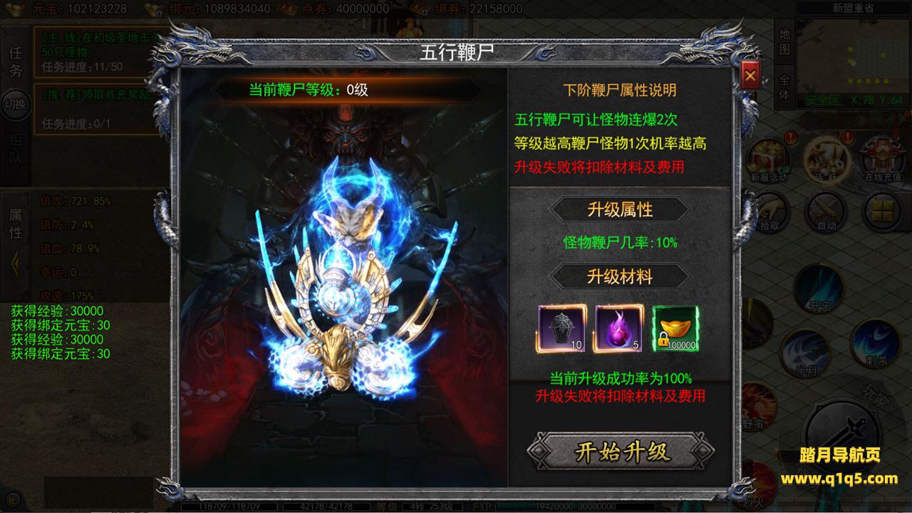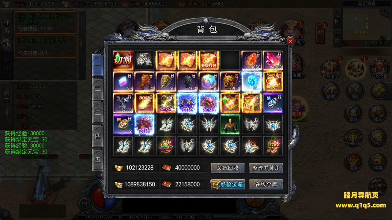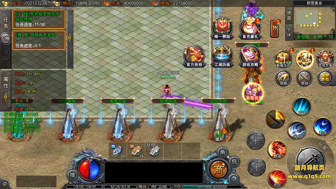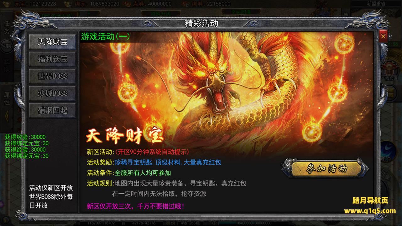 下面我们来测试下游戏里的功能看看。好了,其他功能就自行测试吧。更多的游戏资源可以访问www.q1q5.com下载,我们每款游戏资源均单独制作了独立的视频架设教程。让小白也可以快速上手游戏架设,快来体验自己做GM的乐趣吧!