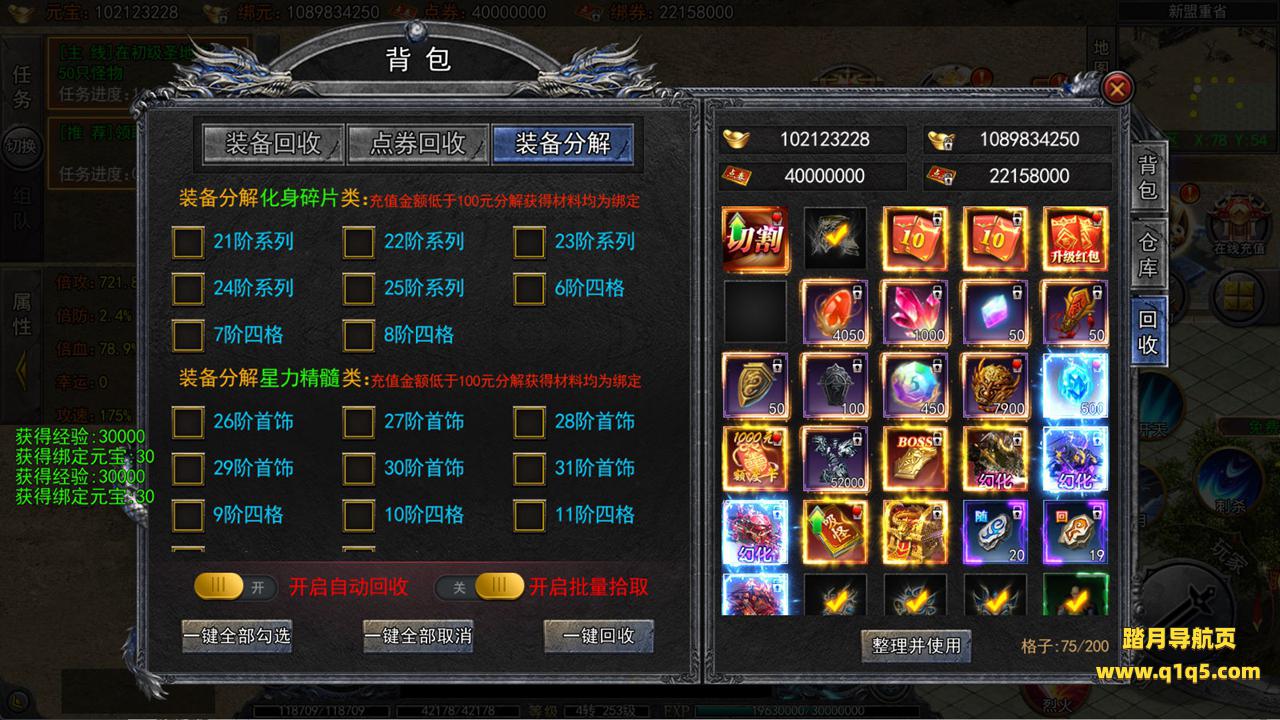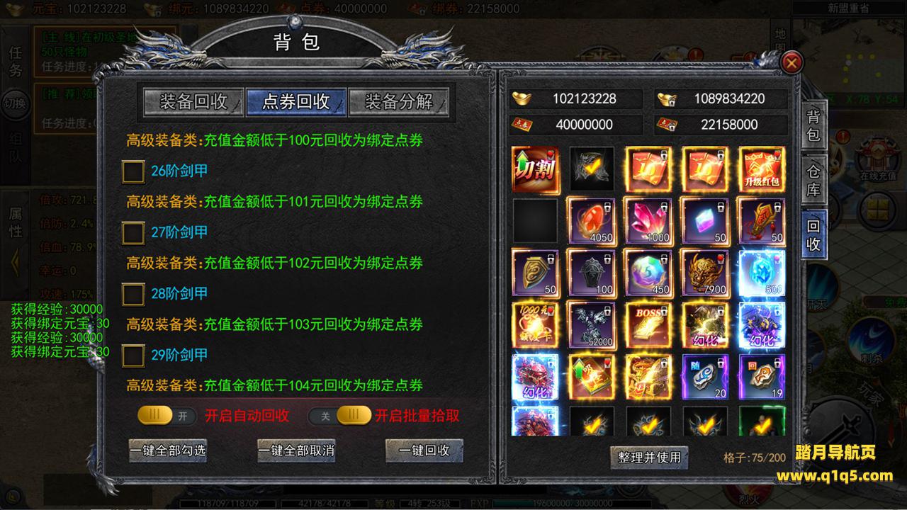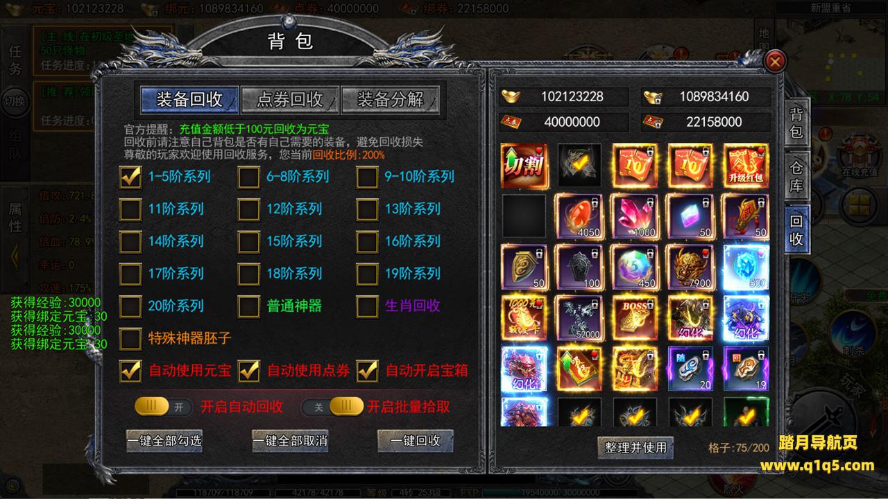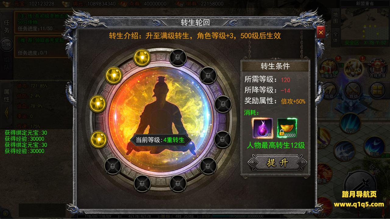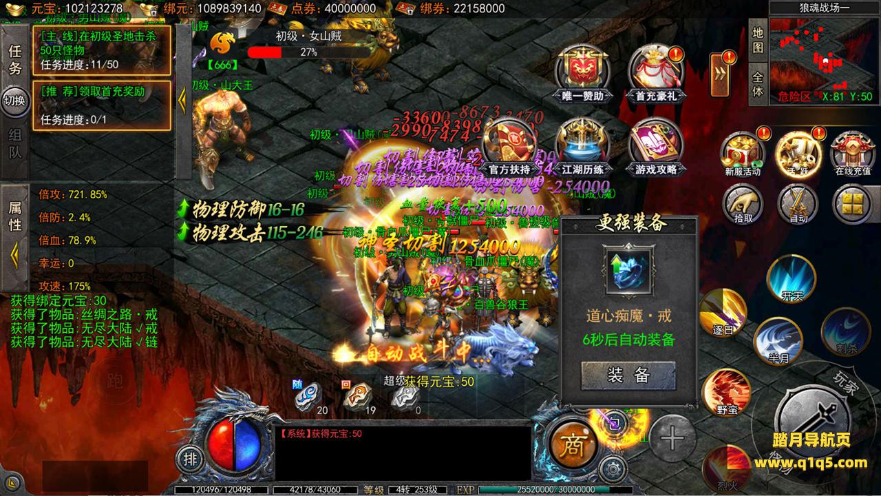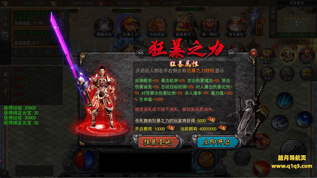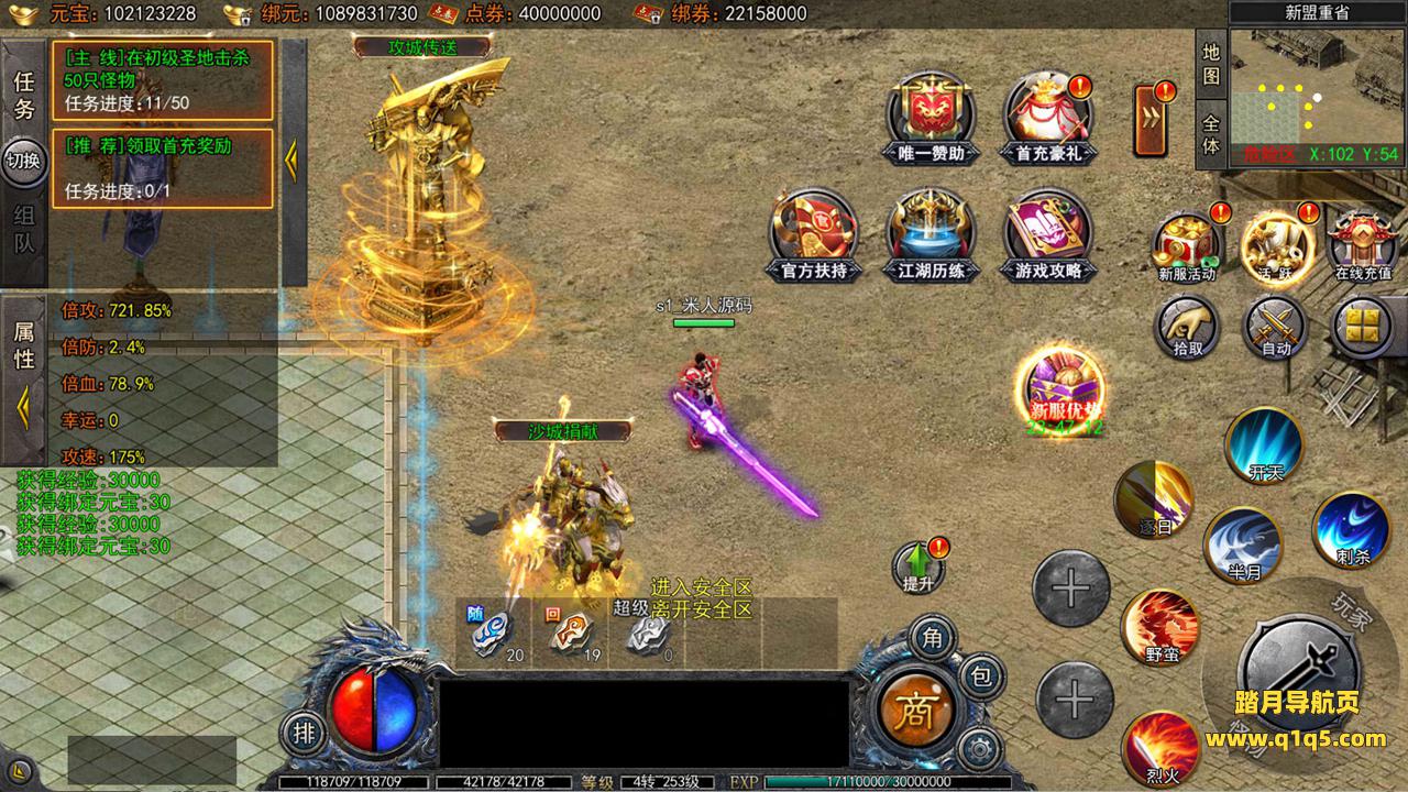 下面我们来测试下游戏里的功能看看。好了,其他功能就自行测试吧。更多的游戏资源可以访问www.q1q5.com下载,我们每款游戏资源均单独制作了独立的视频架设教程。让小白也可以快速上手游戏架设,快来体验自己做GM的乐趣吧!