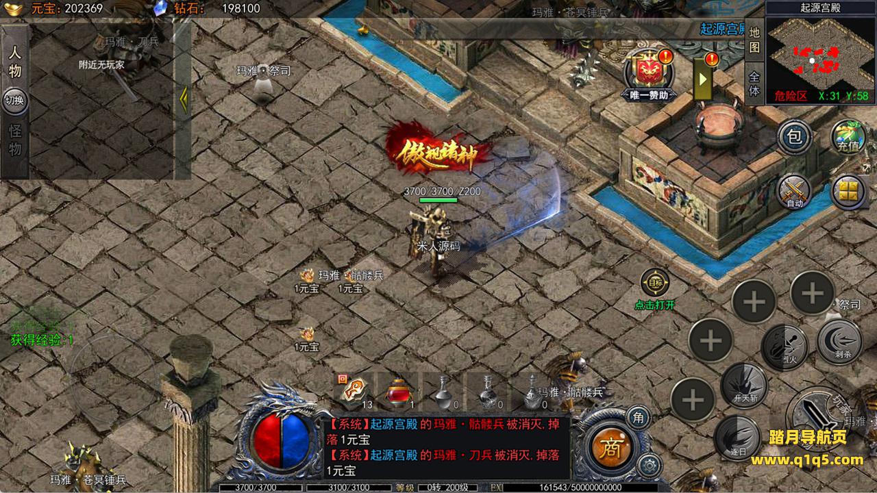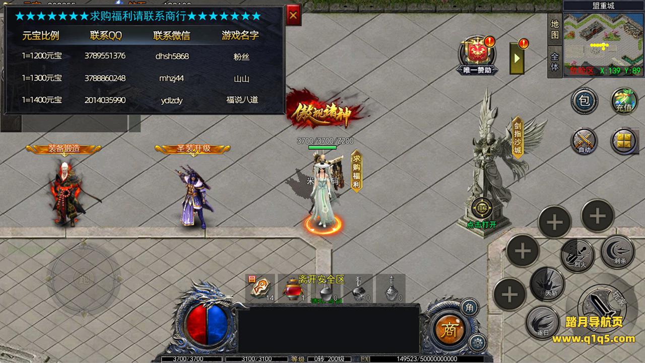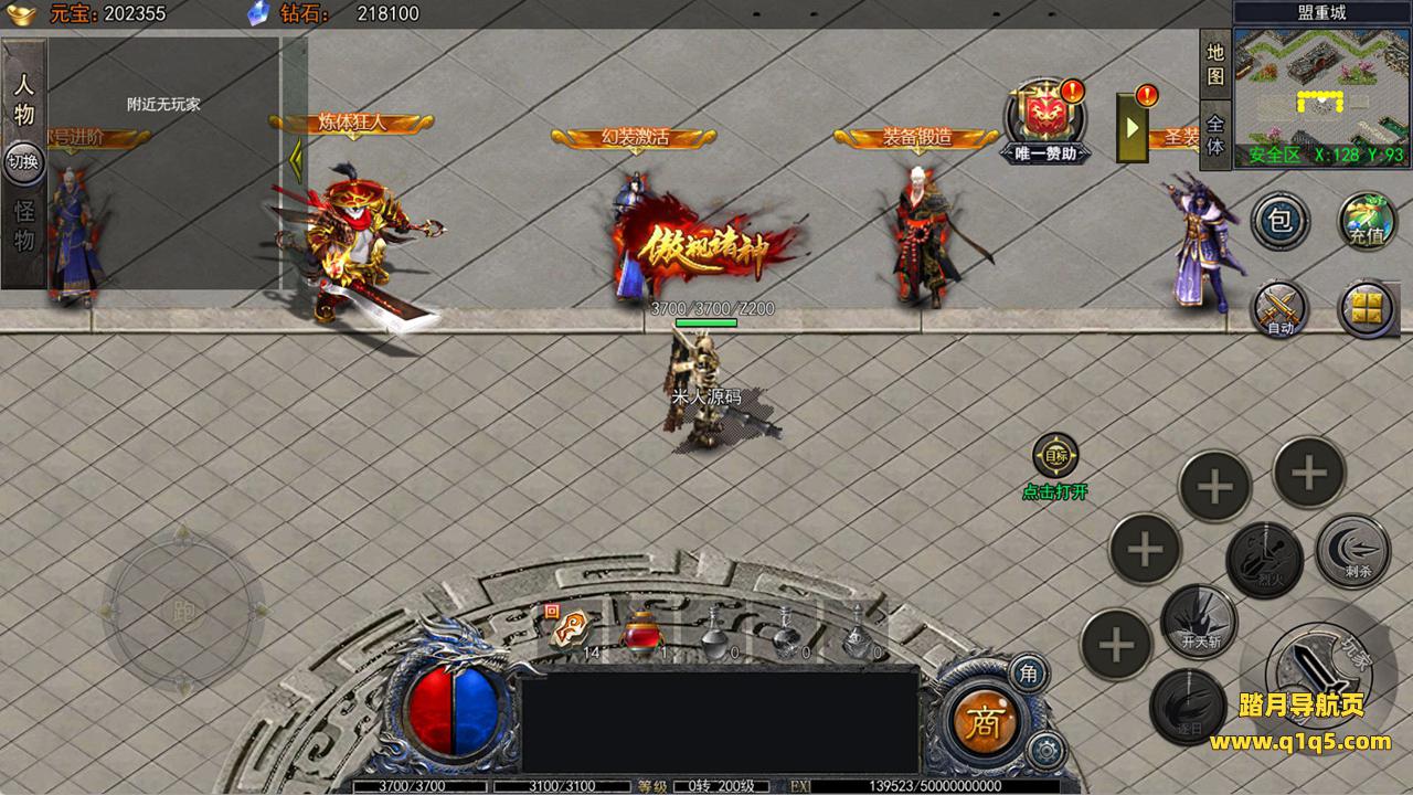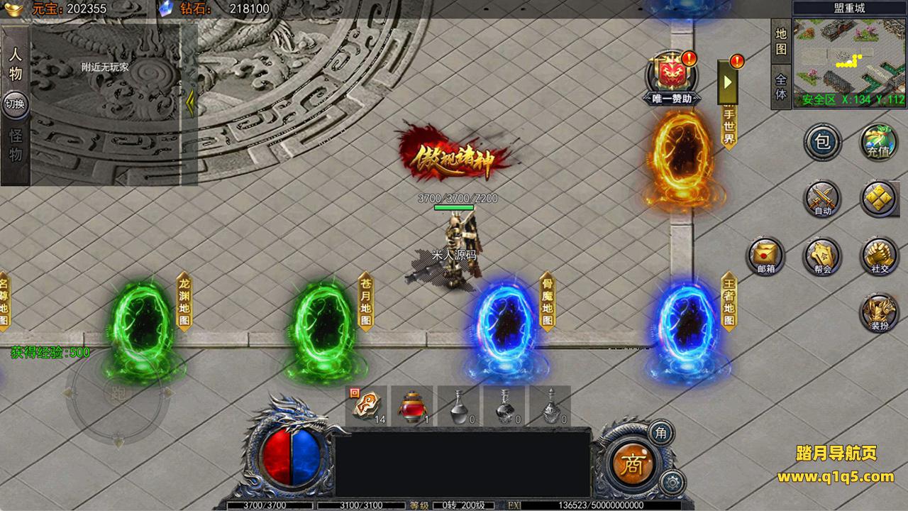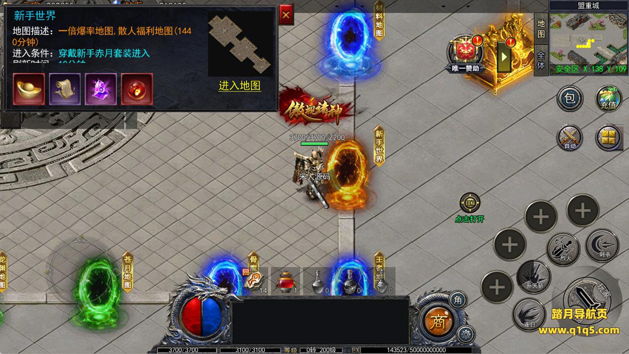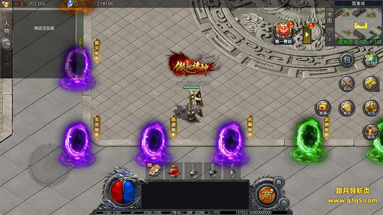下面我们进入游戏测试看看游戏里的功能。好了,其他功能就自行测试吧。更多的游戏资源可以访问www.q1q5.com下载,我们每款游戏资源均单独制作了独立的视频架设教程,让小白也可以快速上手游戏架设,快来体验自己做GM的乐趣吧!