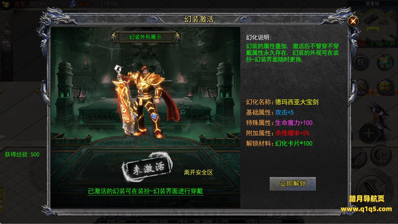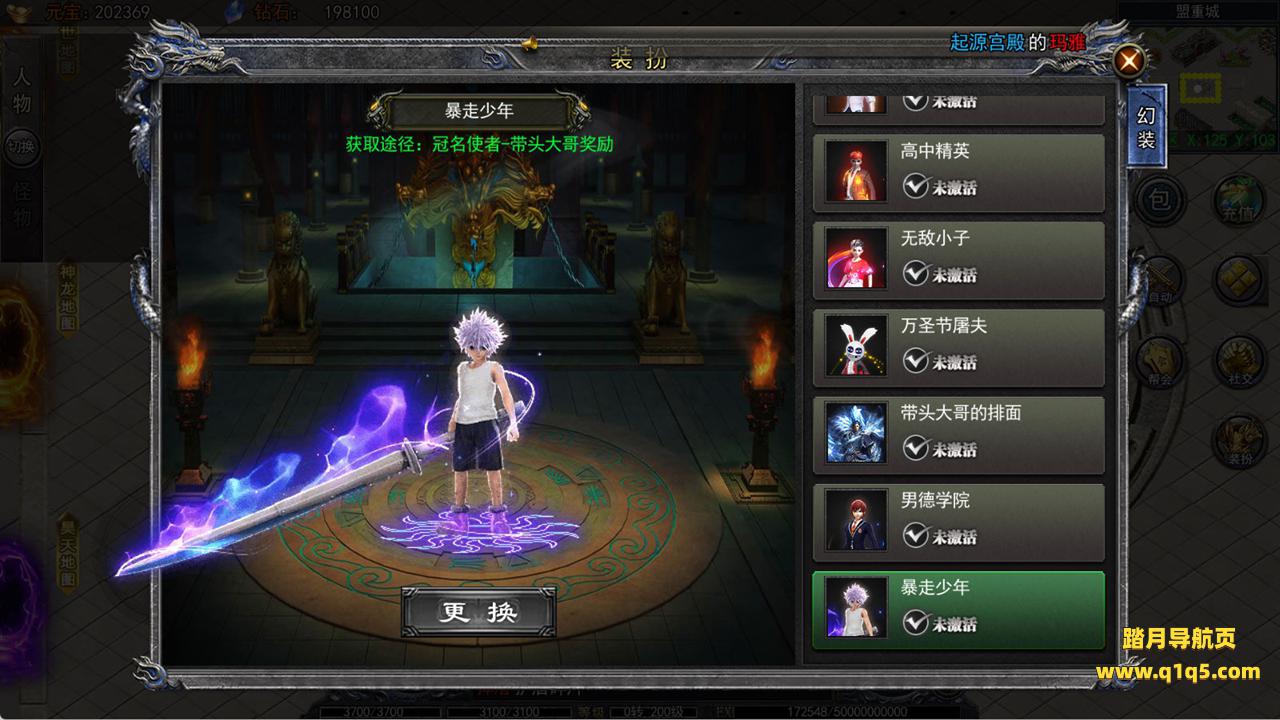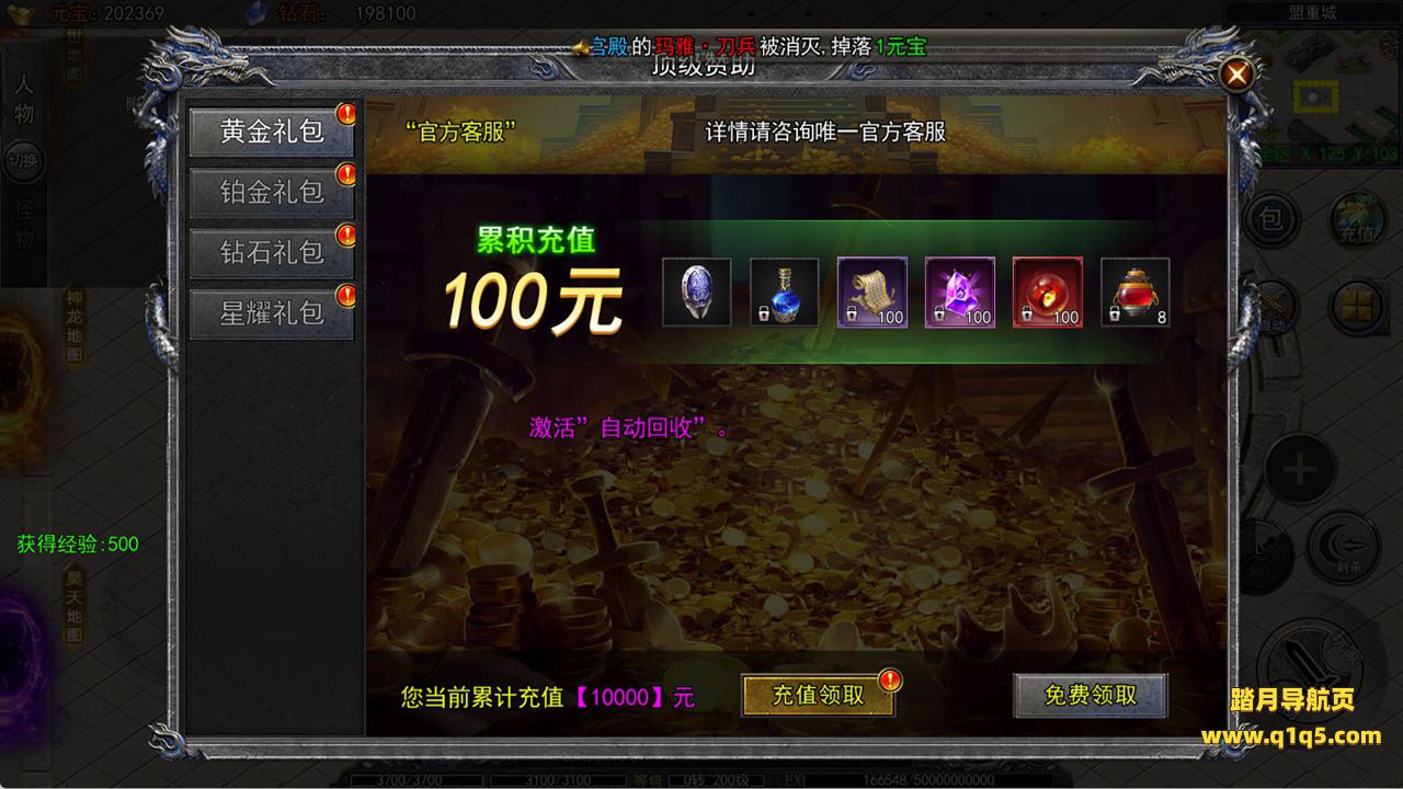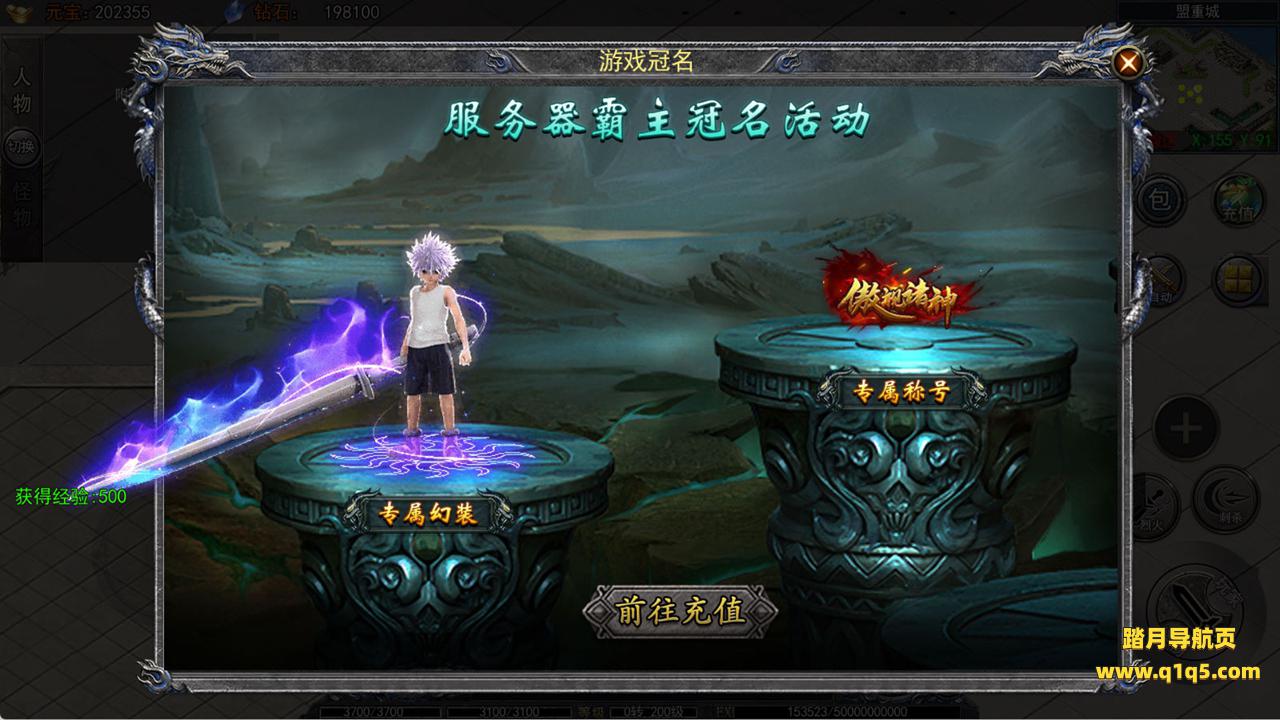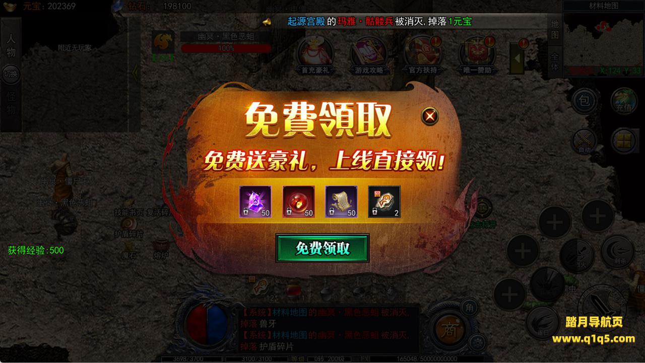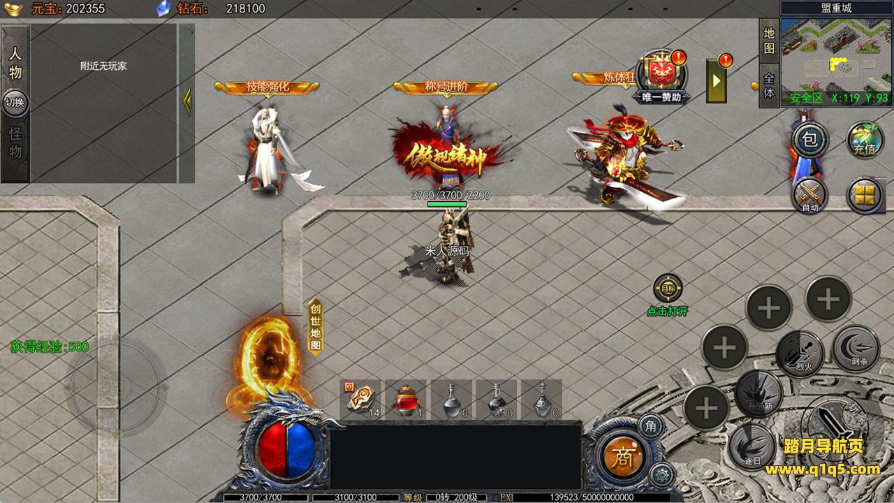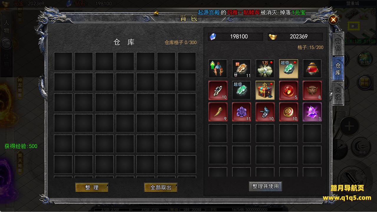 下面我们进入游戏测试看看游戏里的功能。好了,其他功能就自行测试吧。更多的游戏资源可以访问www.q1q5.com下载,我们每款游戏资源均单独制作了独立的视频架设教程,让小白也可以快速上手游戏架设,快来体验自己做GM的乐趣吧!