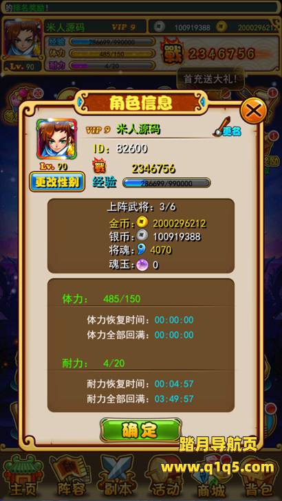 好了。下面我们来测试下游戏里的功能看看吧,好了,其他功能就自行测试吧。更多的游戏资源可以访问www.q1q5.com下载,我们每款游戏资源均单独制作了独立的视频架设教程,让小白也可以快速上手游戏架设,快来体验自己做GM的乐趣吧!