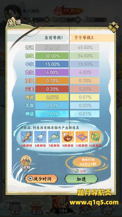11.池塘等级扩充至100级,调整了每个品级装备出现的概率