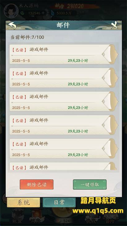 下面我们测试下游戏里的功能看看。过一下任务,一会看看邮件是否都发送过来了。好了,其他功能就自行测试了吧。更多的游戏资源可以访问www.q1q5.com下载,我们每款游戏资源均单独制作了独立的视频架设教程,让小白也可以快速上手游戏架设,快来体验自己做GM的乐趣吧!