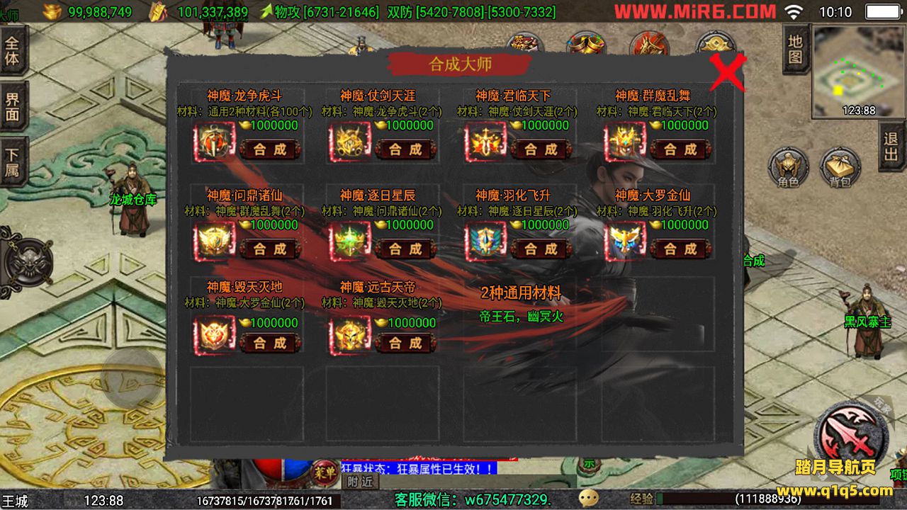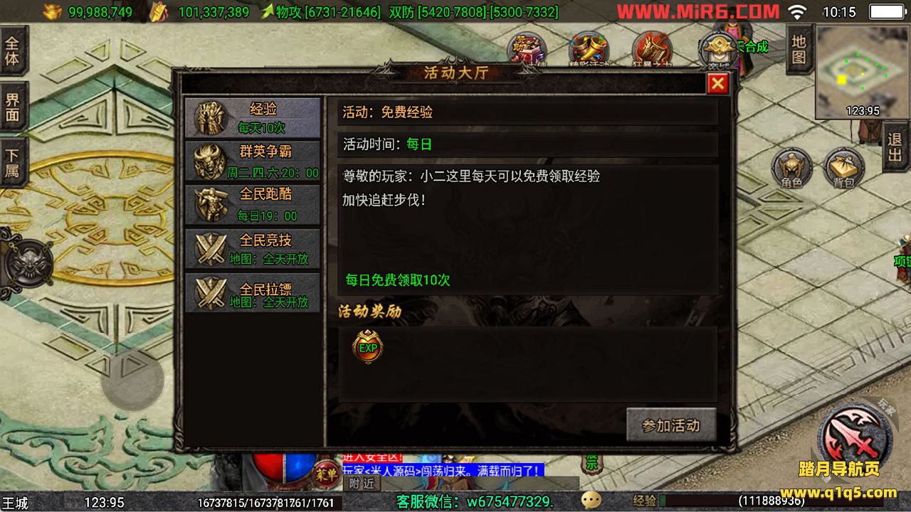 下面我们来测试下游戏里的功能看看。好了,其他功能就自行测试吧。更多的游戏资源可以访问www.q1q5.com下载,我们每款游戏资源均单独制作了独立的视频架设教程,让小白也可以快速上手游戏架设,快来体验自己做GM的乐趣吧!