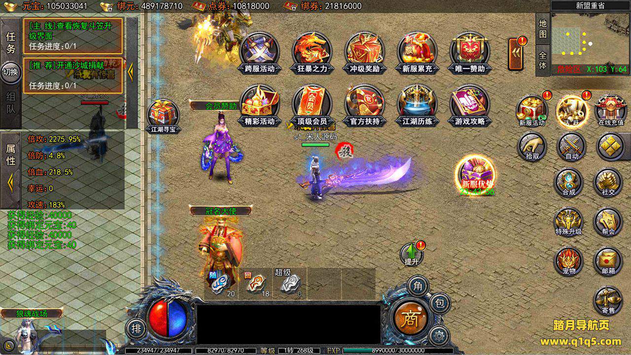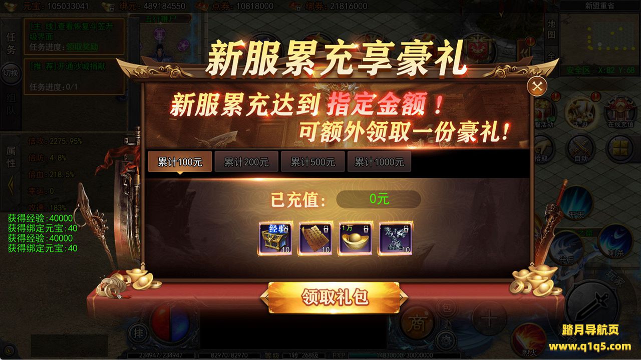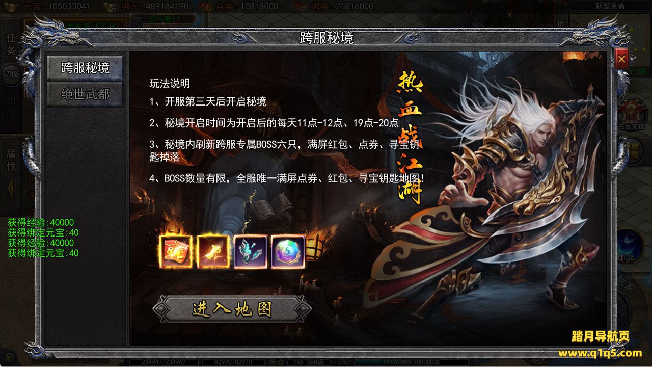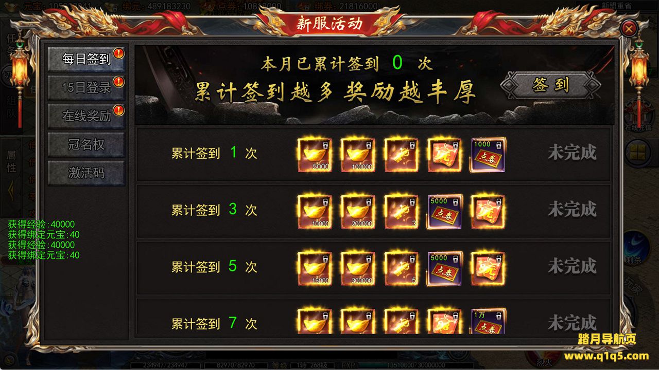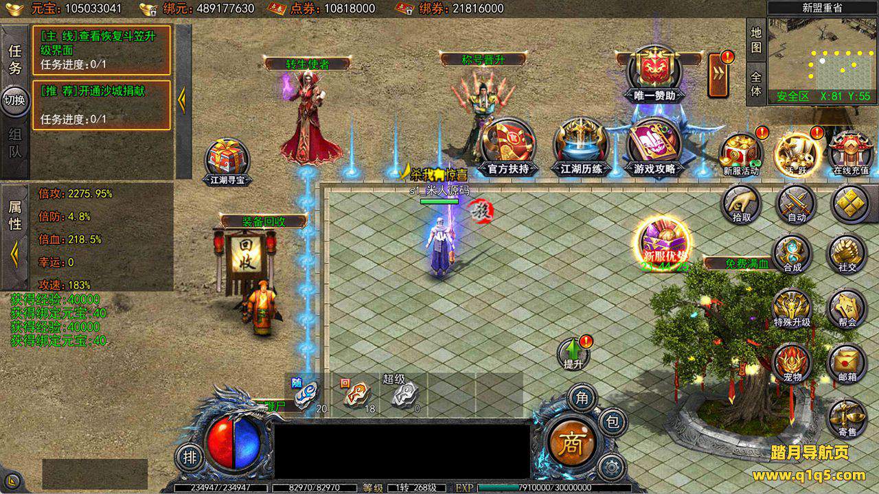 下面我们来测试下游戏里的功能看看吧。好了,其他功能就自行测试吧。更多的游戏资源可以访问www.q1q5.com下载,我们每款游戏资源均单独制作了独立的视频架设教程,让小白也可以快速上手游戏架设,快来体验自己做GM的乐趣吧!
