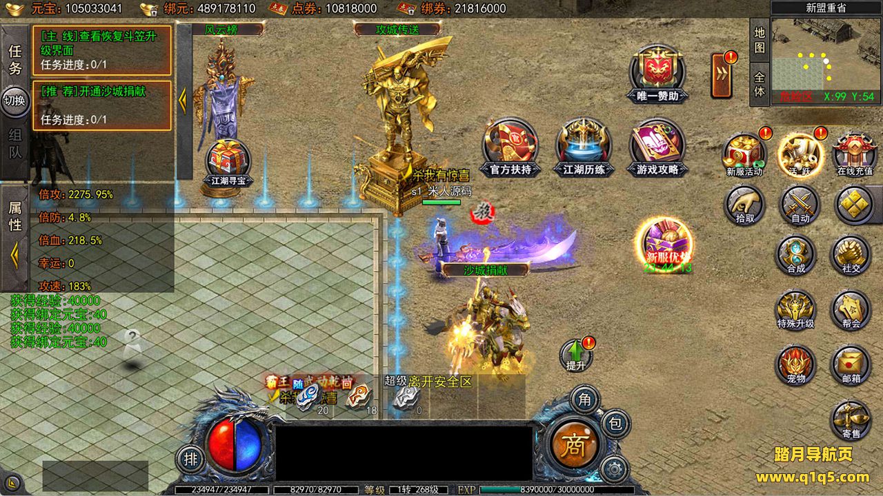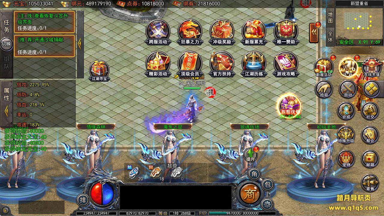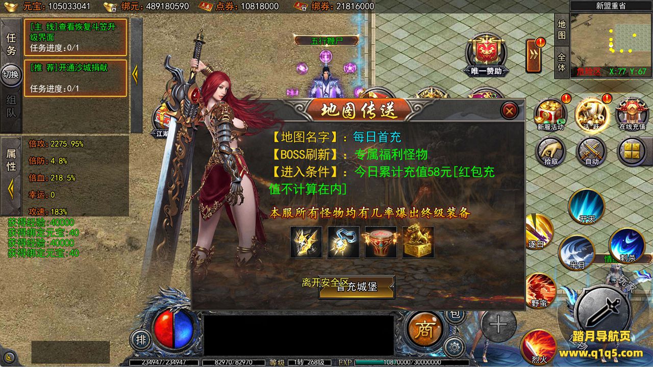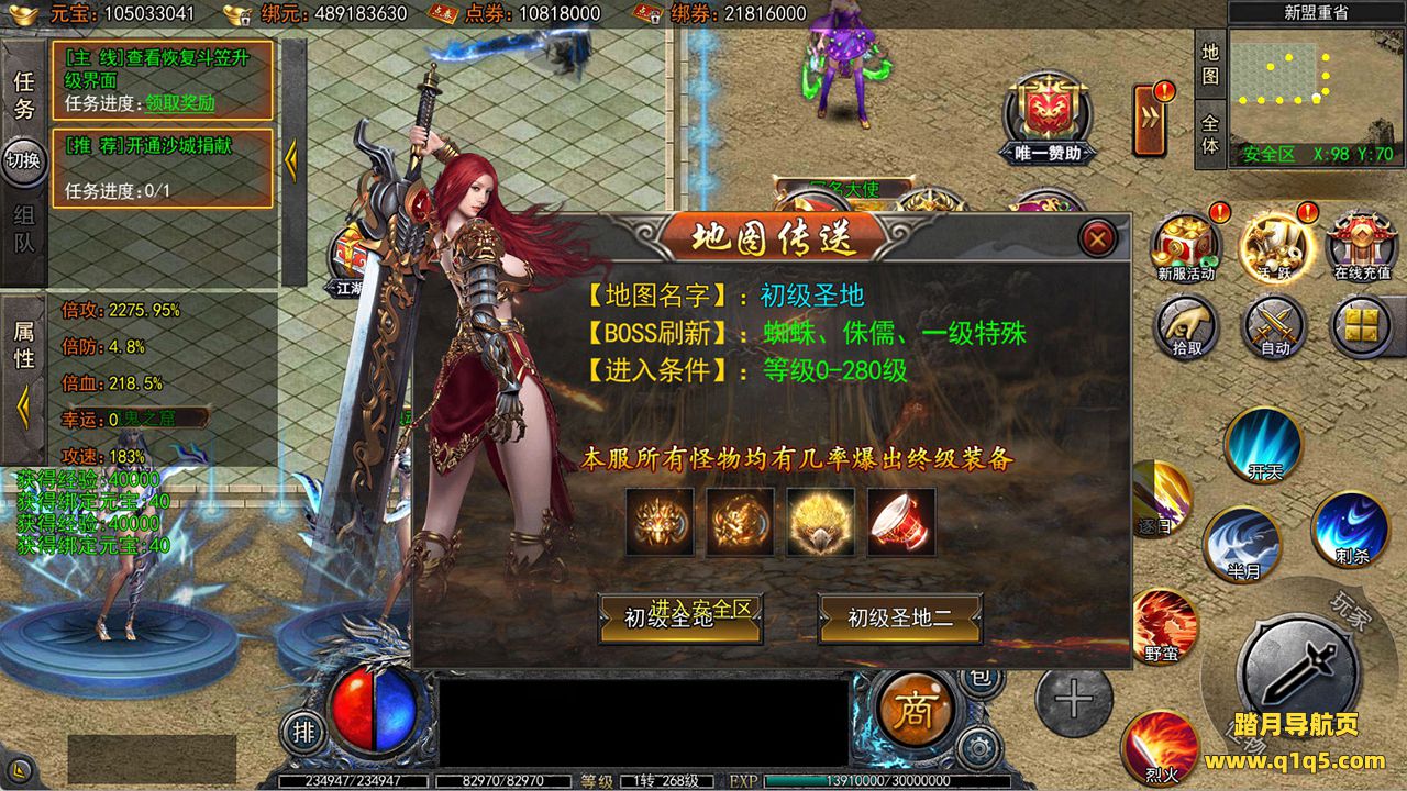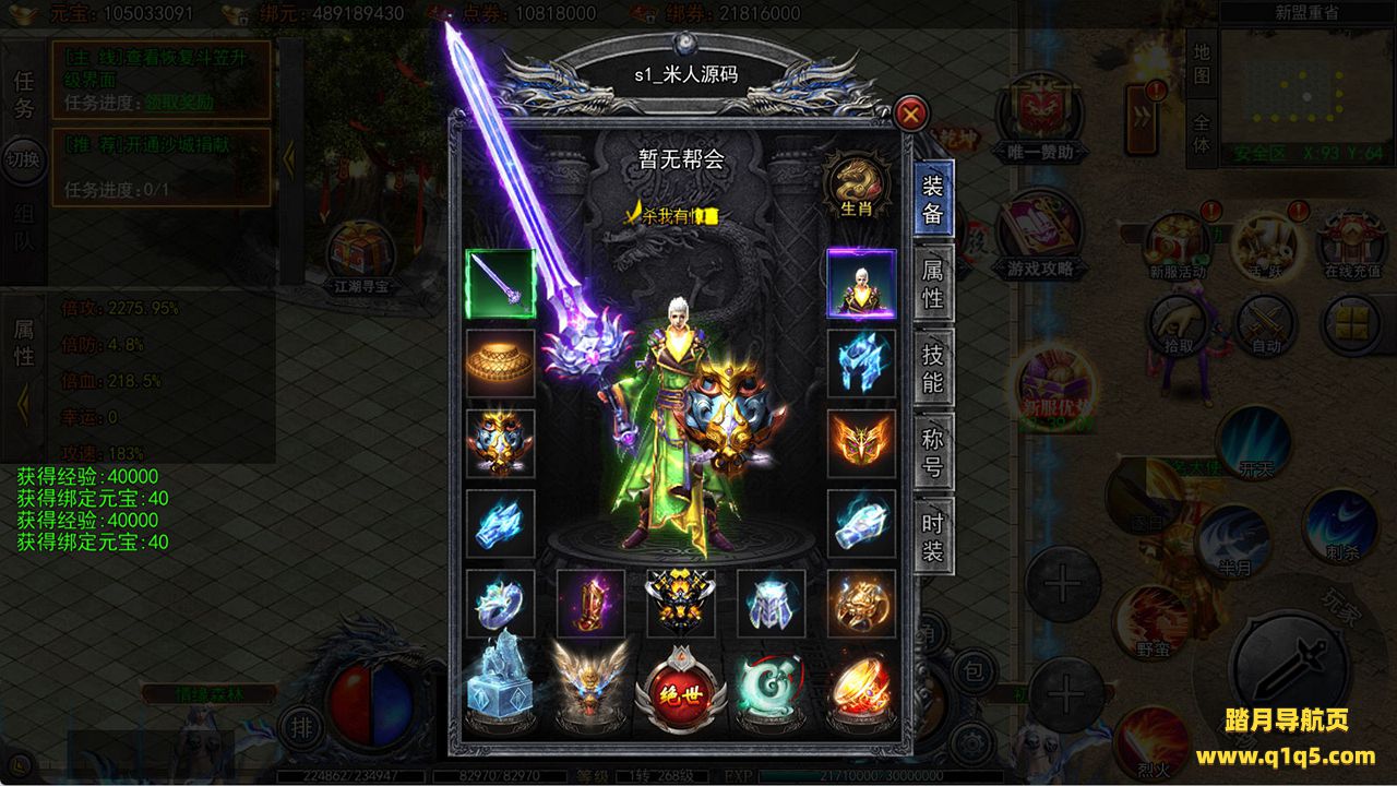 下面我们来测试下游戏里的功能看看吧。好了,其他功能就自行测试吧。更多的游戏资源可以访问www.q1q5.com下载,我们每款游戏资源均单独制作了独立的视频架设教程,让小白也可以快速上手游戏架设,快来体验自己做GM的乐趣吧!