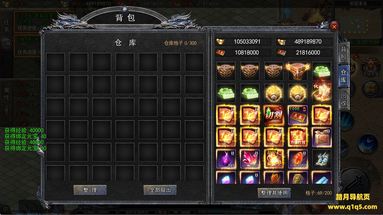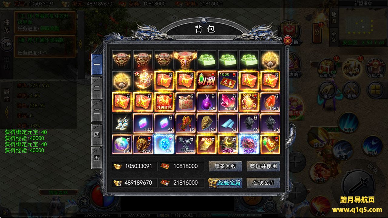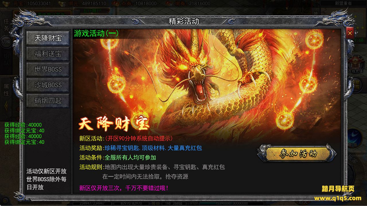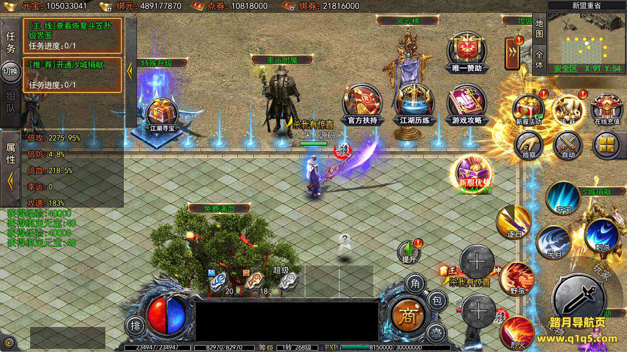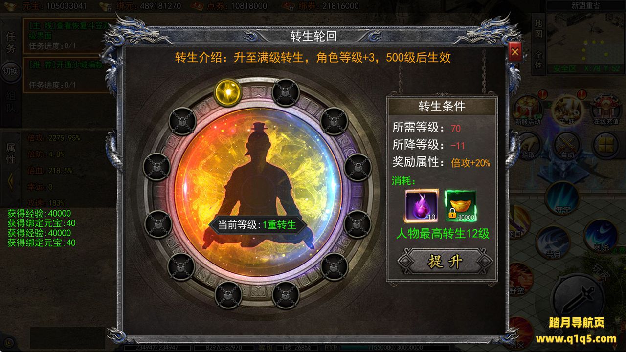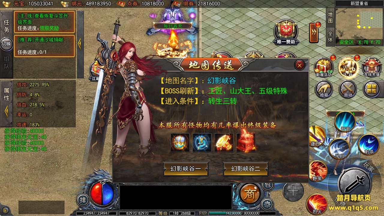 下面我们来测试下游戏里的功能看看吧。好了,其他功能就自行测试吧。更多的游戏资源可以访问www.q1q5.com下载,我们每款游戏资源均单独制作了独立的视频架设教程,让小白也可以快速上手游戏架设,快来体验自己做GM的乐趣吧!